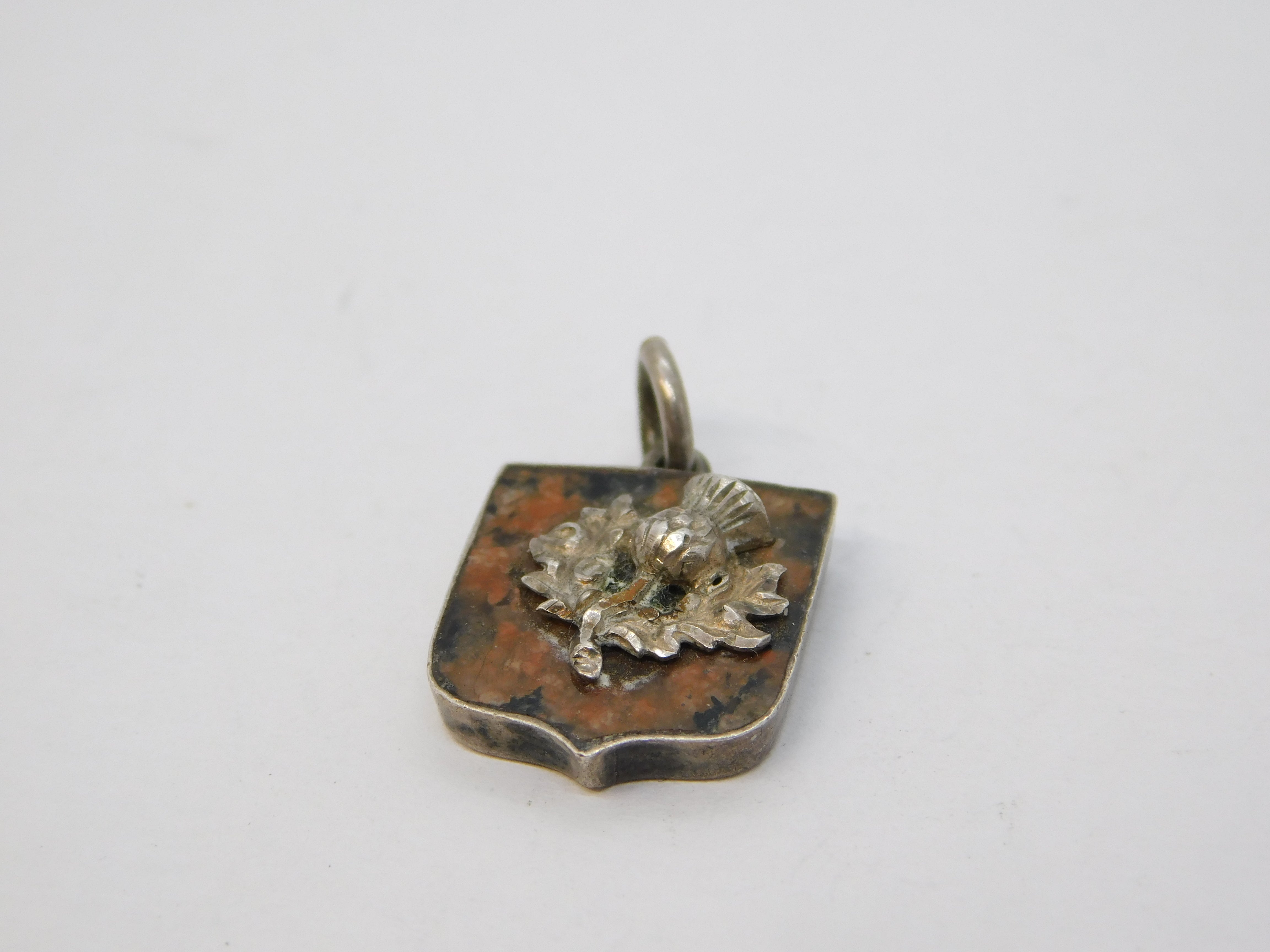 ANTIQUE SCOTTISH THISTLE GRANITE CHARM PENDANT