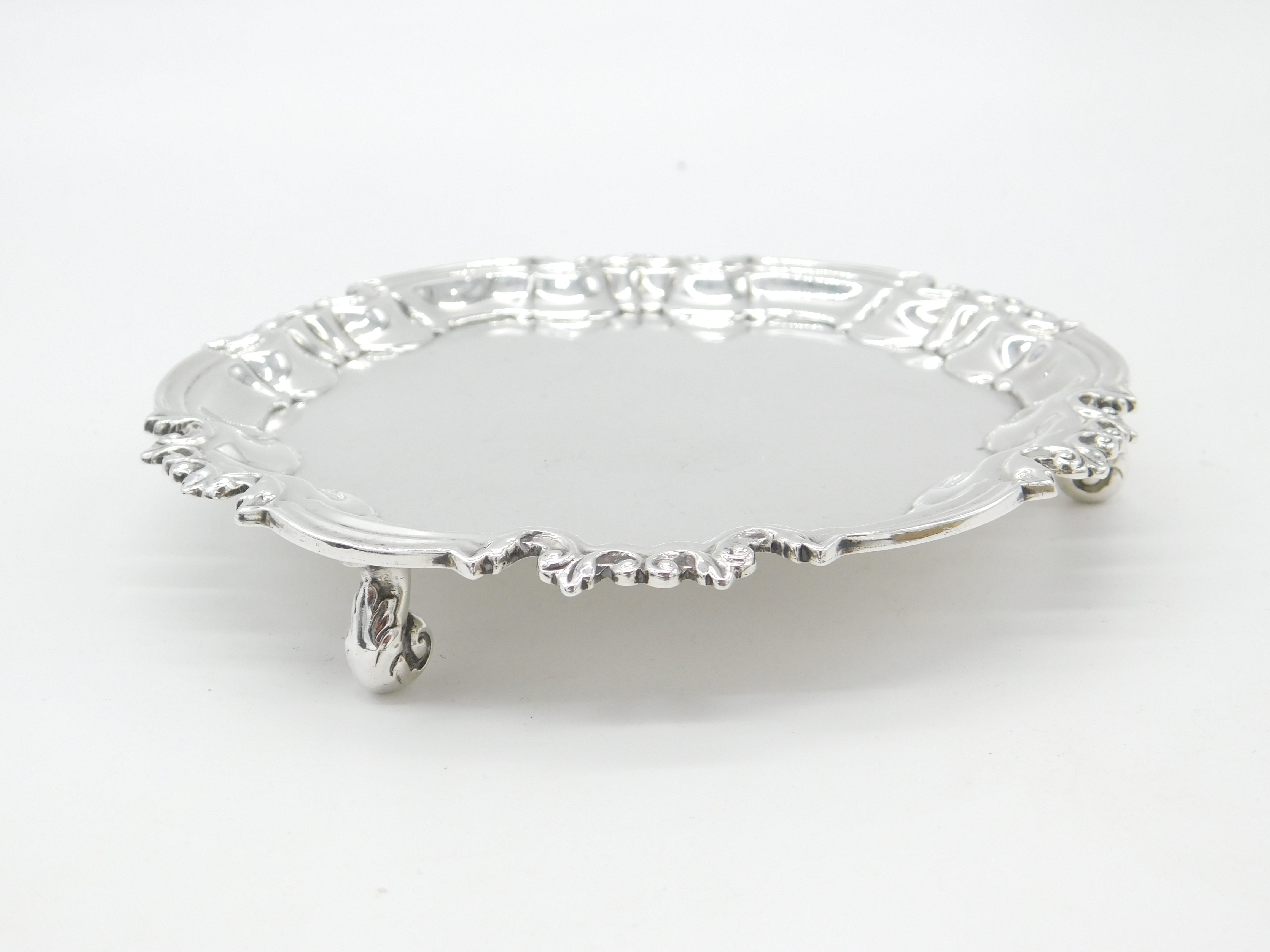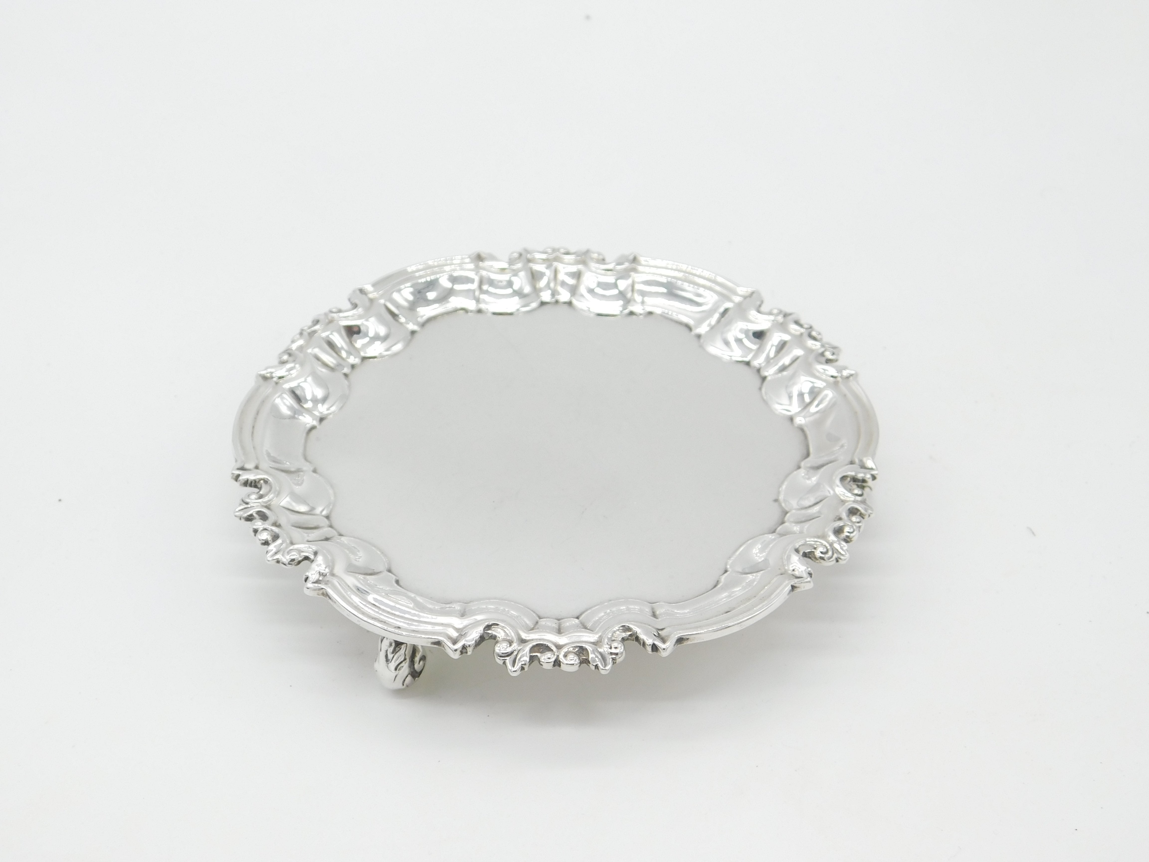 Details: A fantastic and wonderfully designed antique art deco sterling silver salver with lovely art nouveau scrolled edges hallmarked Sheffield 1912 by William Hutton & Sons to the reverse. This is a wonderful item that would make a perfect gift or addition to any collection. The BOX pictured is for PRESENTATION ONLY and is NOT included in the listings but used to frame the pictures unless specifically stated otherwise.