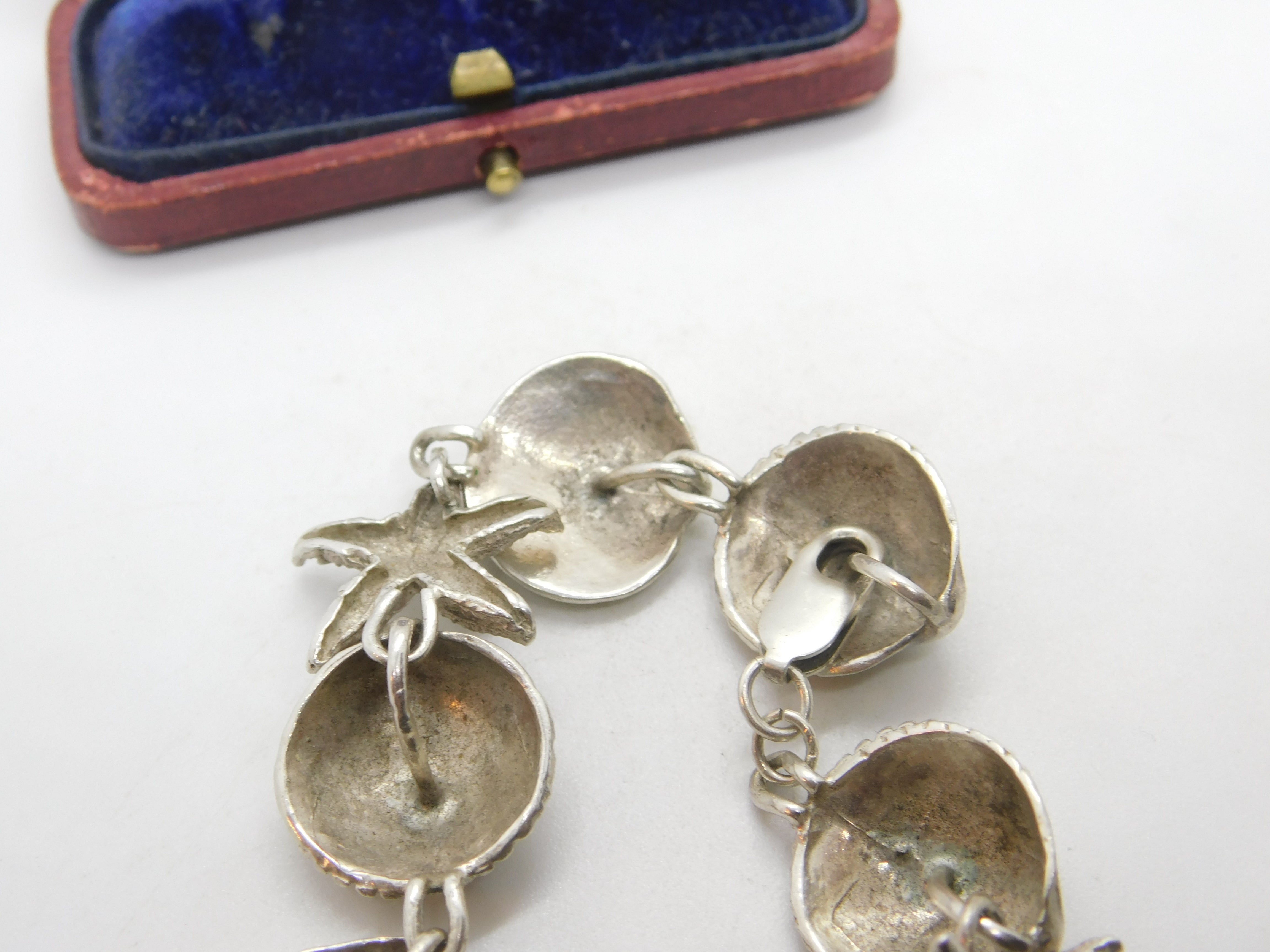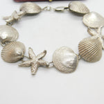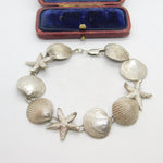 Sterling Silver Seashell & Starfish Handmade Bracelet Vintage c1970 7" Length