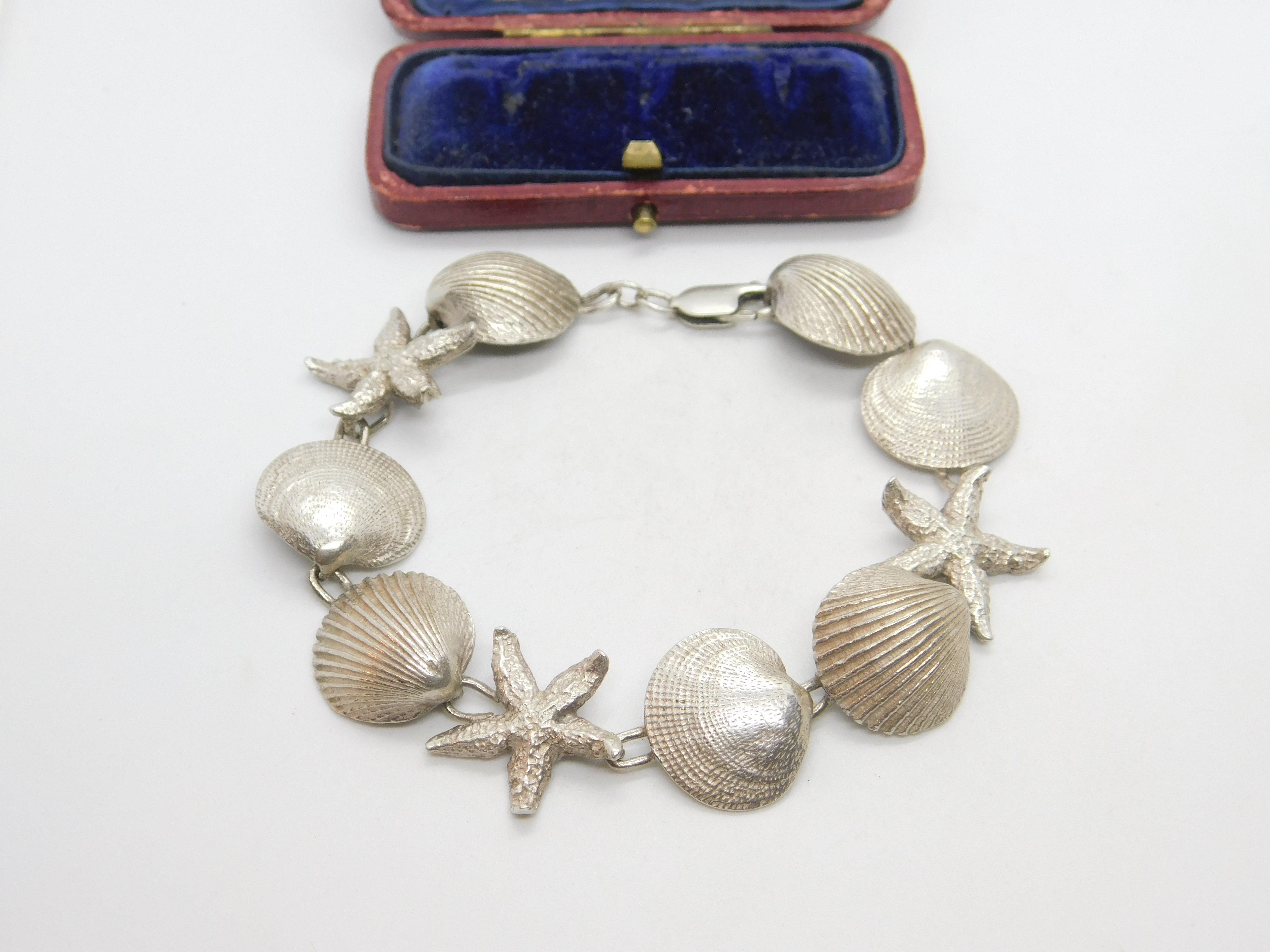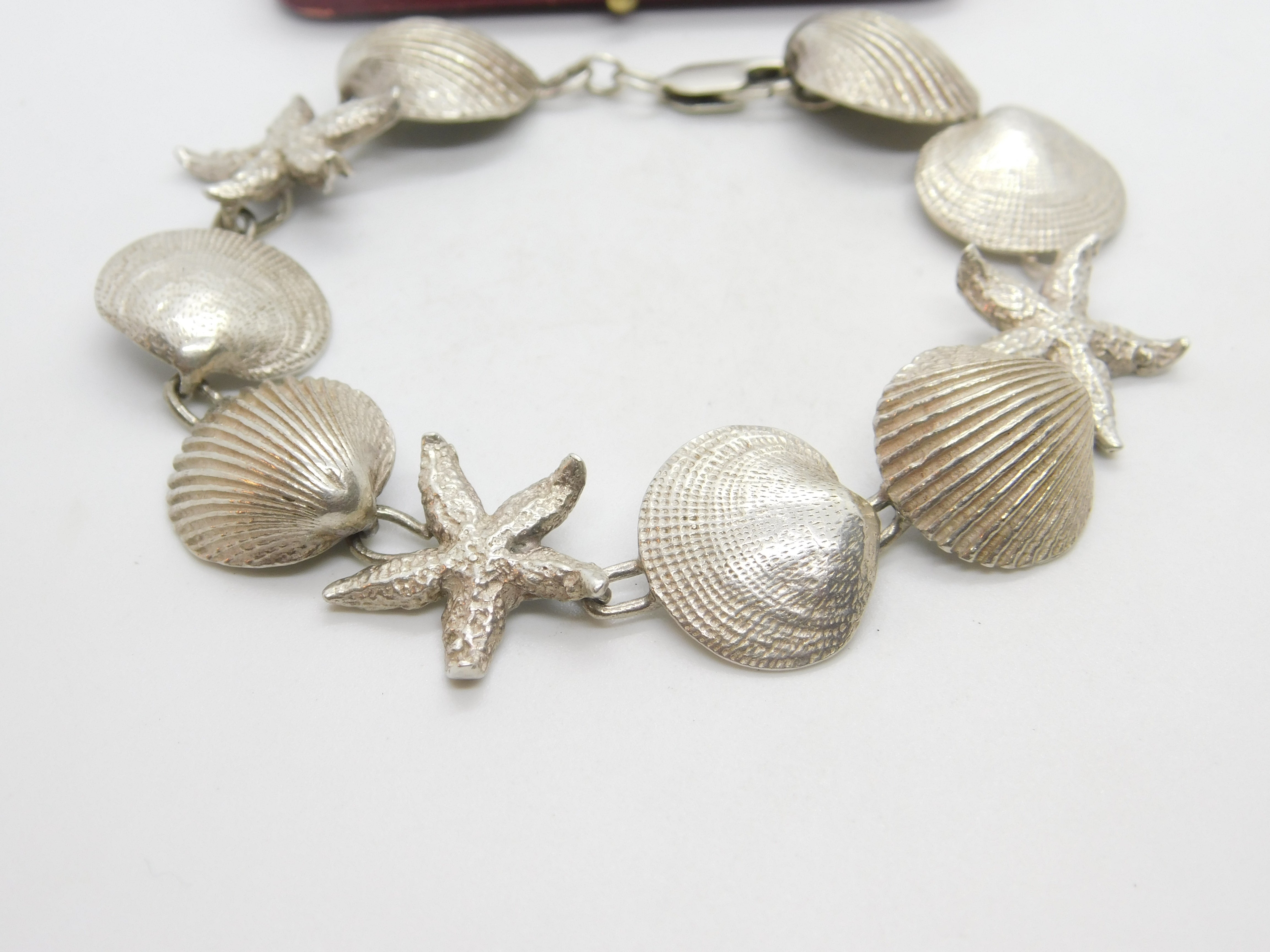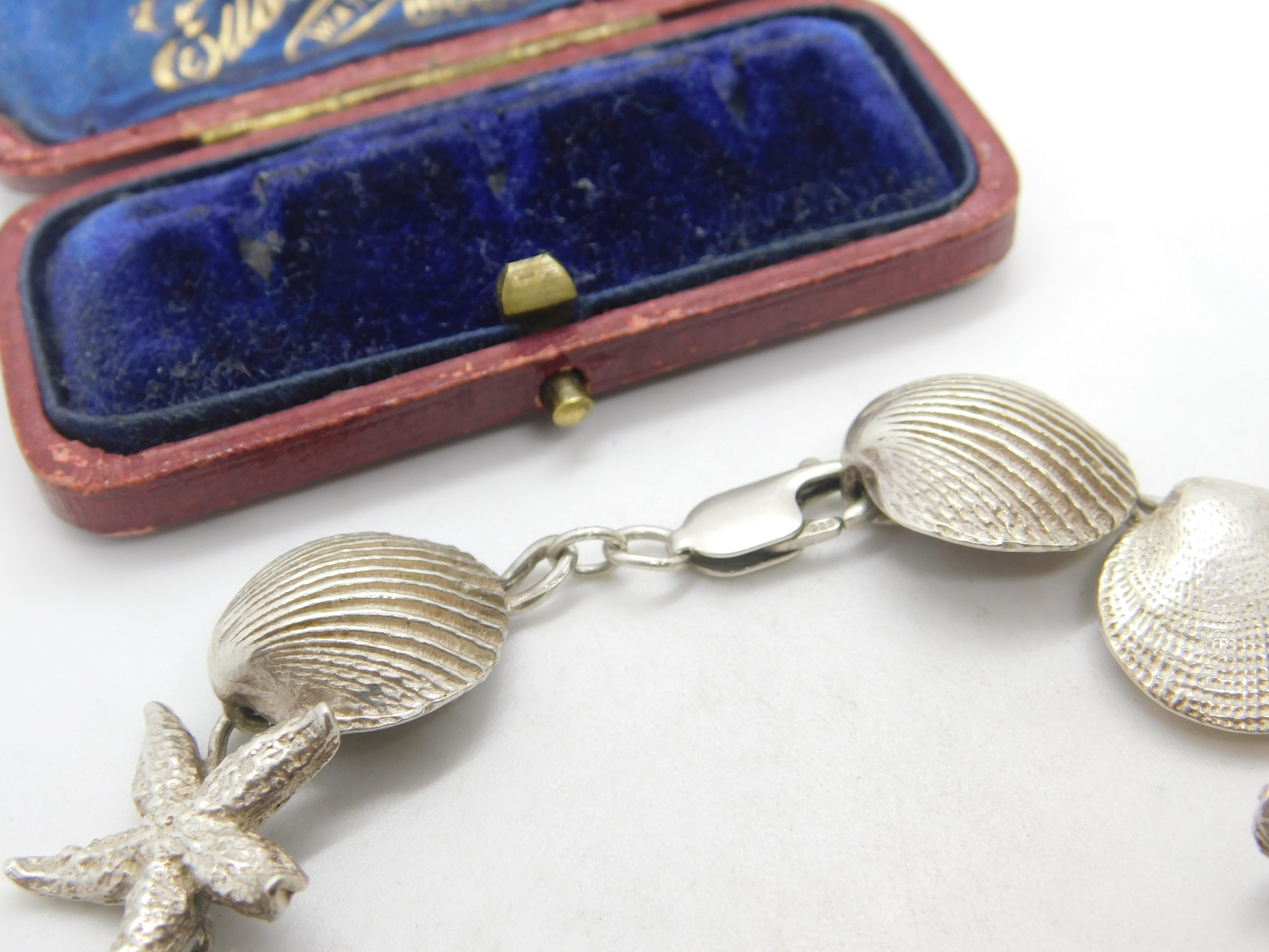 Details: A fantastic and wonderfully designed vintage sterling silver statement panel bracelet with seashell & starfish hallmarked to the bale c1970. A superb quality example. This is a wonderful item that would make a perfect gift or addition to any collection. The BOX pictured is for PRESENTATION ONLY and is NOT included in the listings but used to frame the pictures unless specifically stated otherwise.