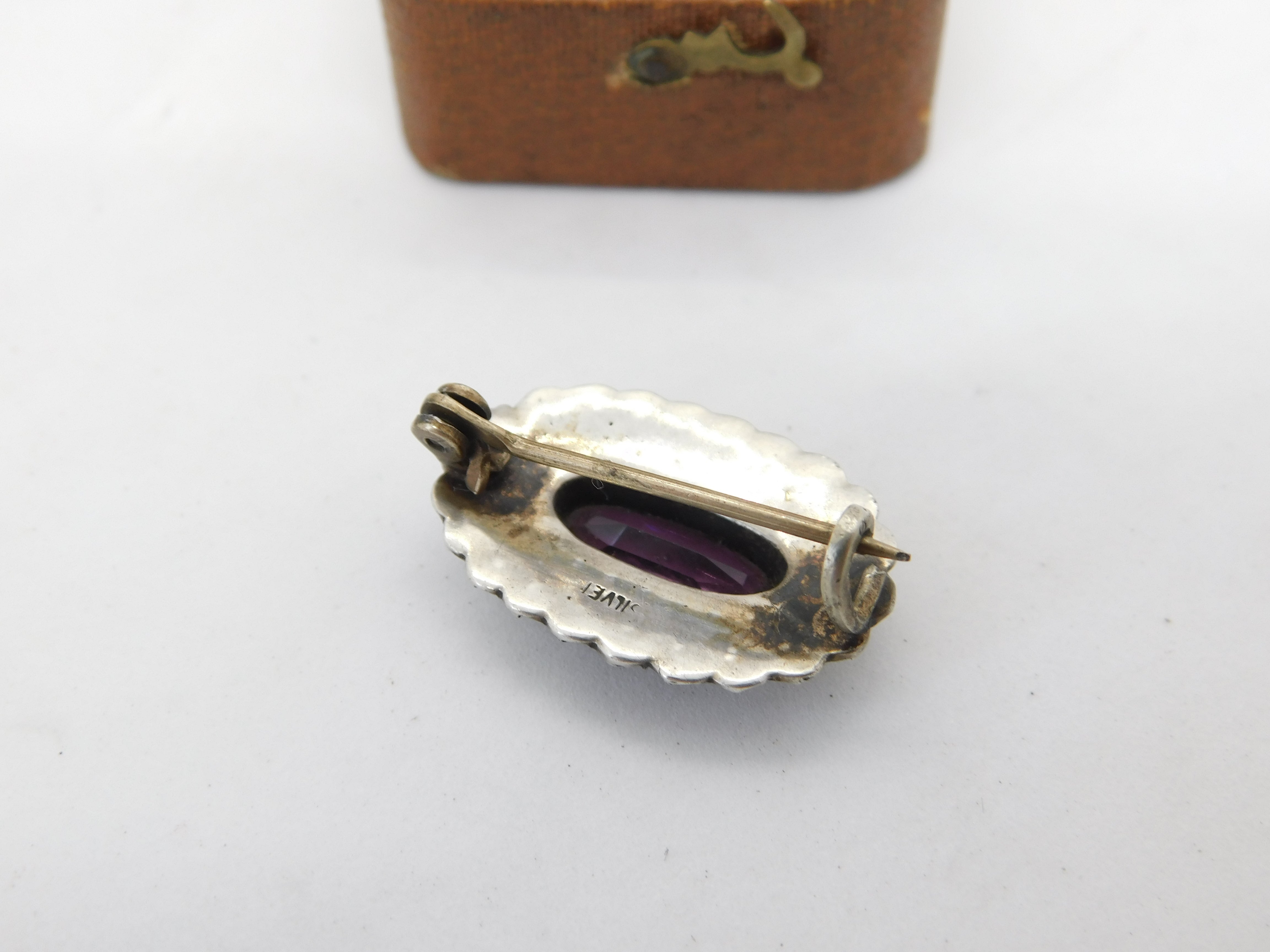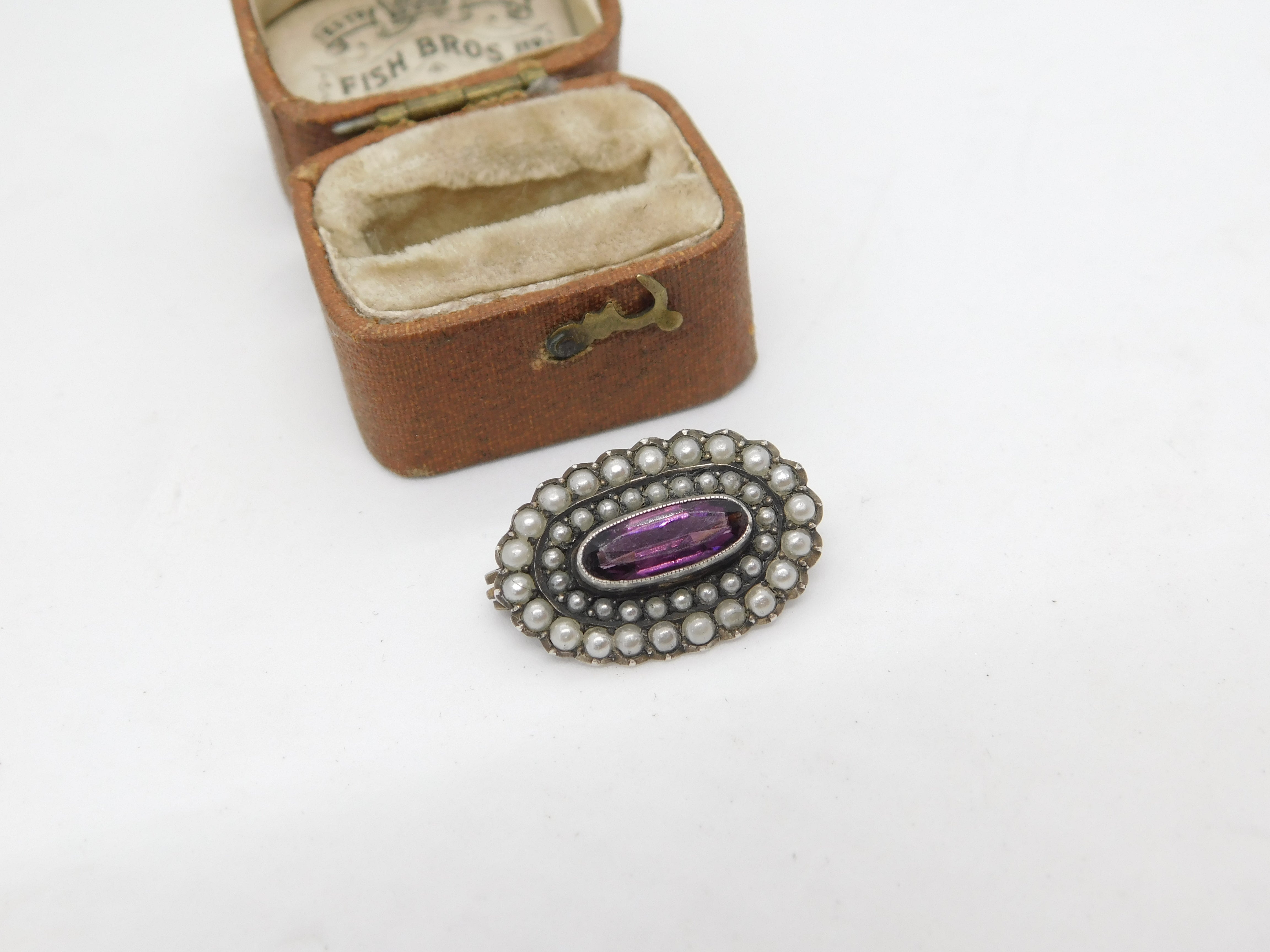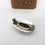 Sterling Silver, Seed Pearl & Amethyst Dress Brooch Antique c1920 Art Deco