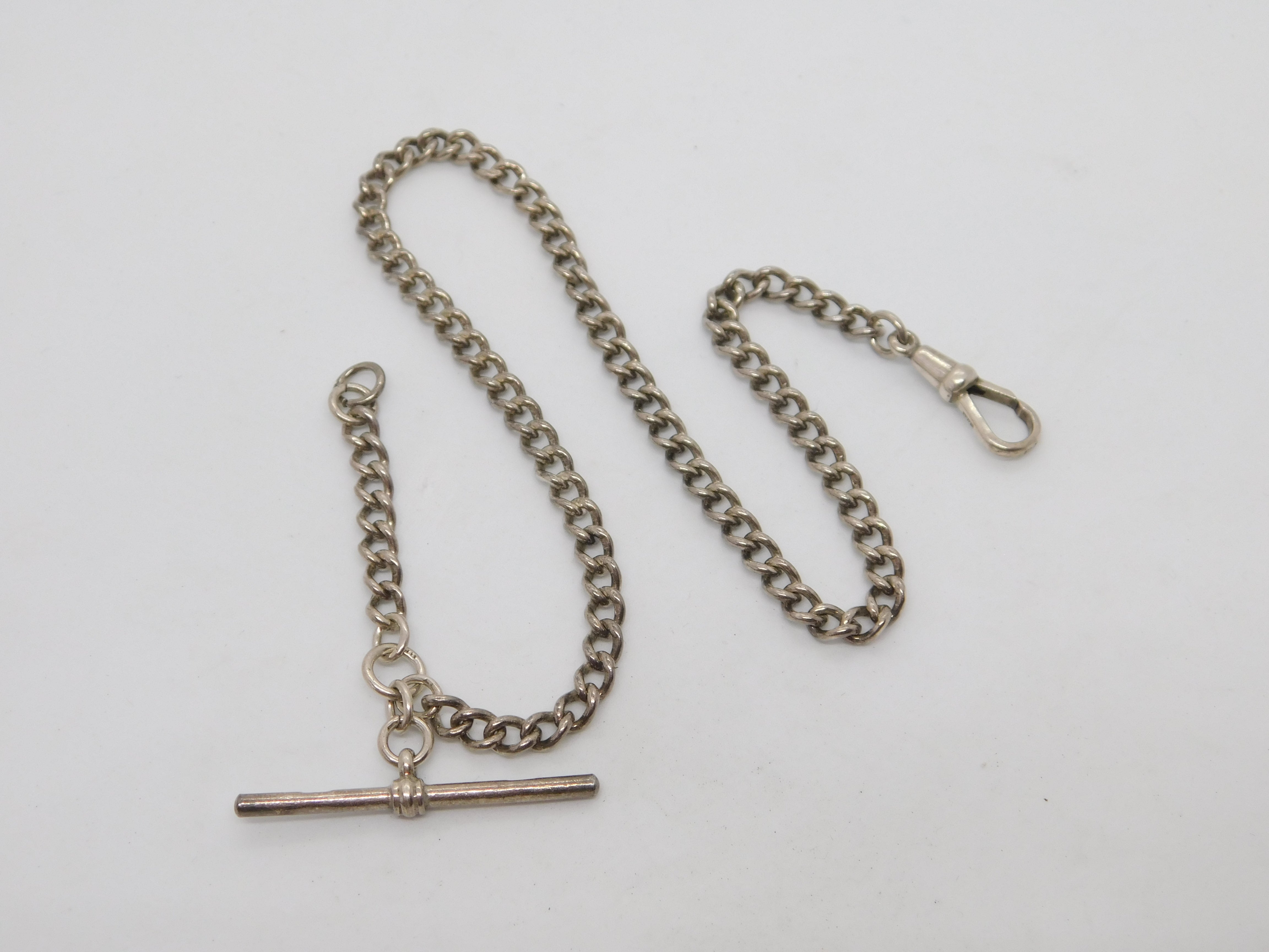 Sterling Silver Single Albert Watch Chain Antique 1911 Chester Art Deco