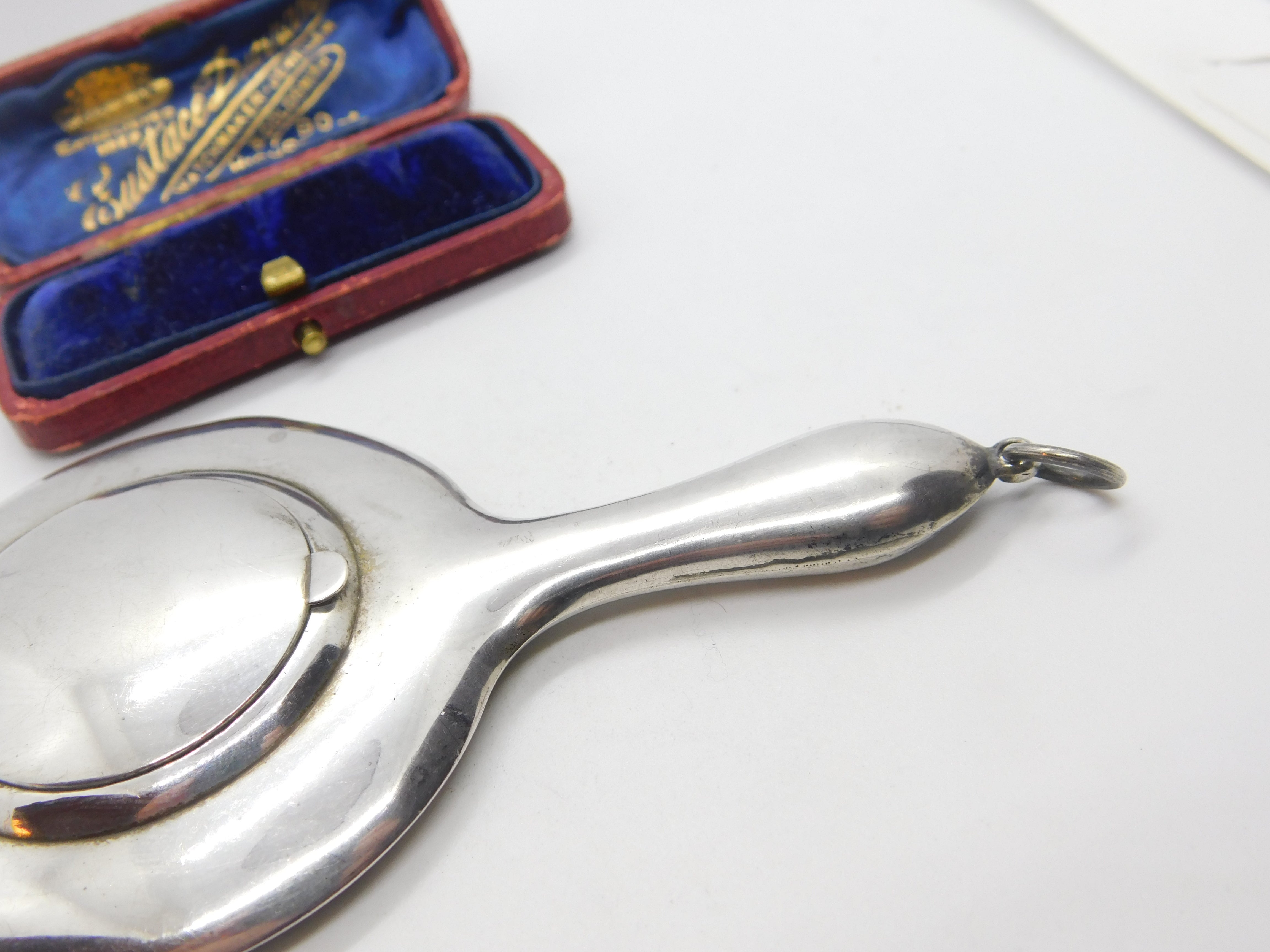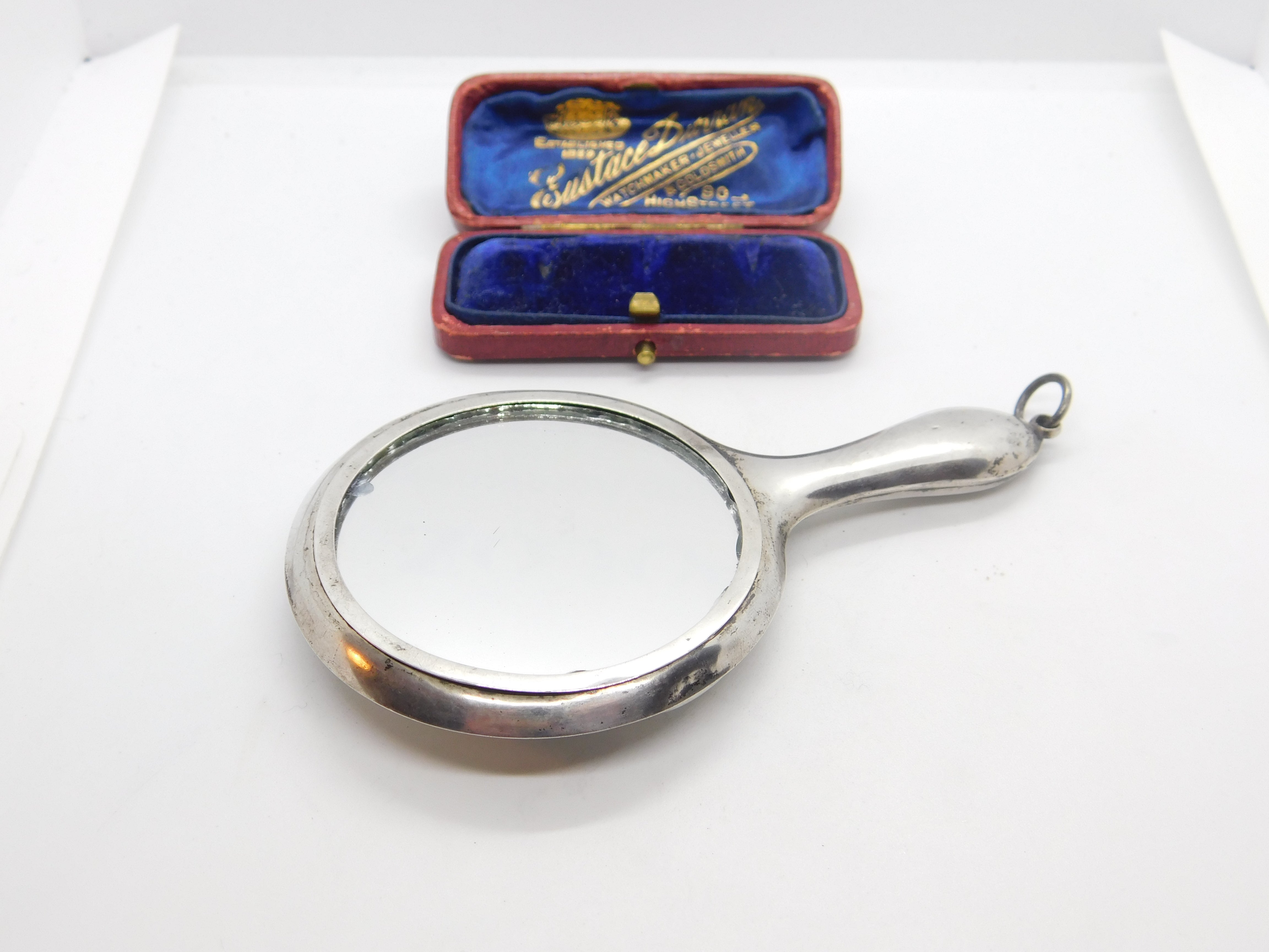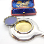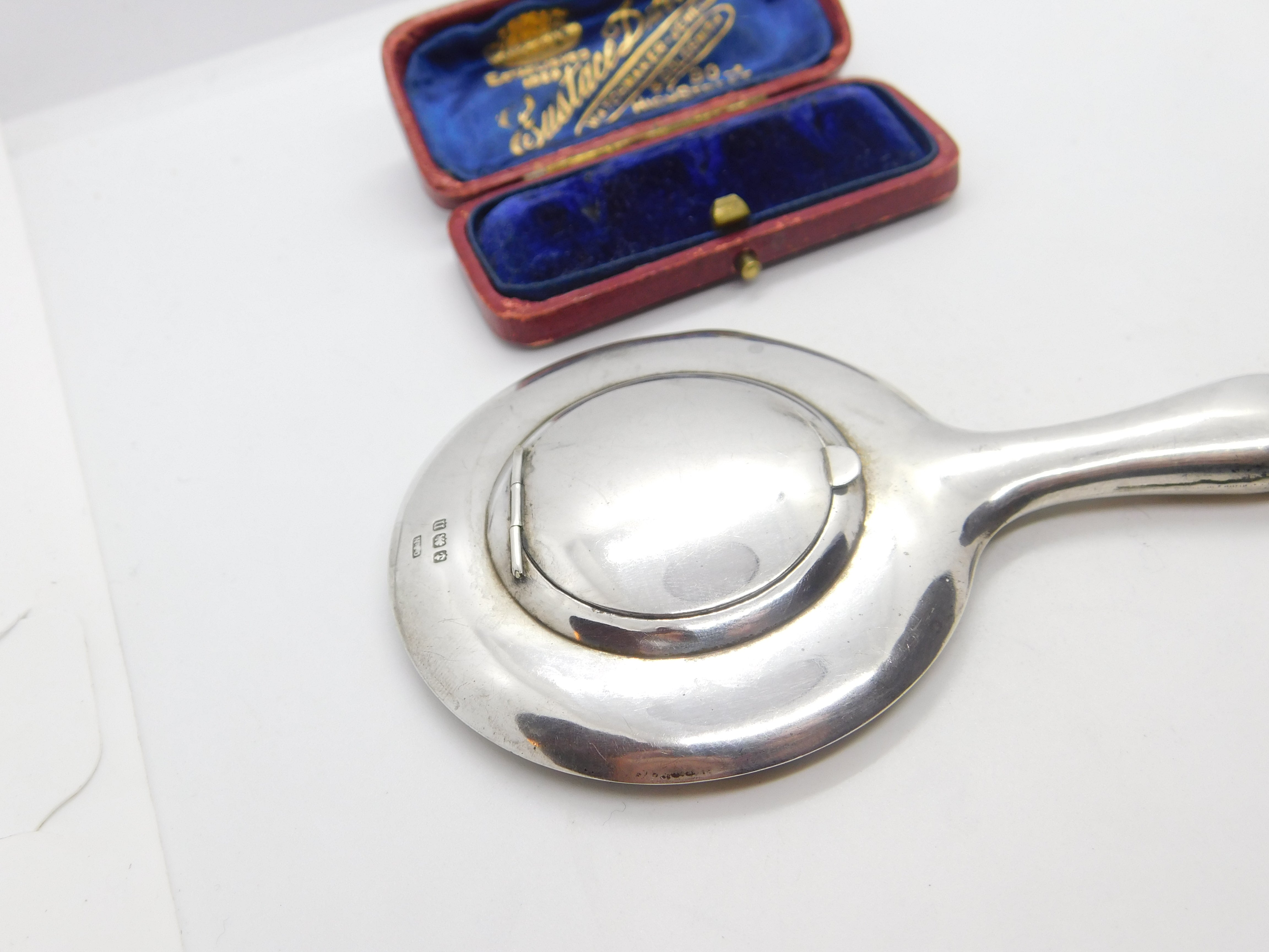 Sterling Silver Small Hand Mirror with Compact Back 1912 Birmingham Art Deco