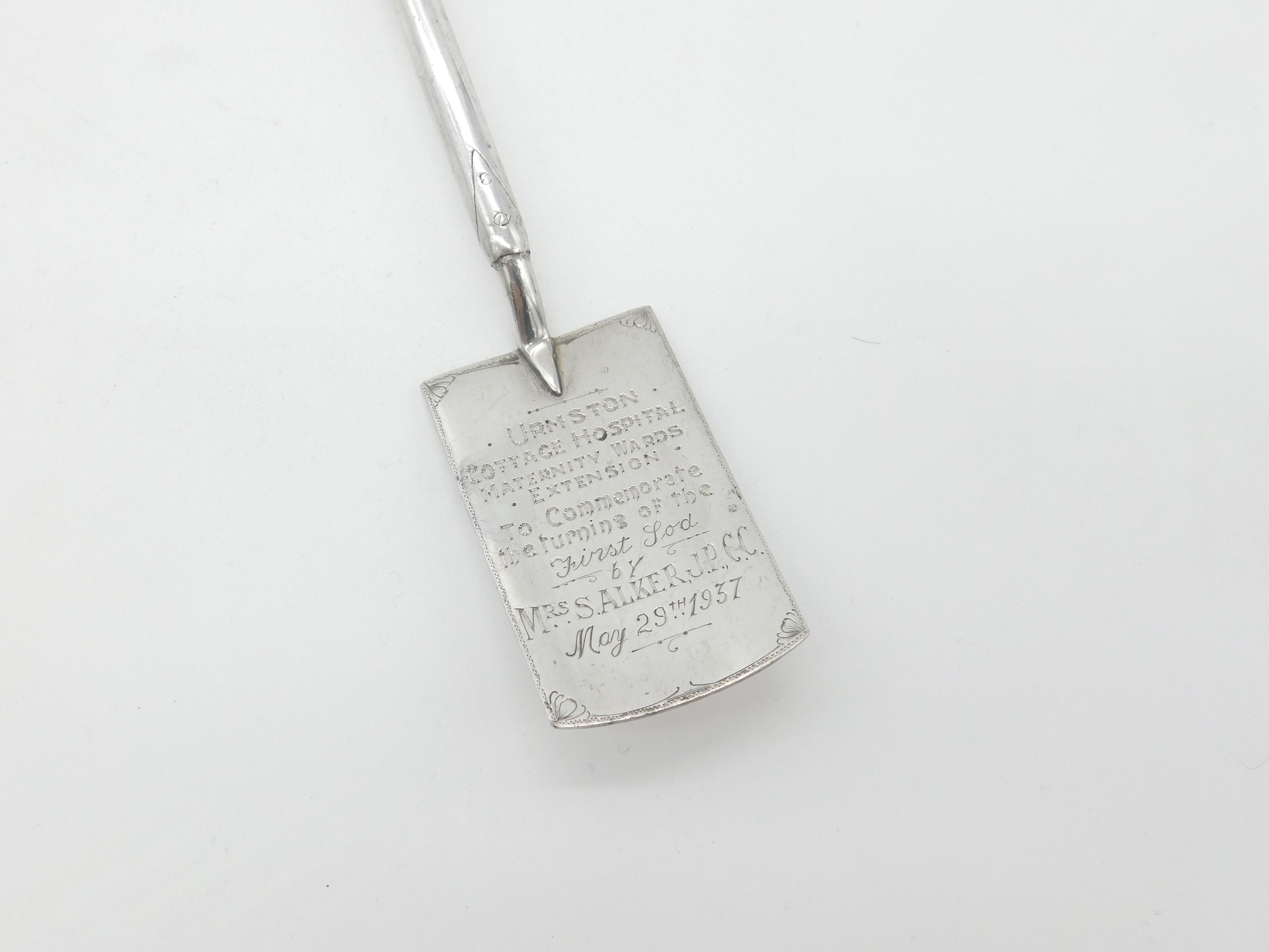 Sterling Silver Stone Laying Celebration Spade 'Urmston Hospital' 1937 Antique