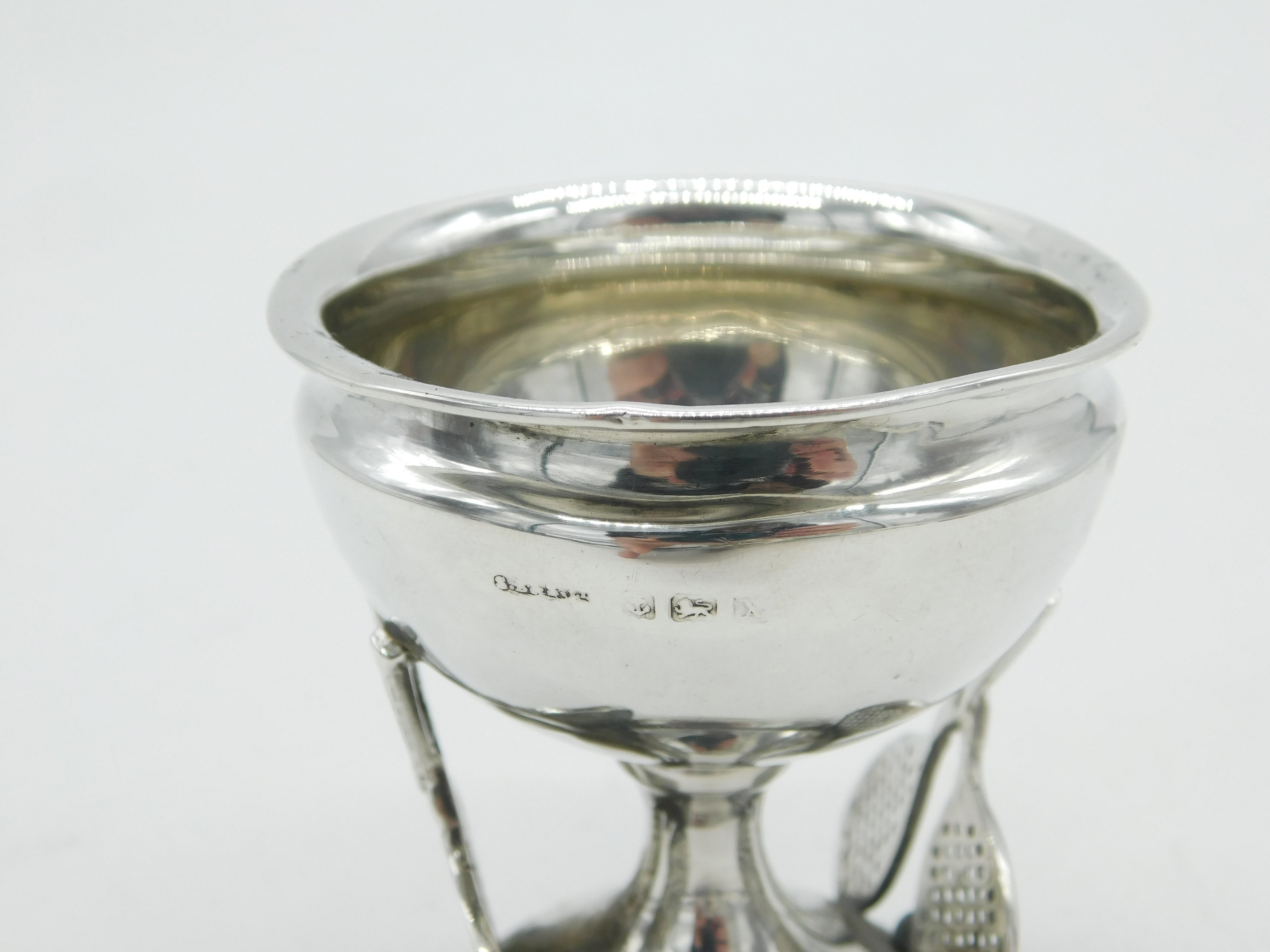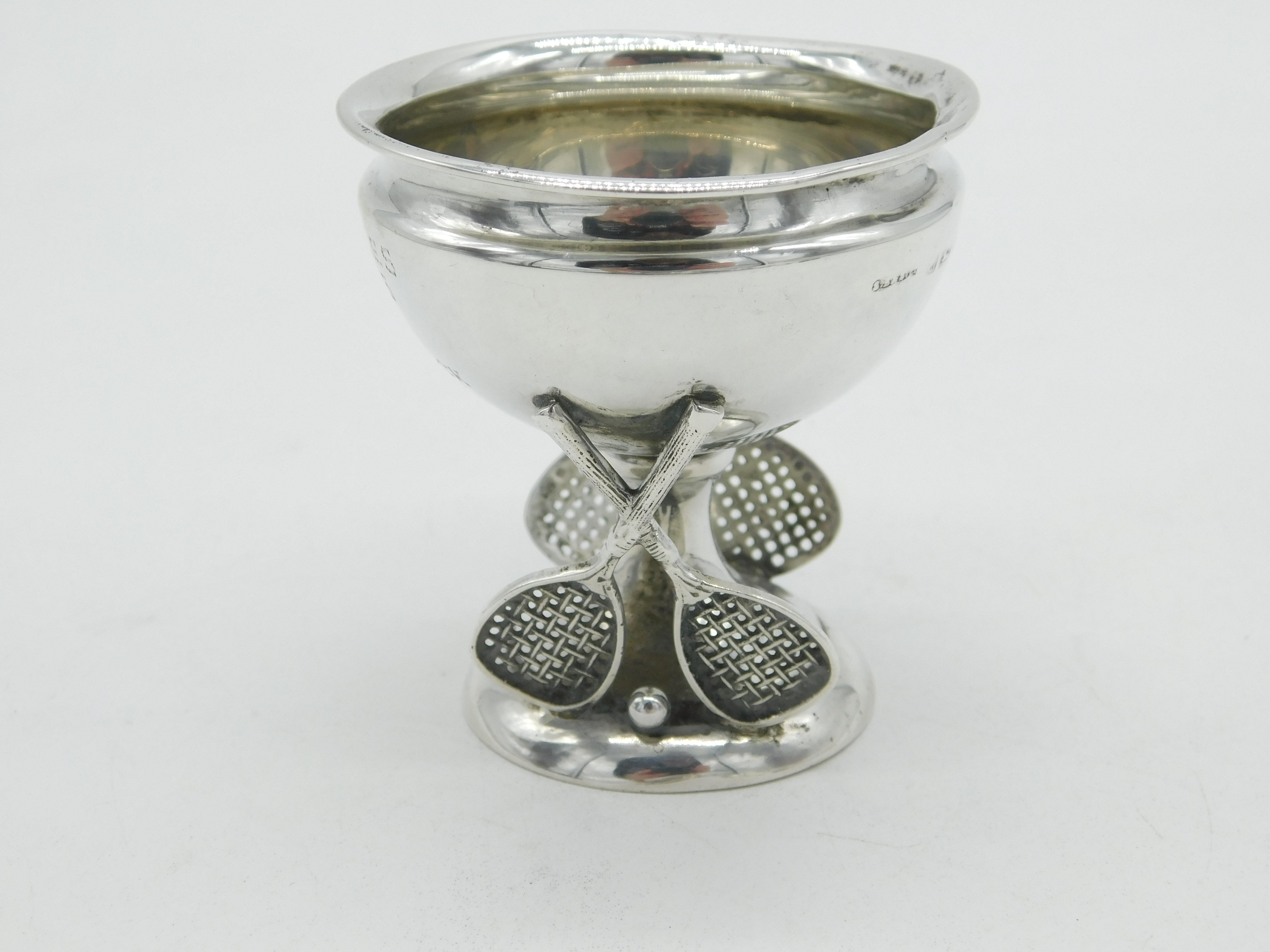 Details: A fantastic and wonderfully designed antique art deco sterling silver tennis trophy with fun racket form hallmarked Birmingham 1922 to the edge. This is a wonderful item that would make a perfect gift or addition to any collection. The BOX pictured is for PRESENTATION ONLY and is NOT included in the listings but used to frame the pictures unless specifically stated otherwise.
