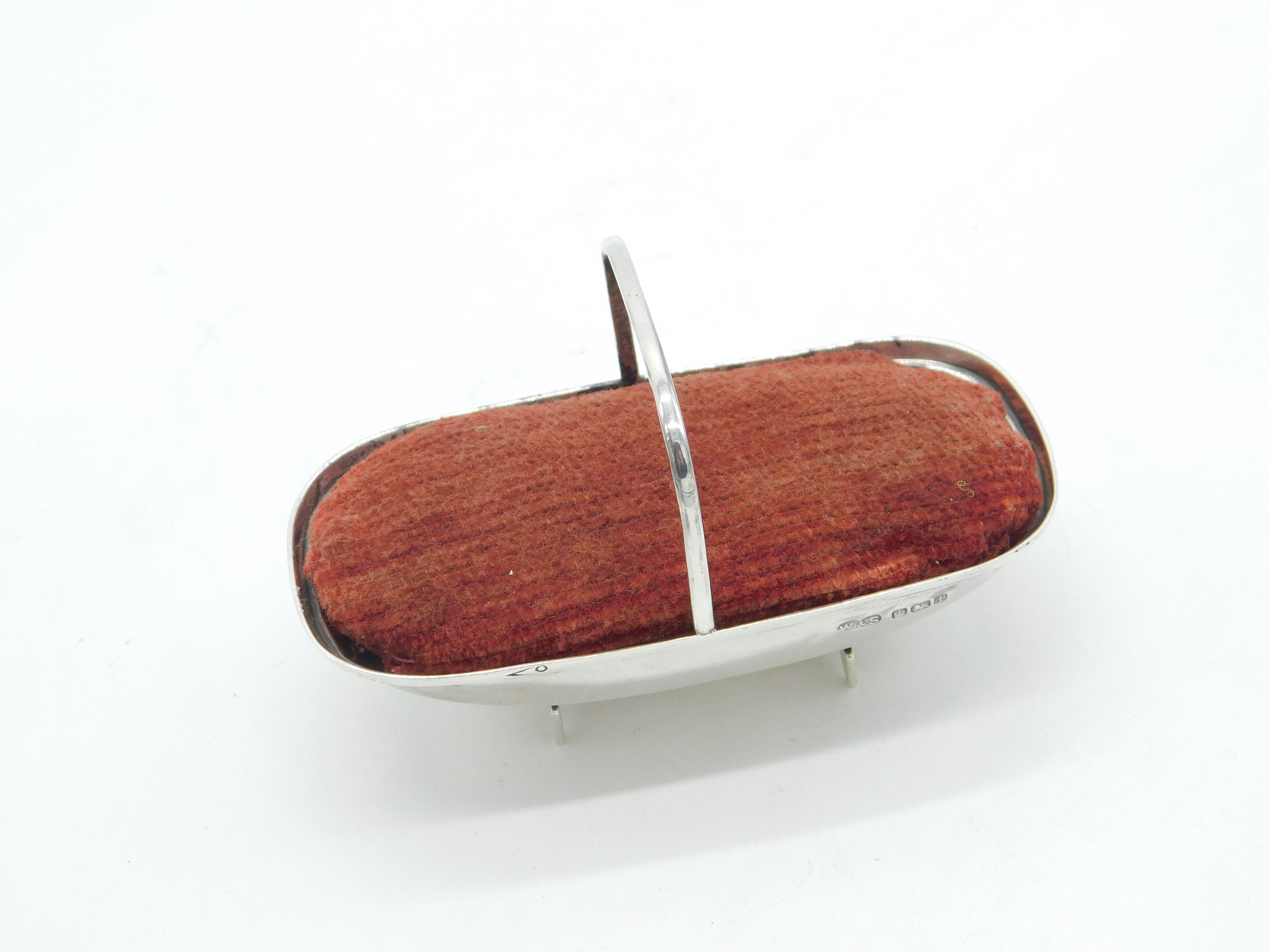 Sterling Silver Trug Basket Novelty Sewing Pin Cushion Antique 1911 Sheffield