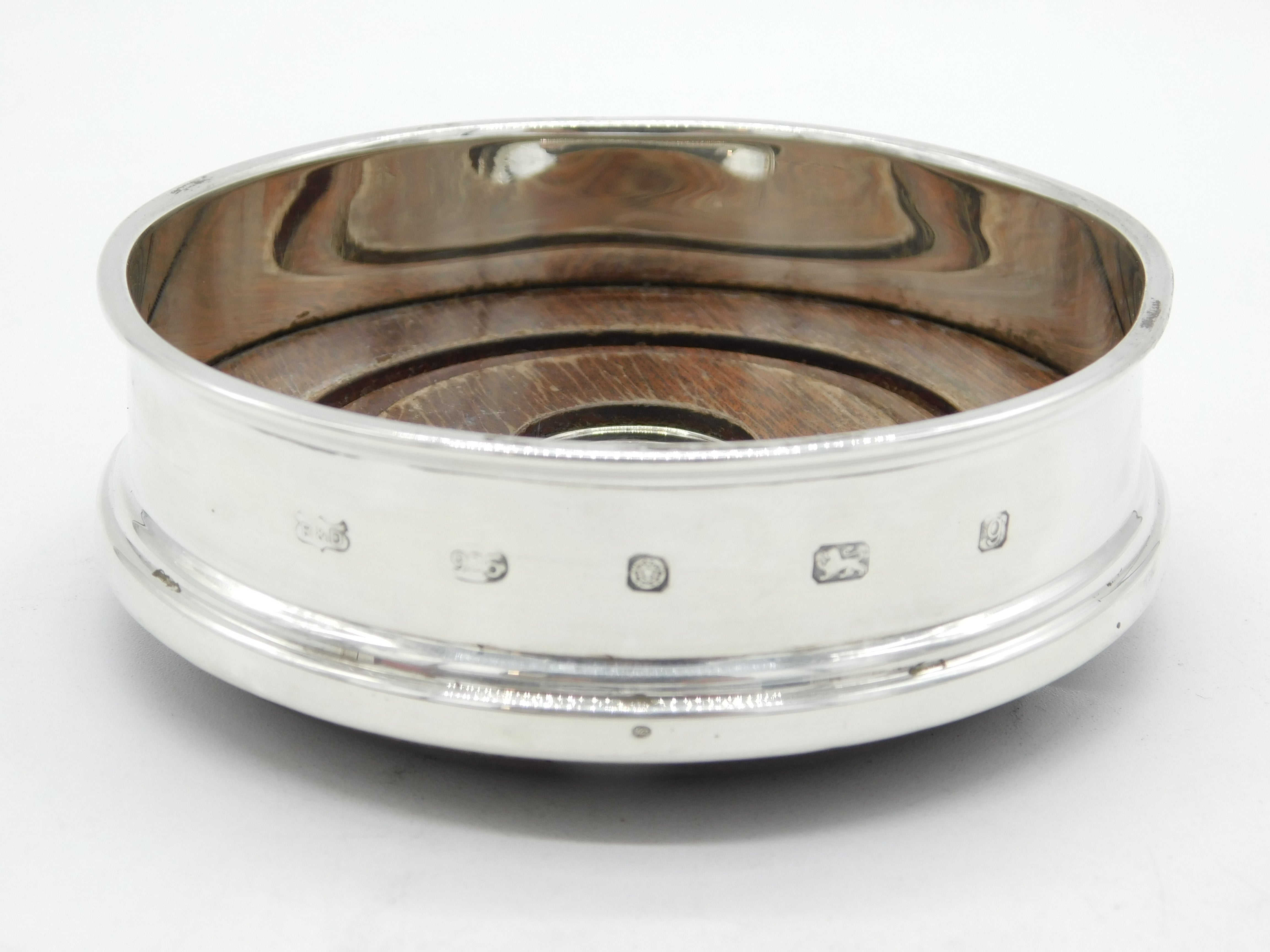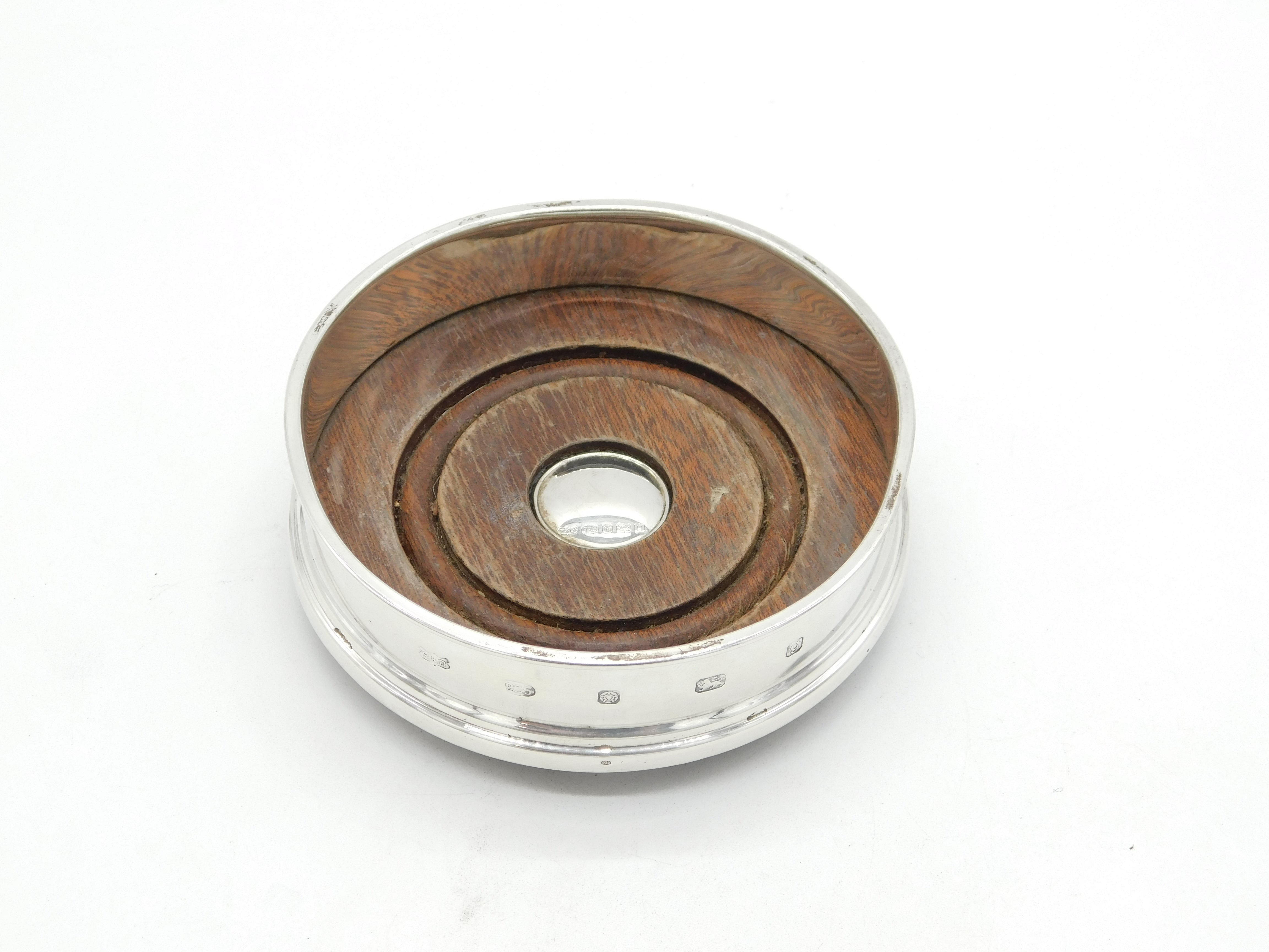 Sterling Silver & Turned Wooden Bottle Coaster Vintage 2006 Sheffield