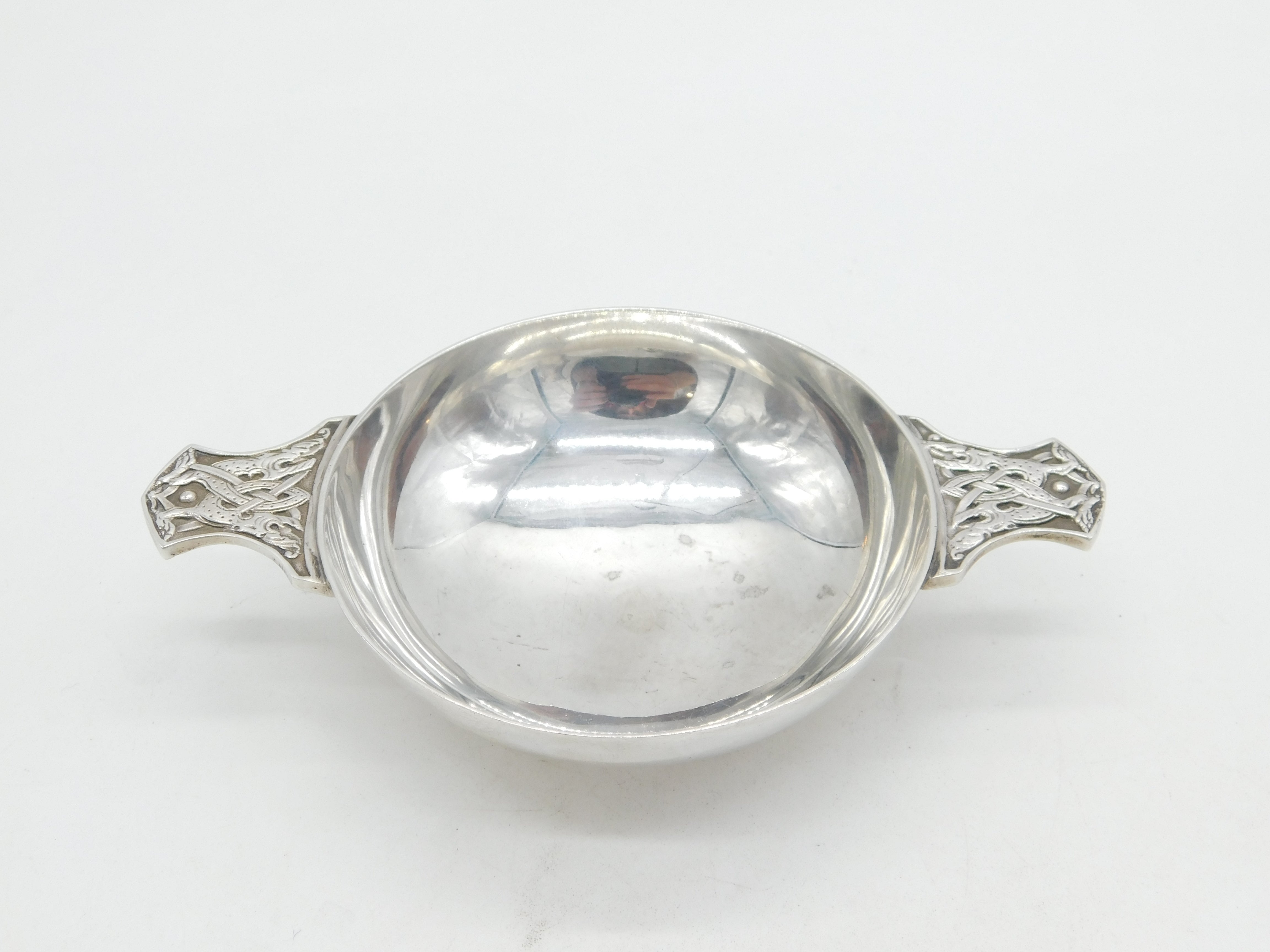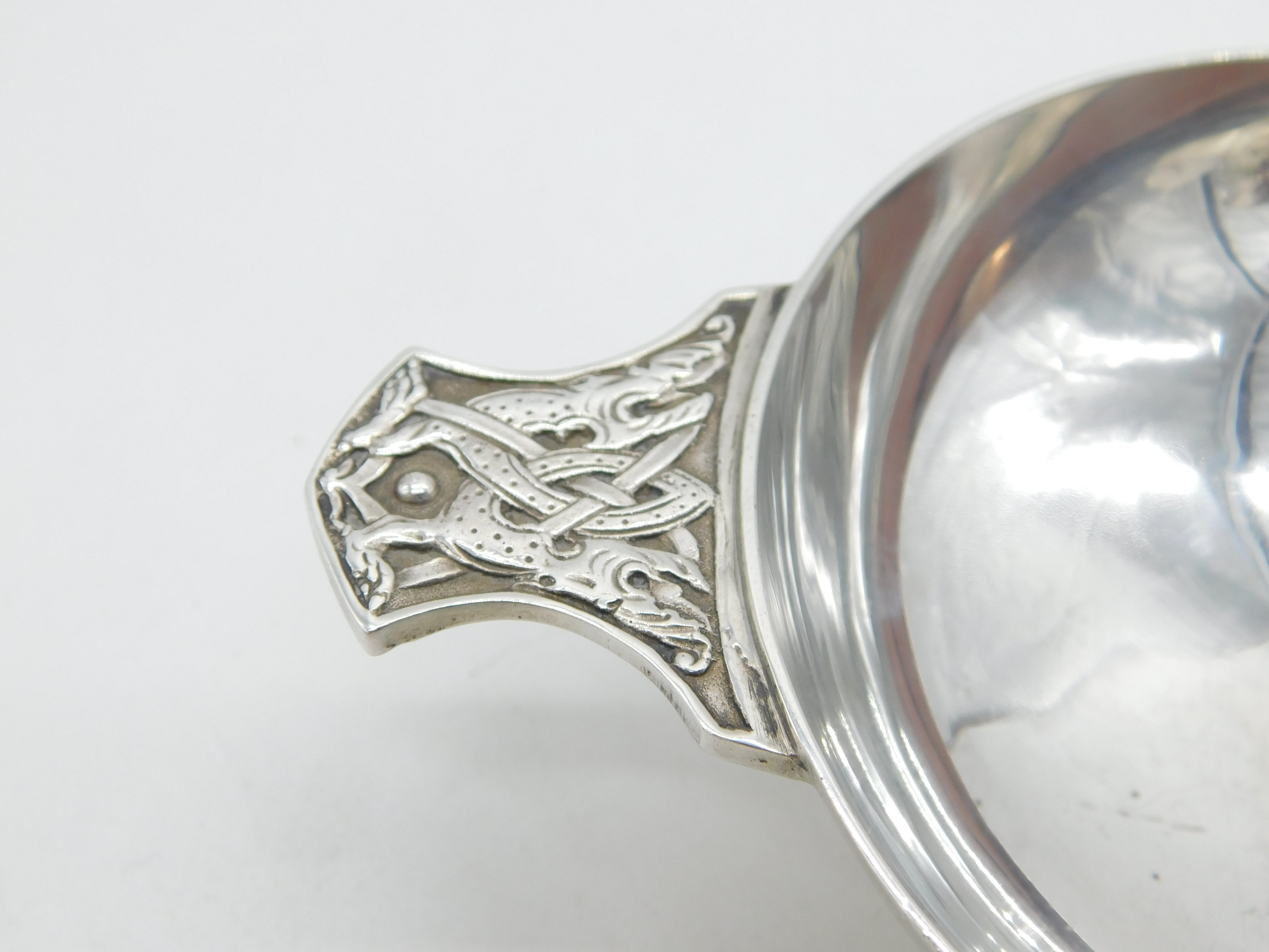 Sterling Silver Two-Handled Celtic Pattern Quaich Cup Vintage 1959 London