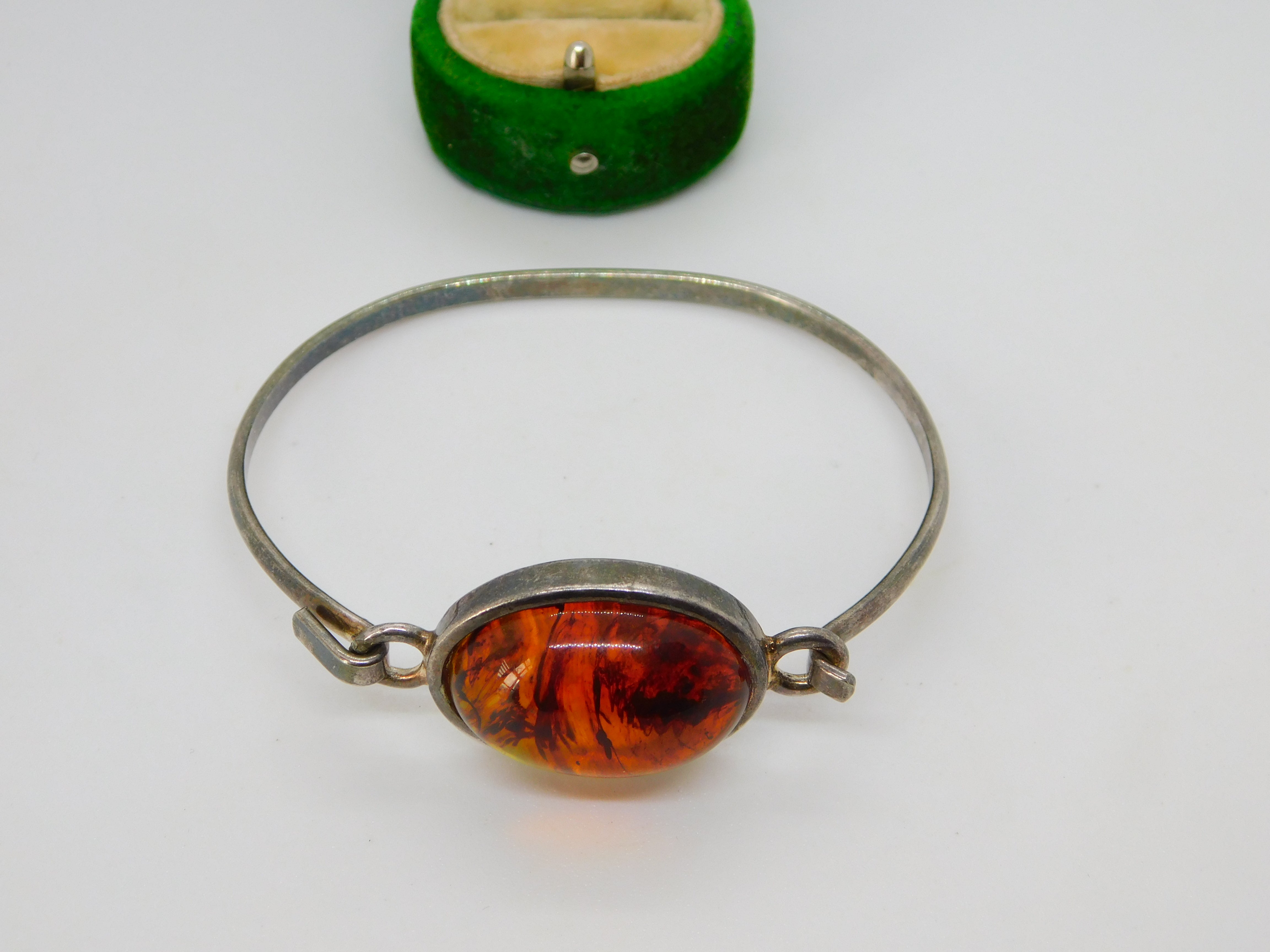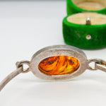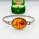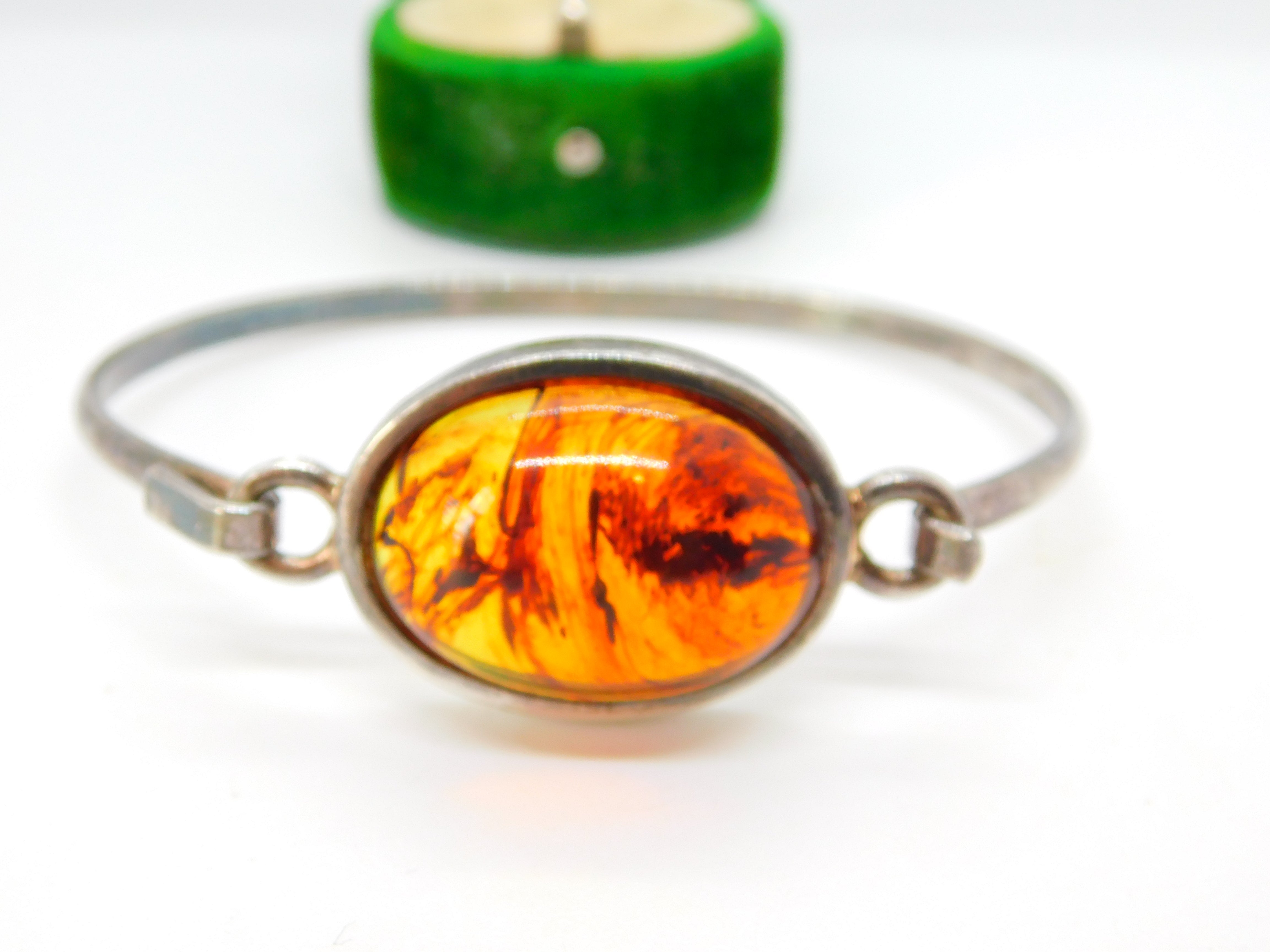 Studio Sterling Silver Cabochon Baltic Amber Bangle Bracelet Vintage c1980