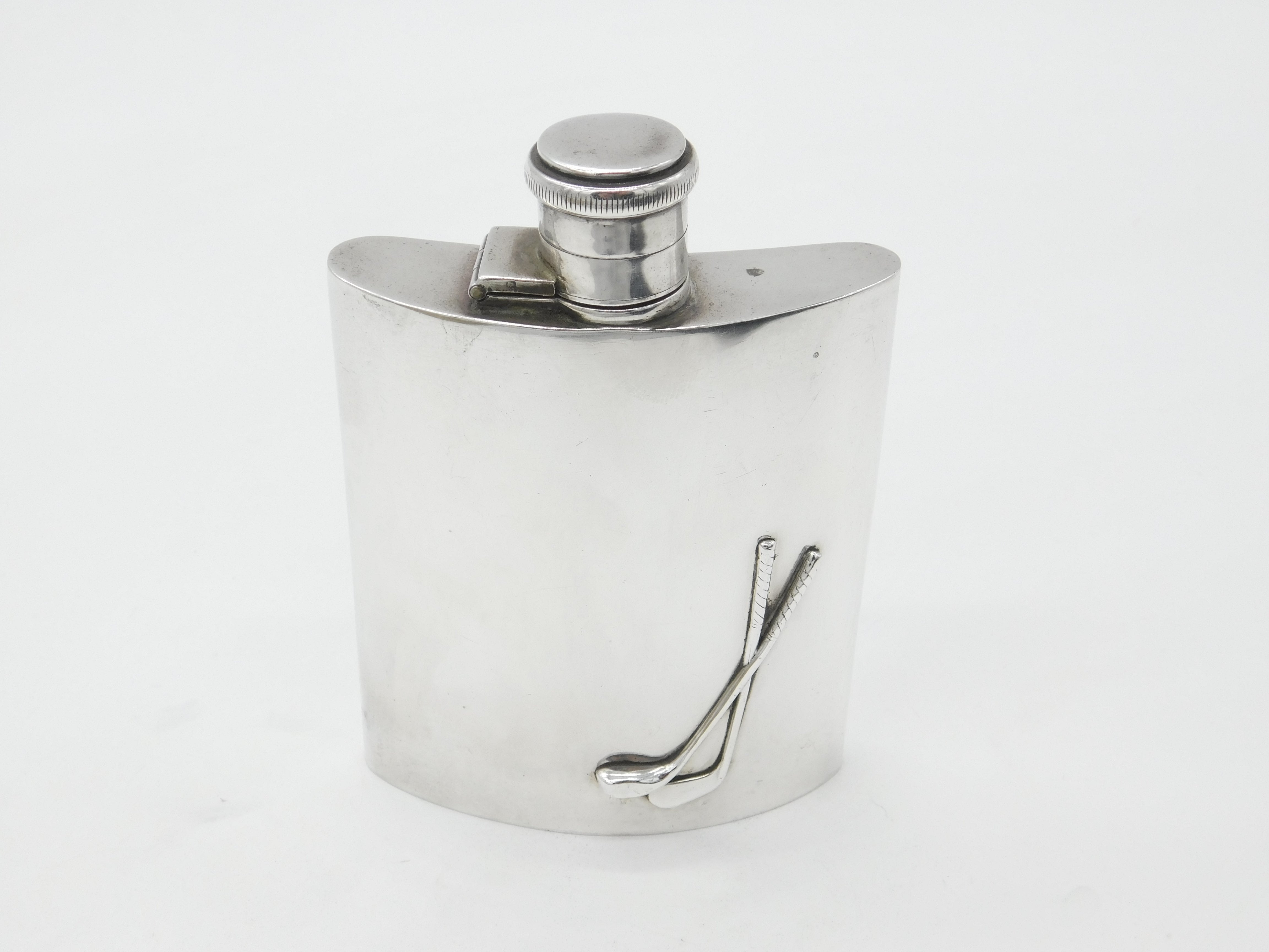 Swaine Sterling Silver Golf Club Hip Flask 1921 Birmingham Antique Art Deco