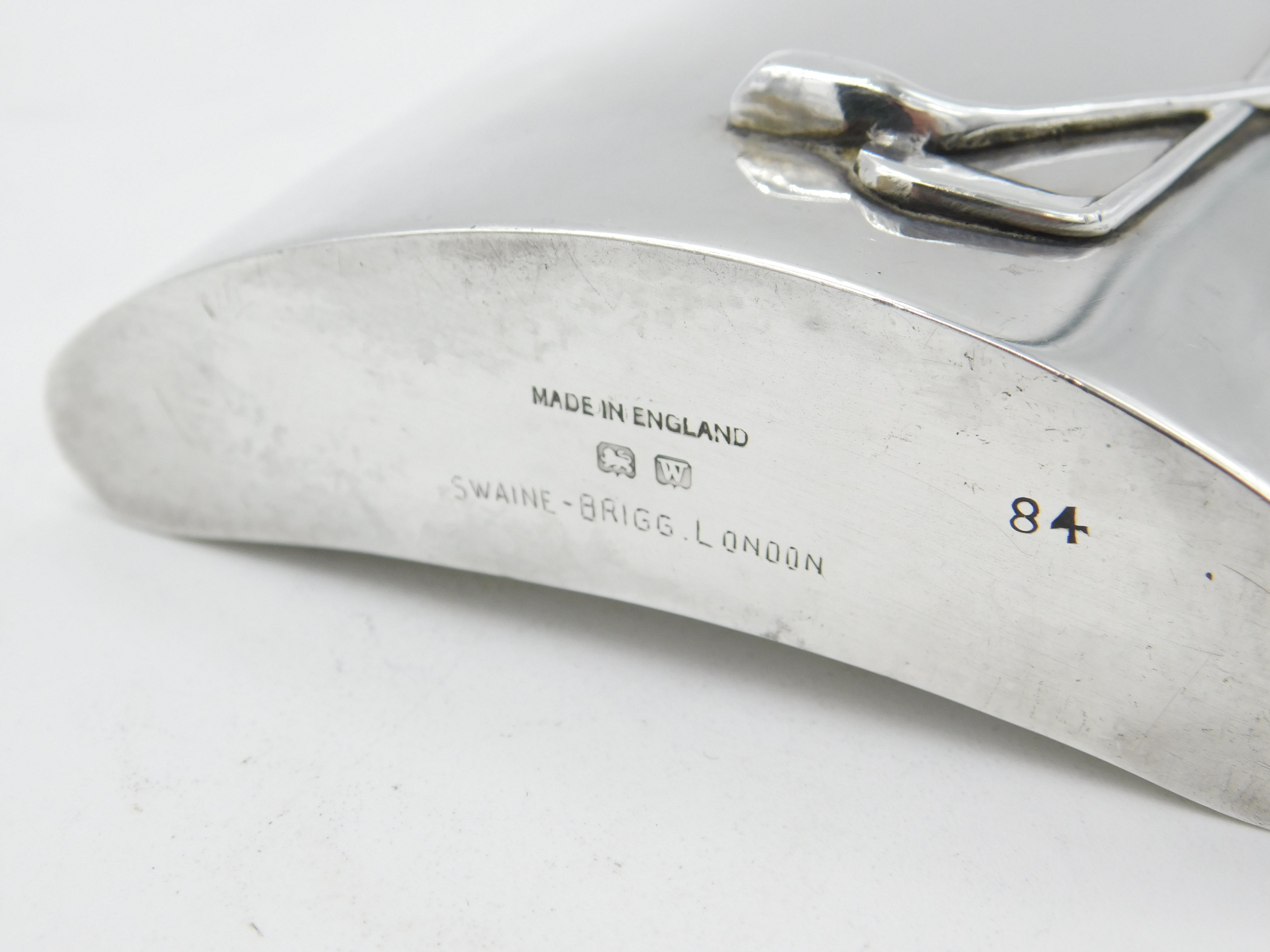 Details: A fantastic and wonderfully designed antique art deco Swaine retailed sterling silver hip flask with charming golf club design hallmarked Birmingham 1921 by F Burton Crosbee. Rather large flask holds an estimated 300ml. This is a wonderful item that would make a perfect gift or addition to any collection. The BOX pictured is for PRESENTATION ONLY and is NOT included in the listings but used to frame the pictures unless specifically stated otherwise.