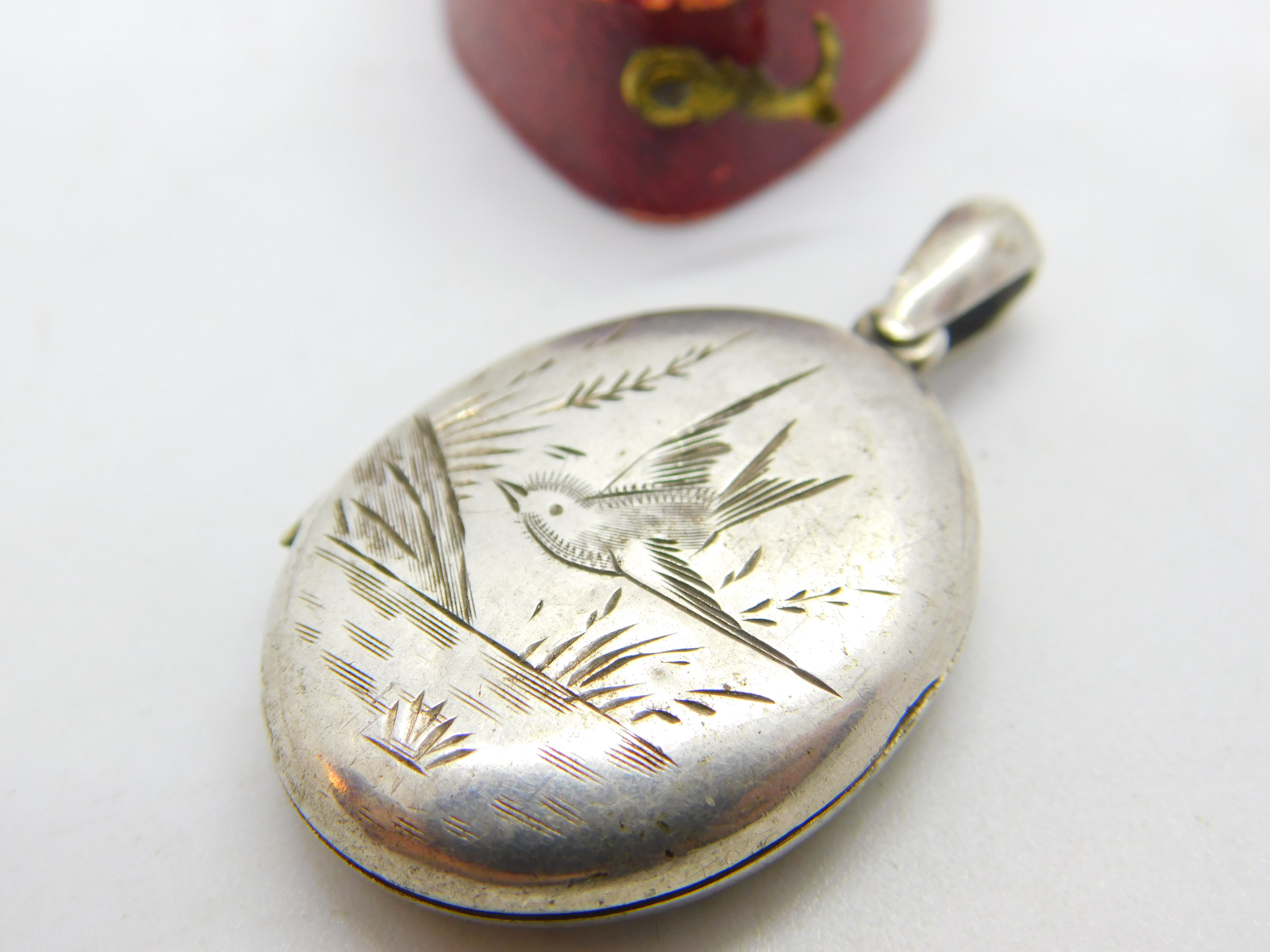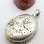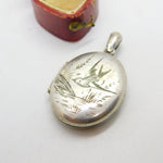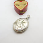 Swallow Bird Aesethetic Sterling Silver Double Locket Pendant Antique Victorian