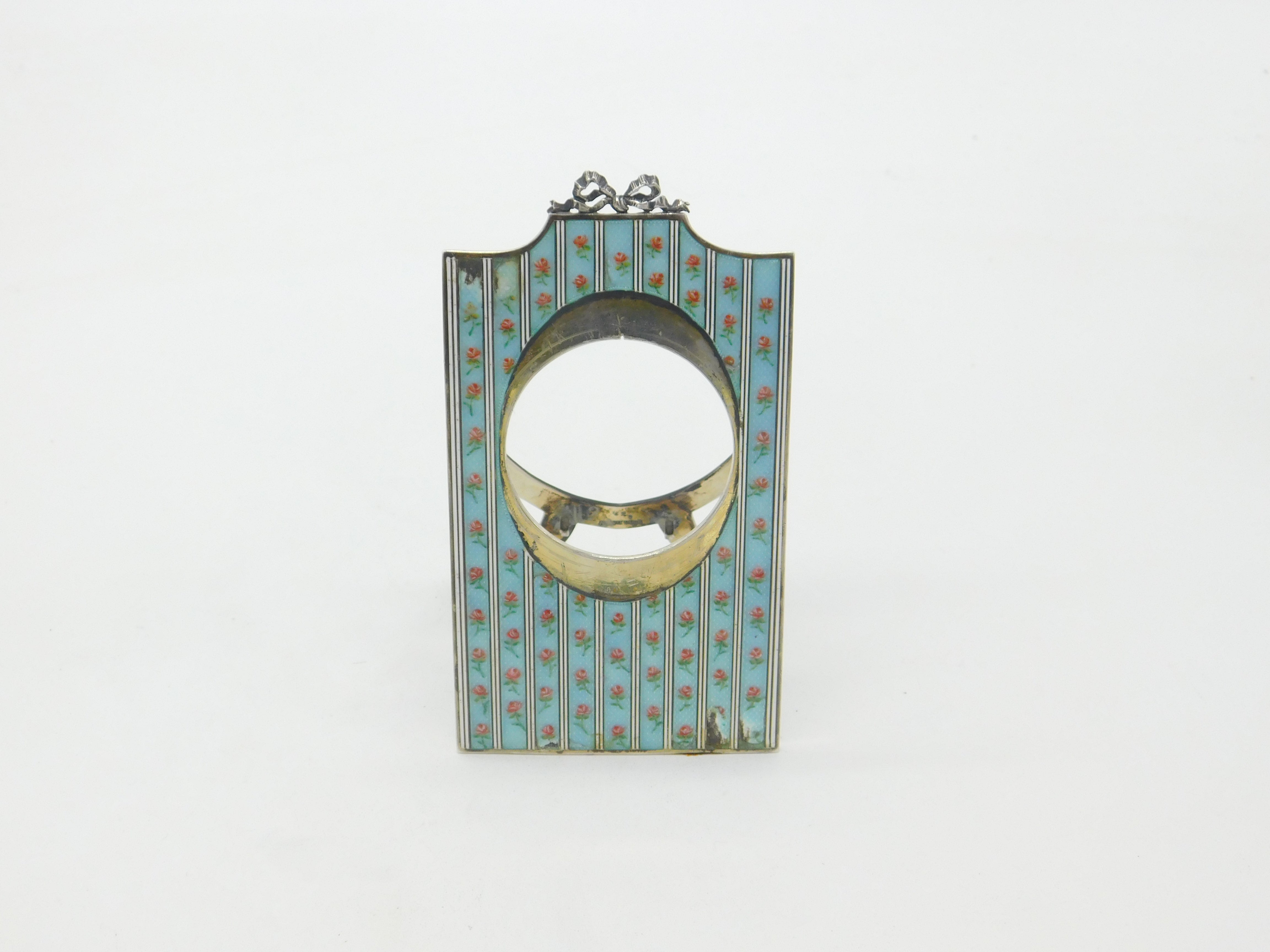 Swiss Sterling Silver Rose Flower Guilloche Enamel Watch Frame c1900 Antique