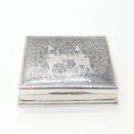 Thai Sterling Silver & Niello Enamel Fighting Elephant Cigarette Box Vintage