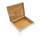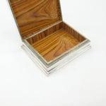 Details: A fantastic and wonderfully designed Thai vintage sterling silver beautiful Niello enamel fighting elephant cigarette or trinket box inlaid with cedar wood hallmarked to the base c1950. This is a wonderful item that would make a perfect gift or addition to any collection. The BOX pictured is for PRESENTATION ONLY and is NOT included in the listings but used to frame the pictures unless specifically stated otherwise.