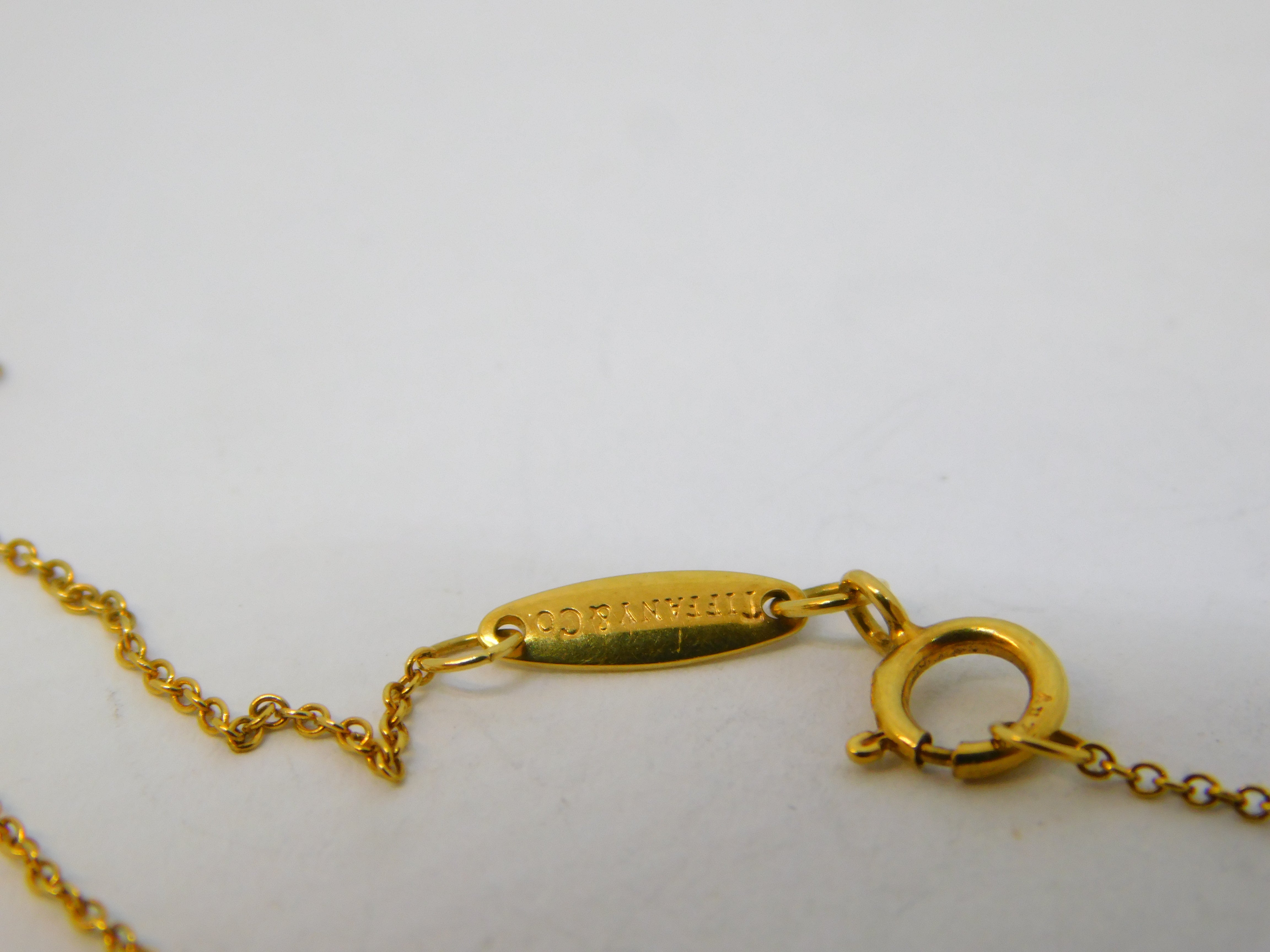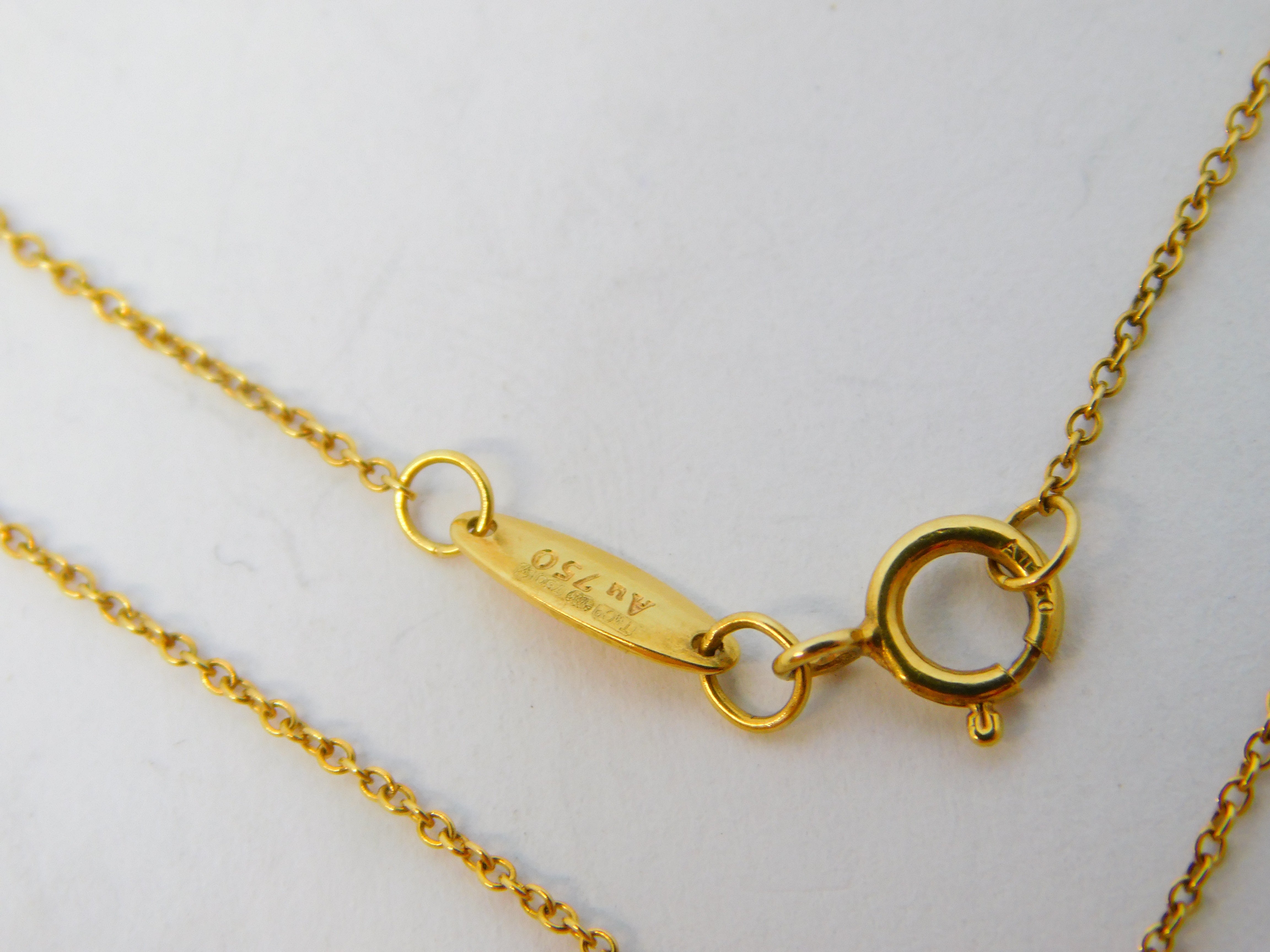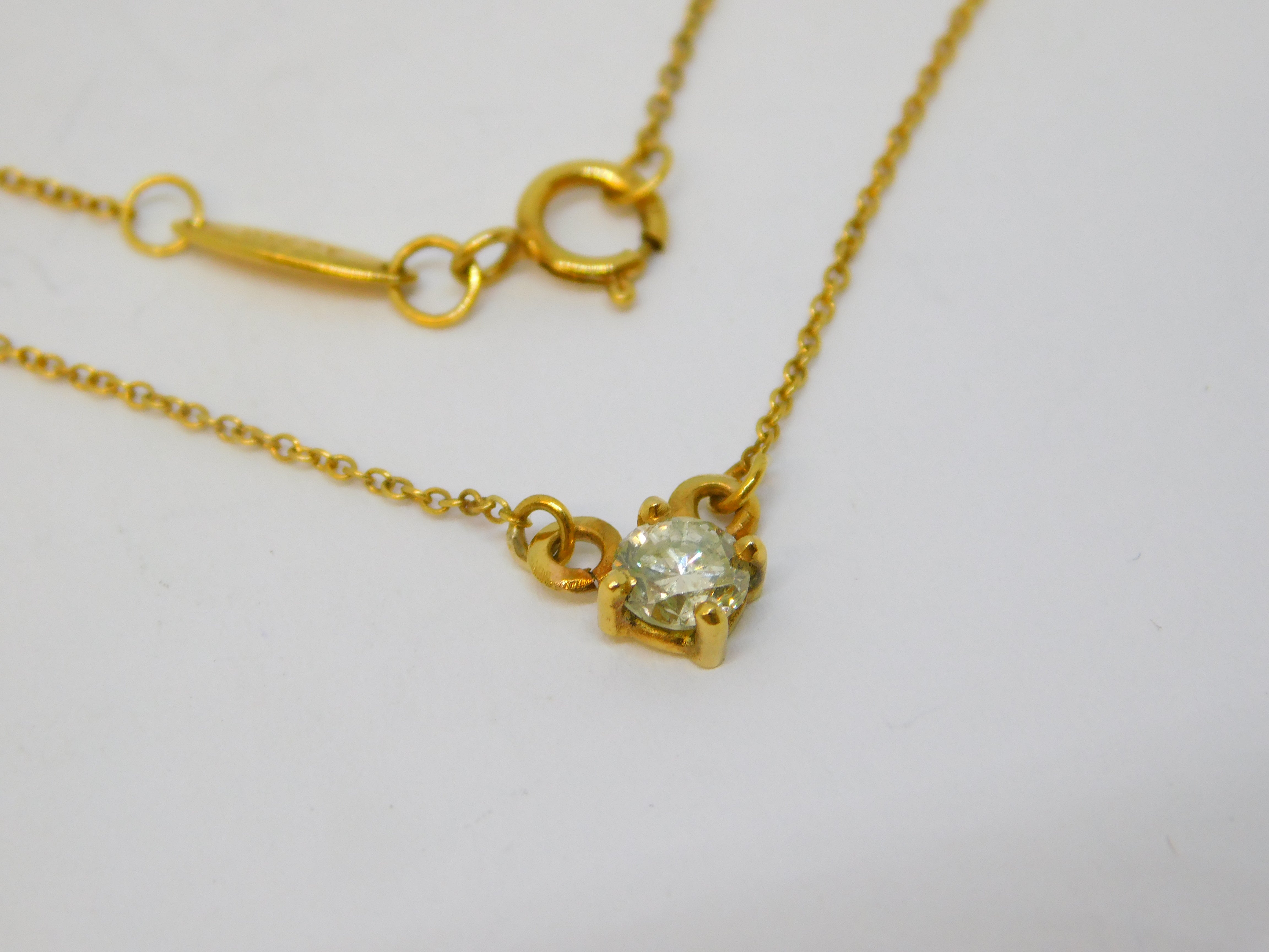 Details: A fantastic and wonderfully designed vintage Tiffany & Co. 18ct yellow gold fine necklace with charming cushion-cut 0.25ct diamond hallmarked fully for Tiffany & Co., London. Nice quality high-grade diamond. This is a wonderful item that would make a perfect gift or addition to any collection. We are more than happy to provide XRF reports for items upon request.