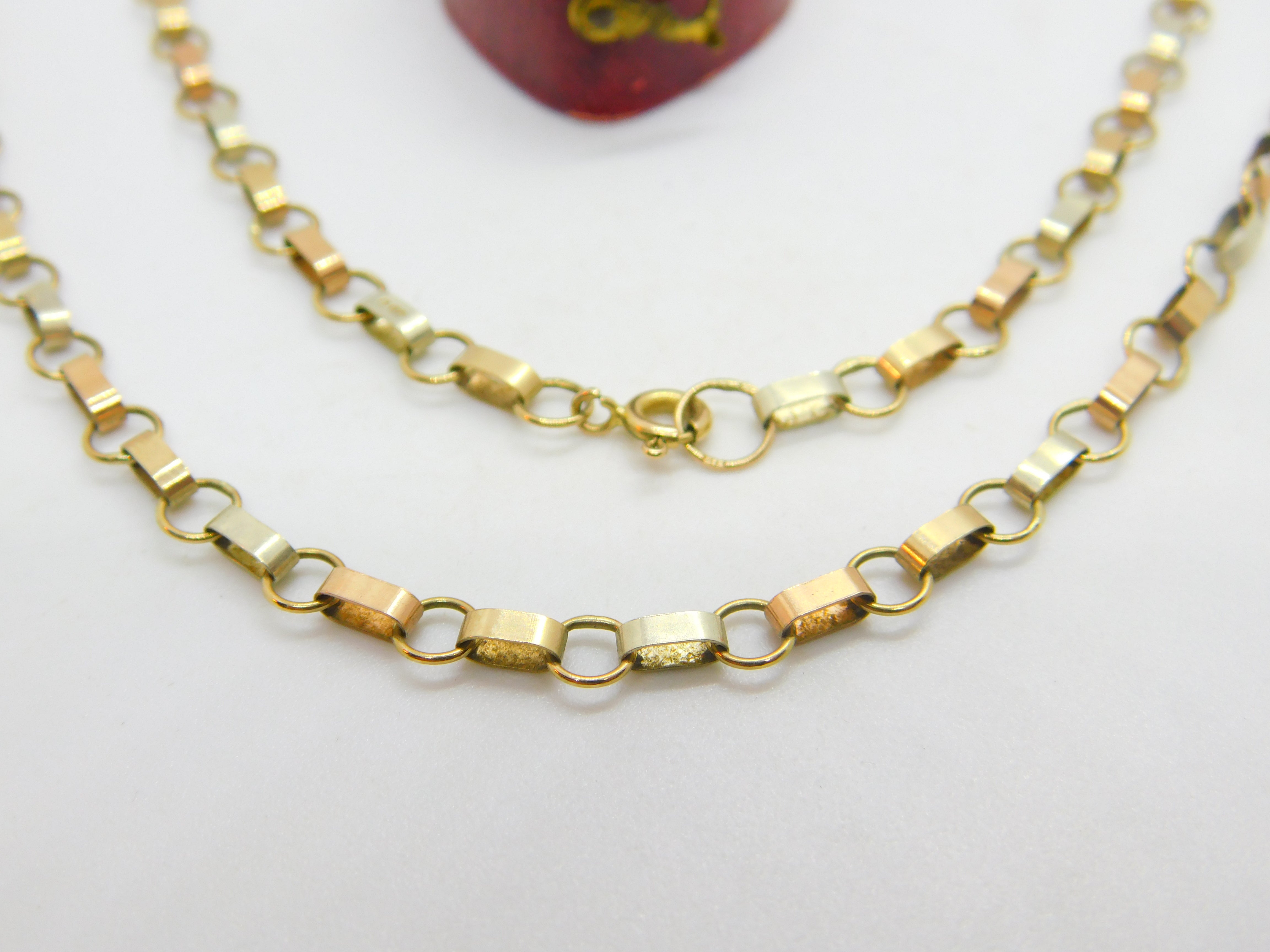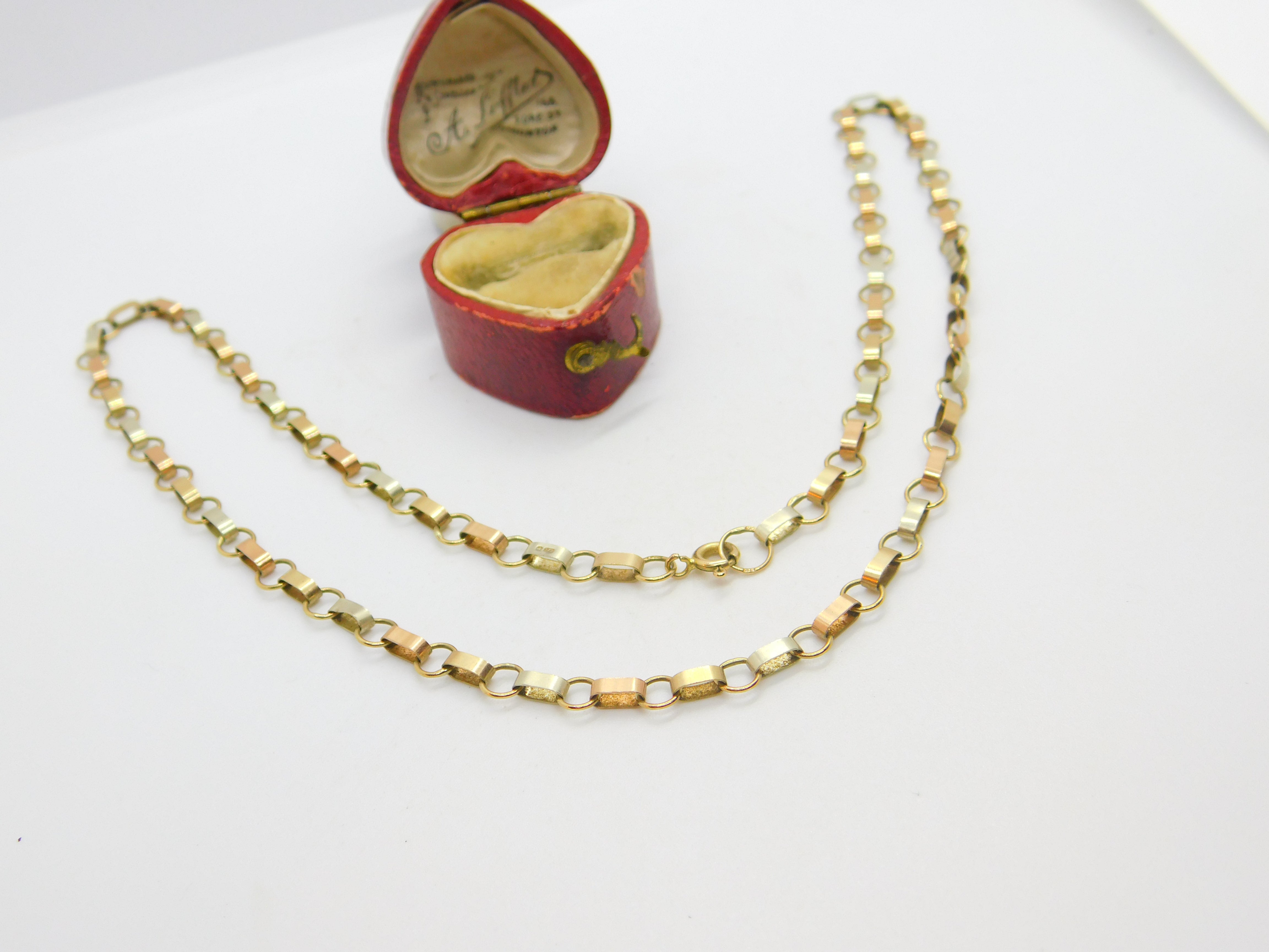 Tri-Colour 9ct Gold Cable Link Chain Necklace 18" Length Vintage 1984 London