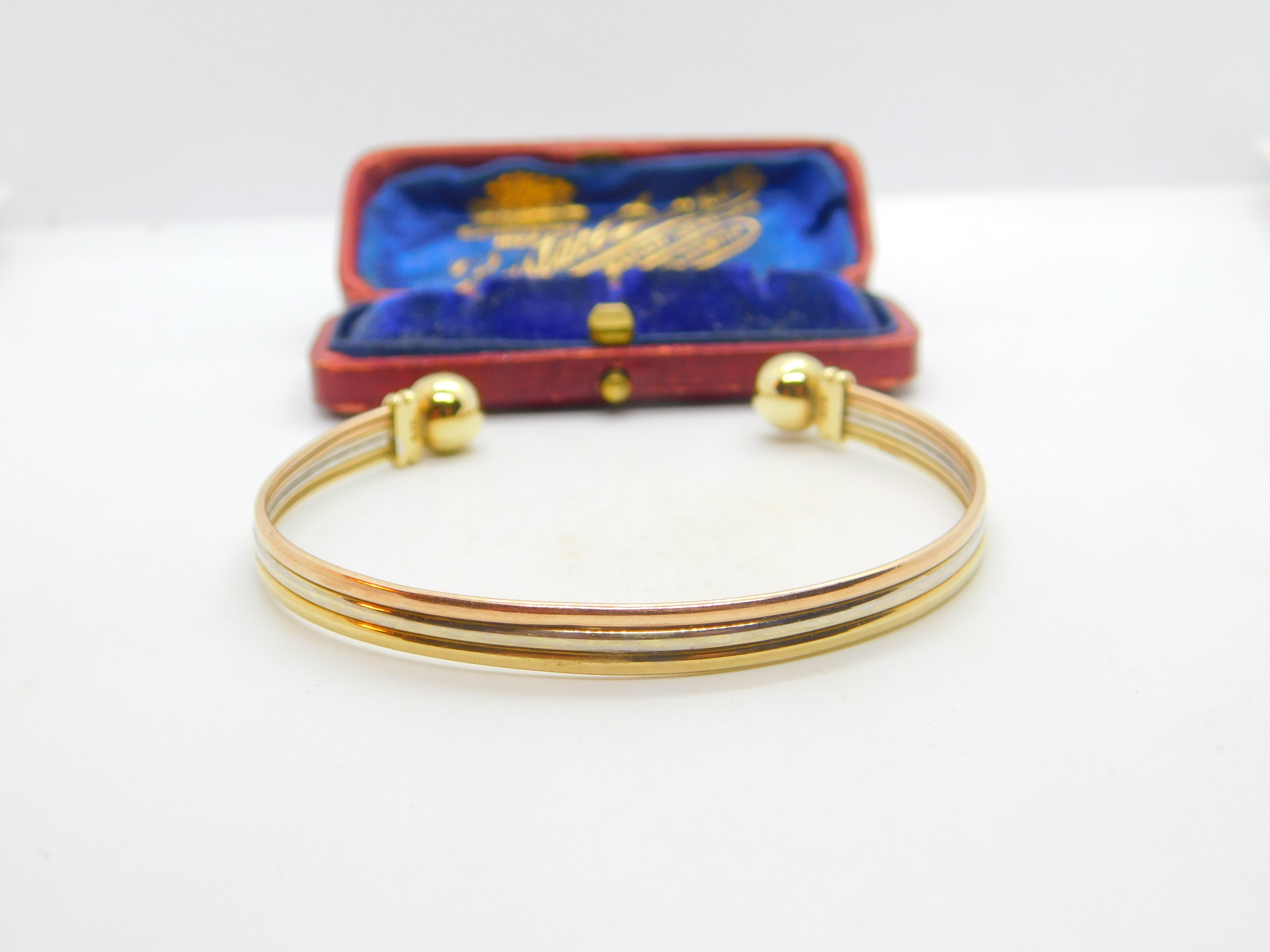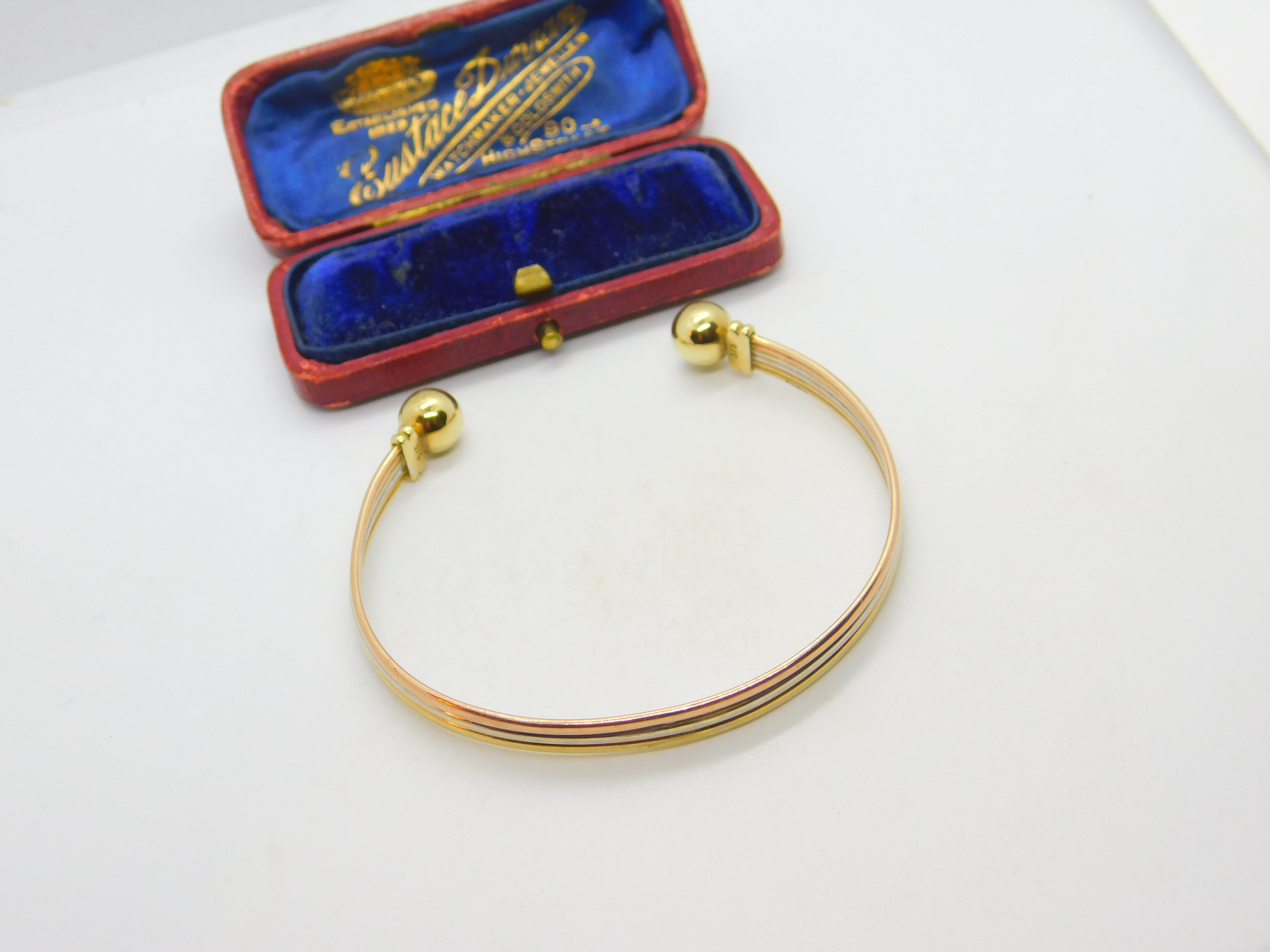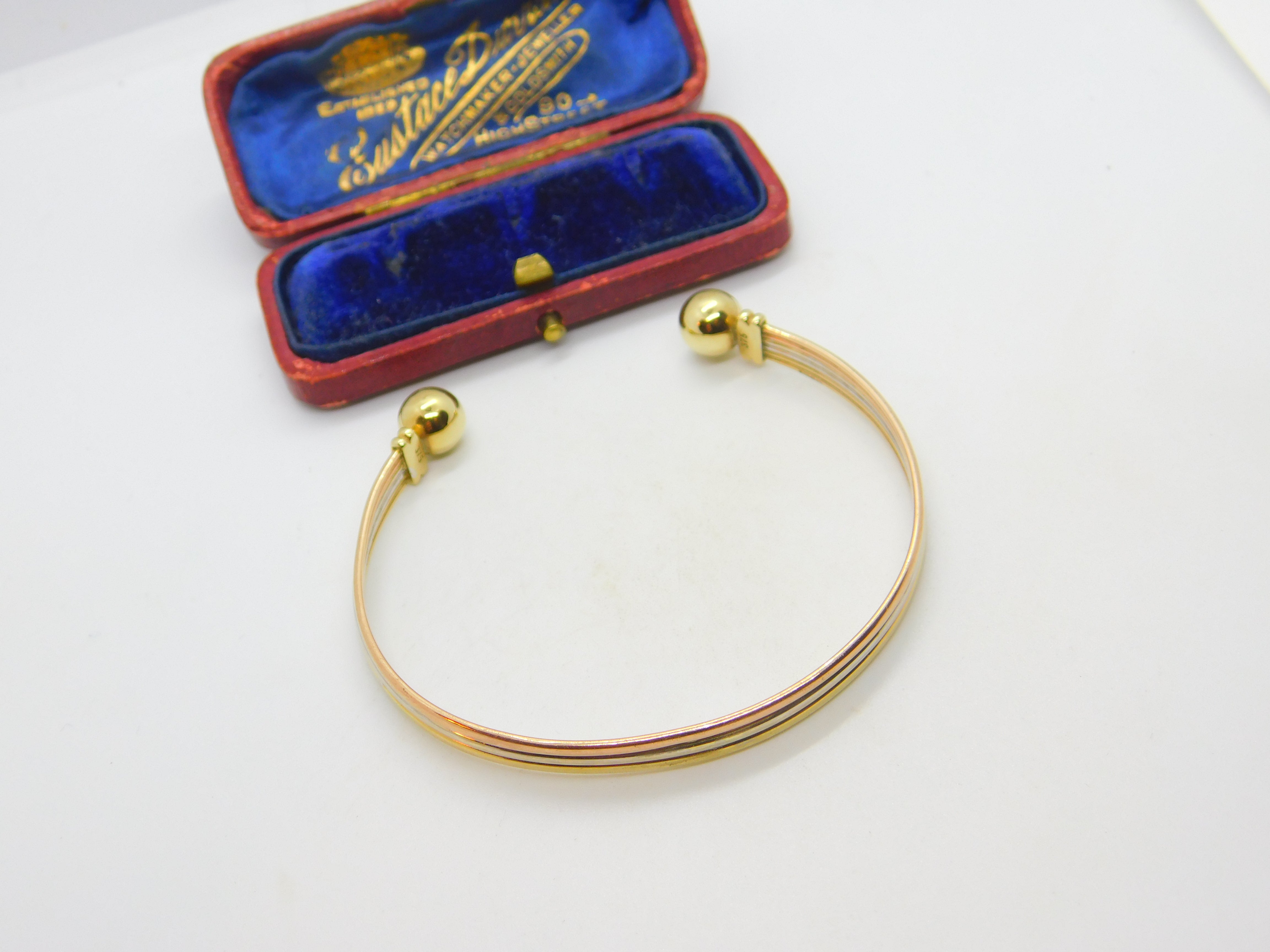 Tri-Colour 9ct Yellow, Rose, White Gold Bangle Bracelet Vintage c1980