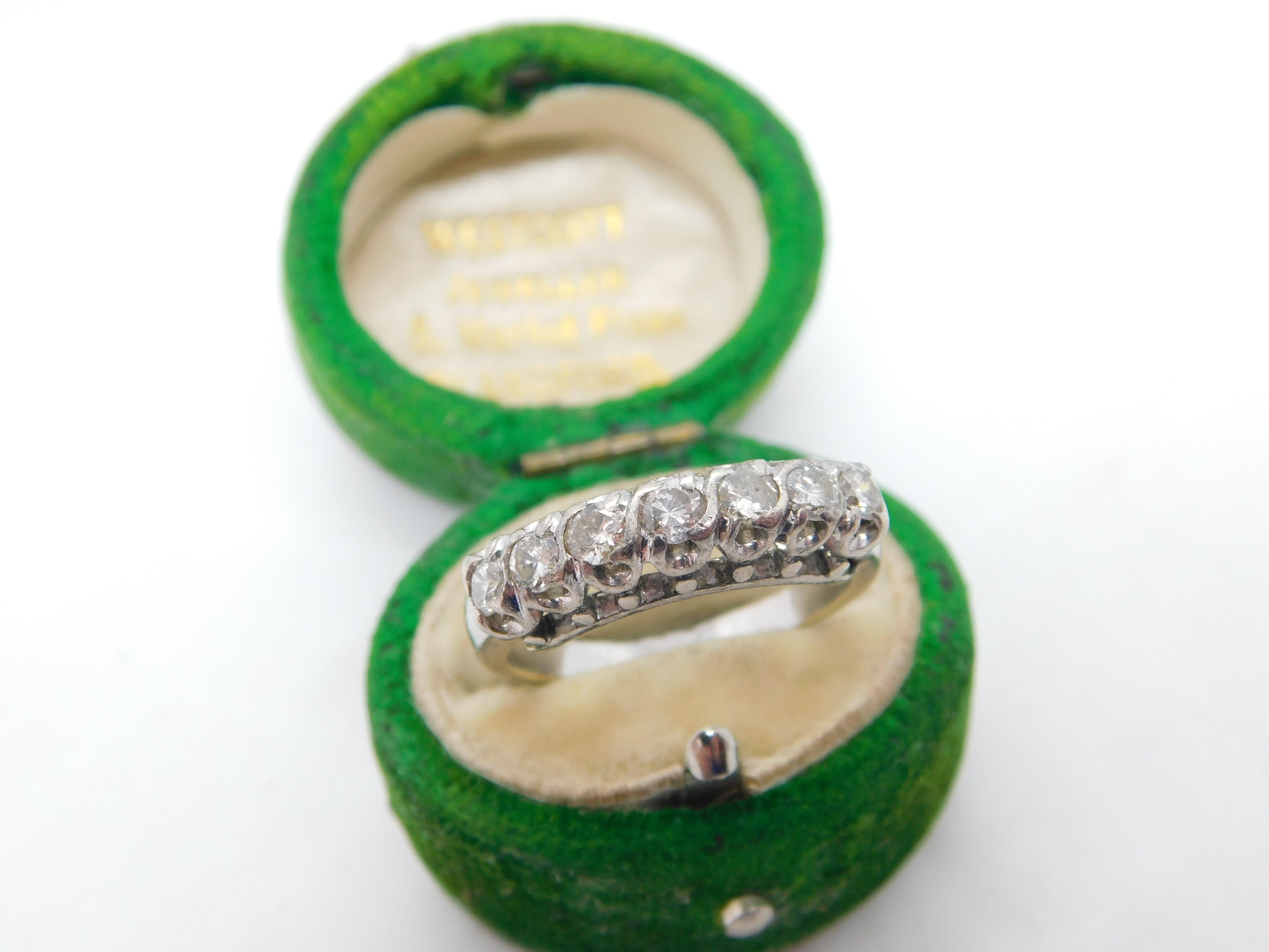 Victorian 14ct White Gold & 0.35ct Diamond Seven Stone Ring Antique c1890