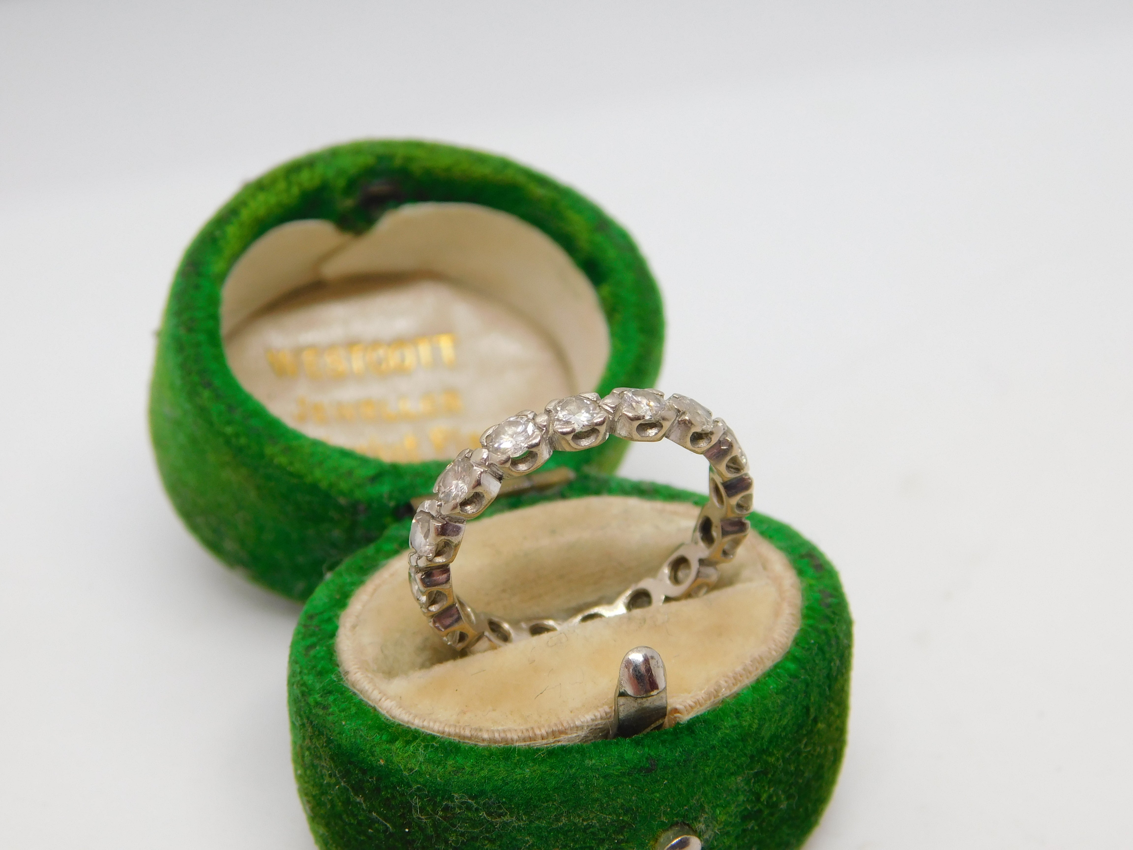 Victorian 14ct White Gold & 1.6ct Old Cut Diamond Eternity Ring Antique c1890