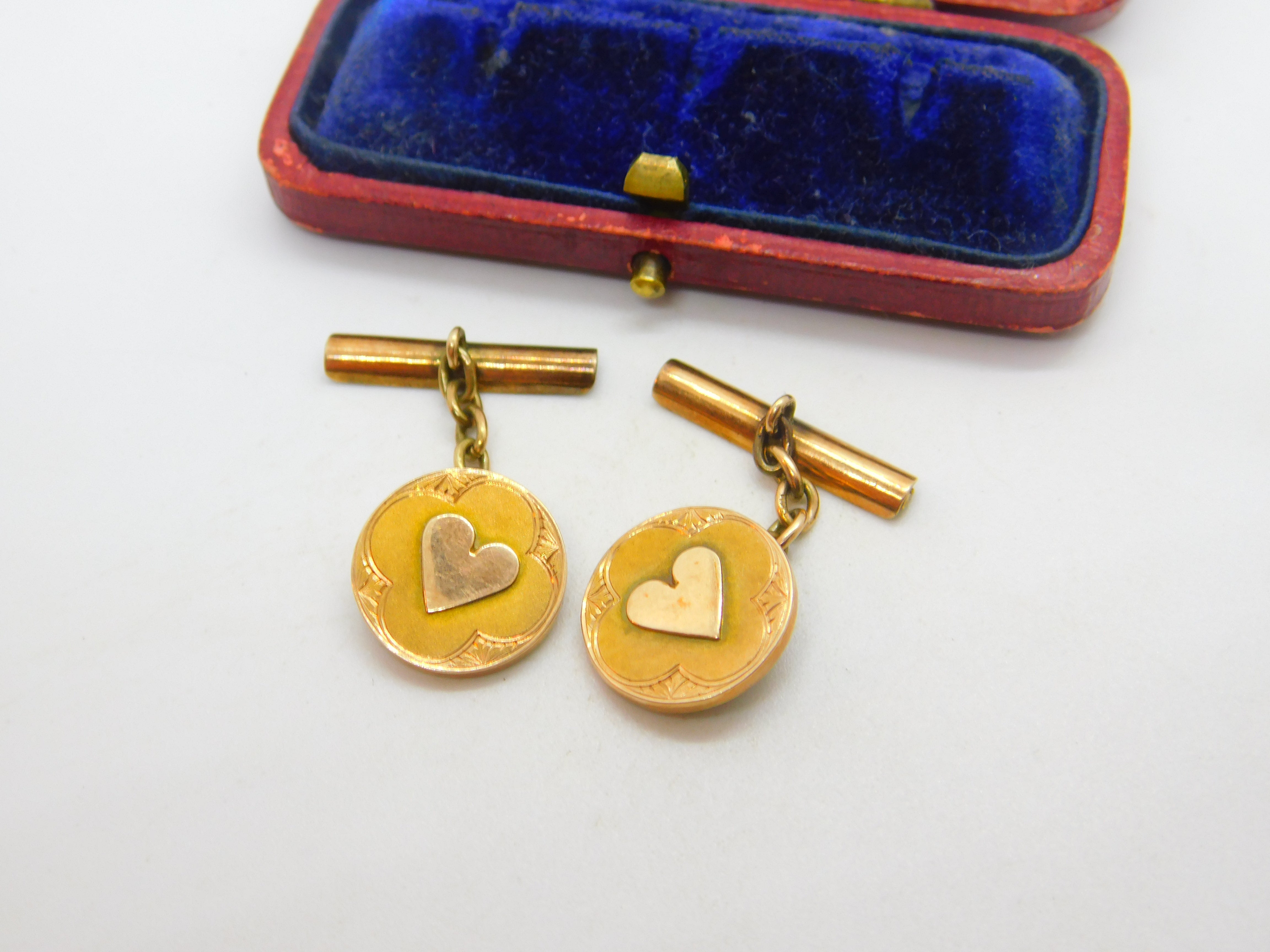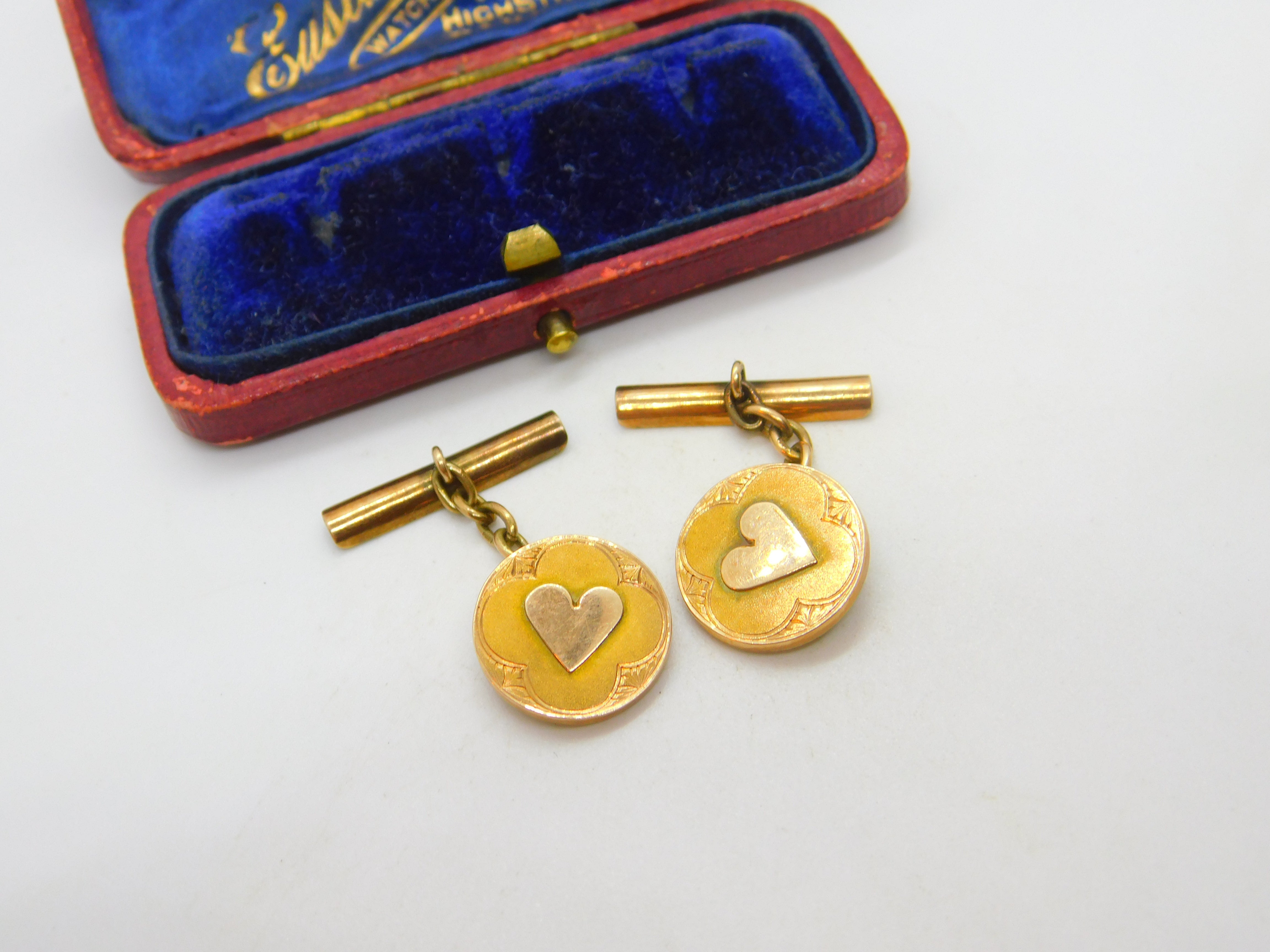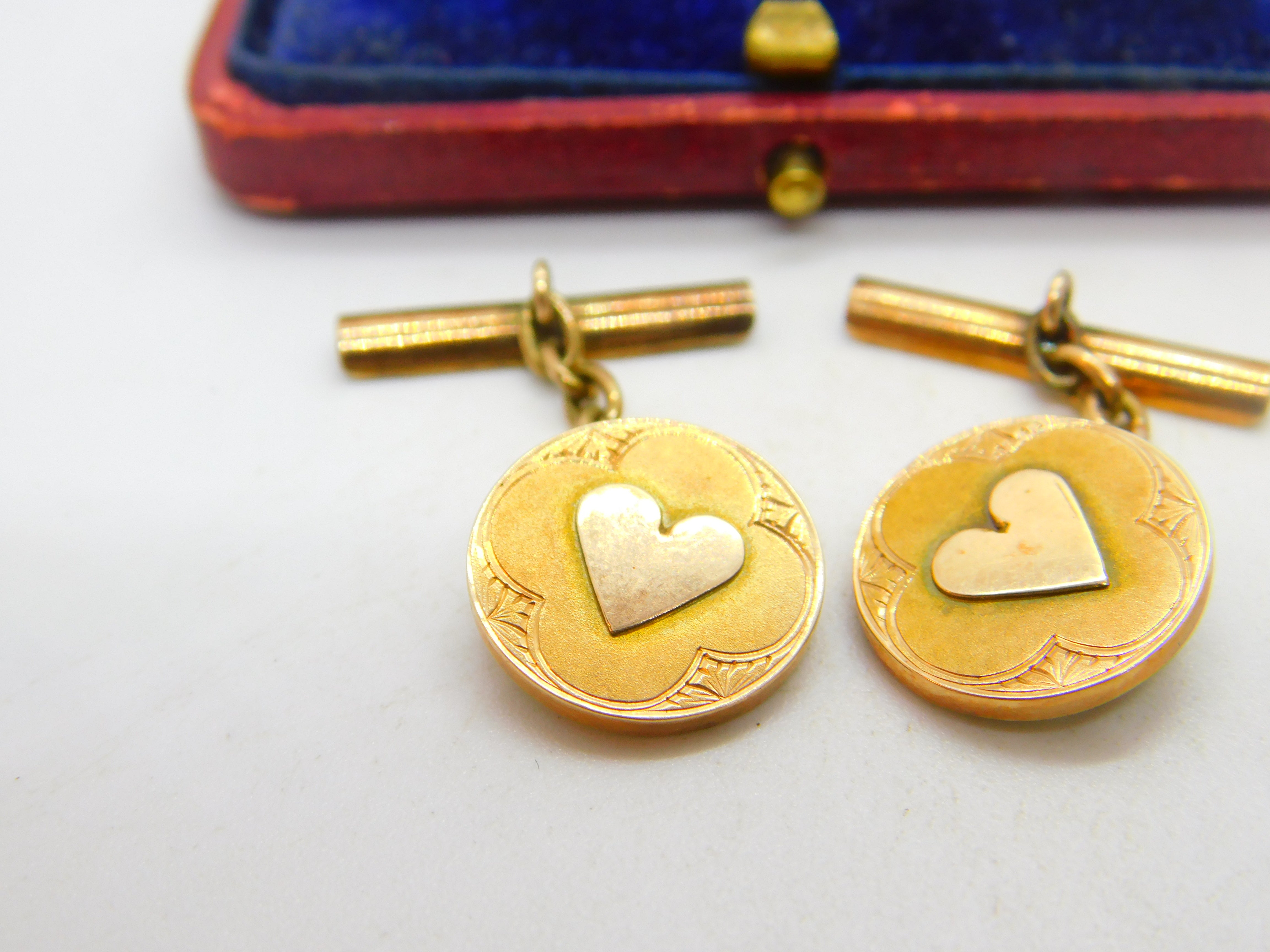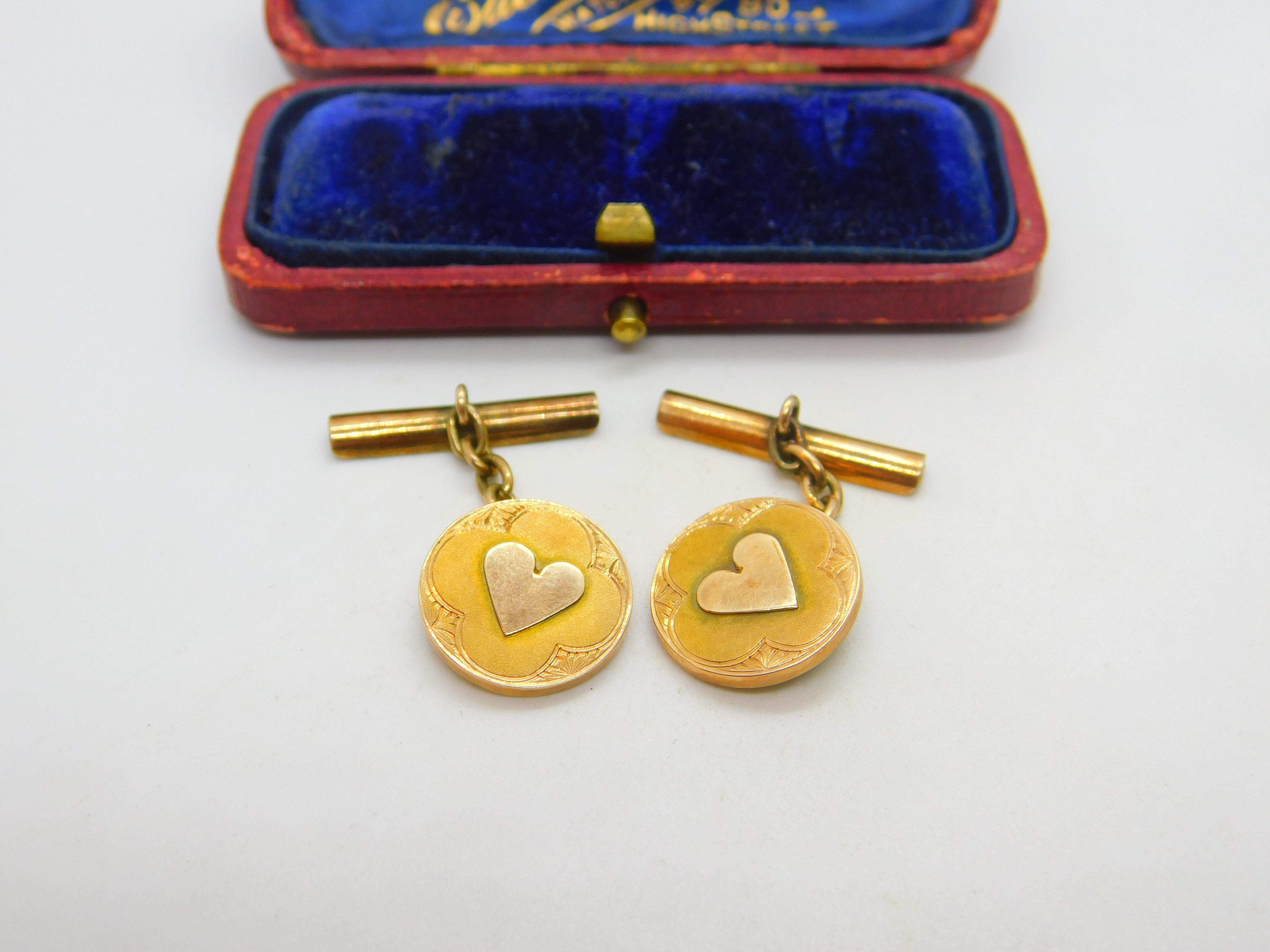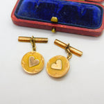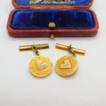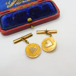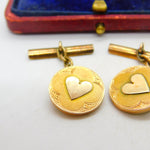Victorian 14ct Yellow Gold Heart Pattern Circular Cufflinks c1900 Antique