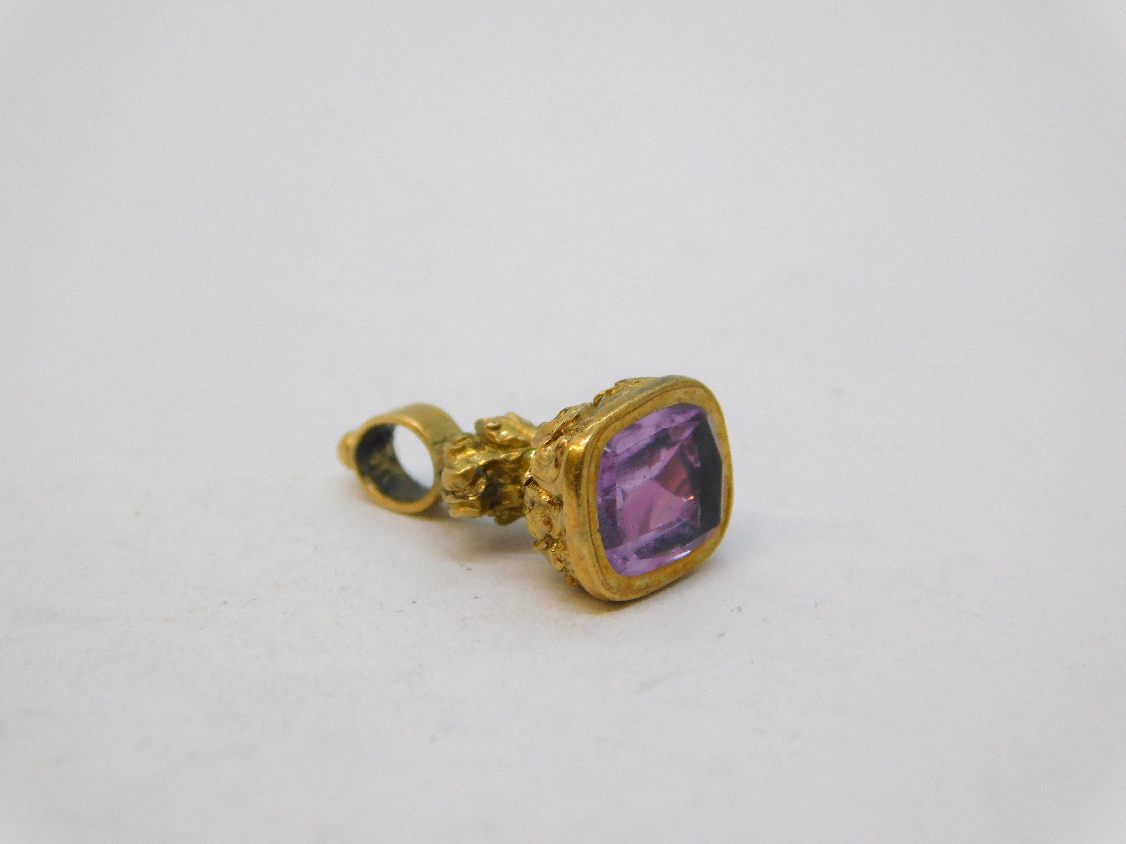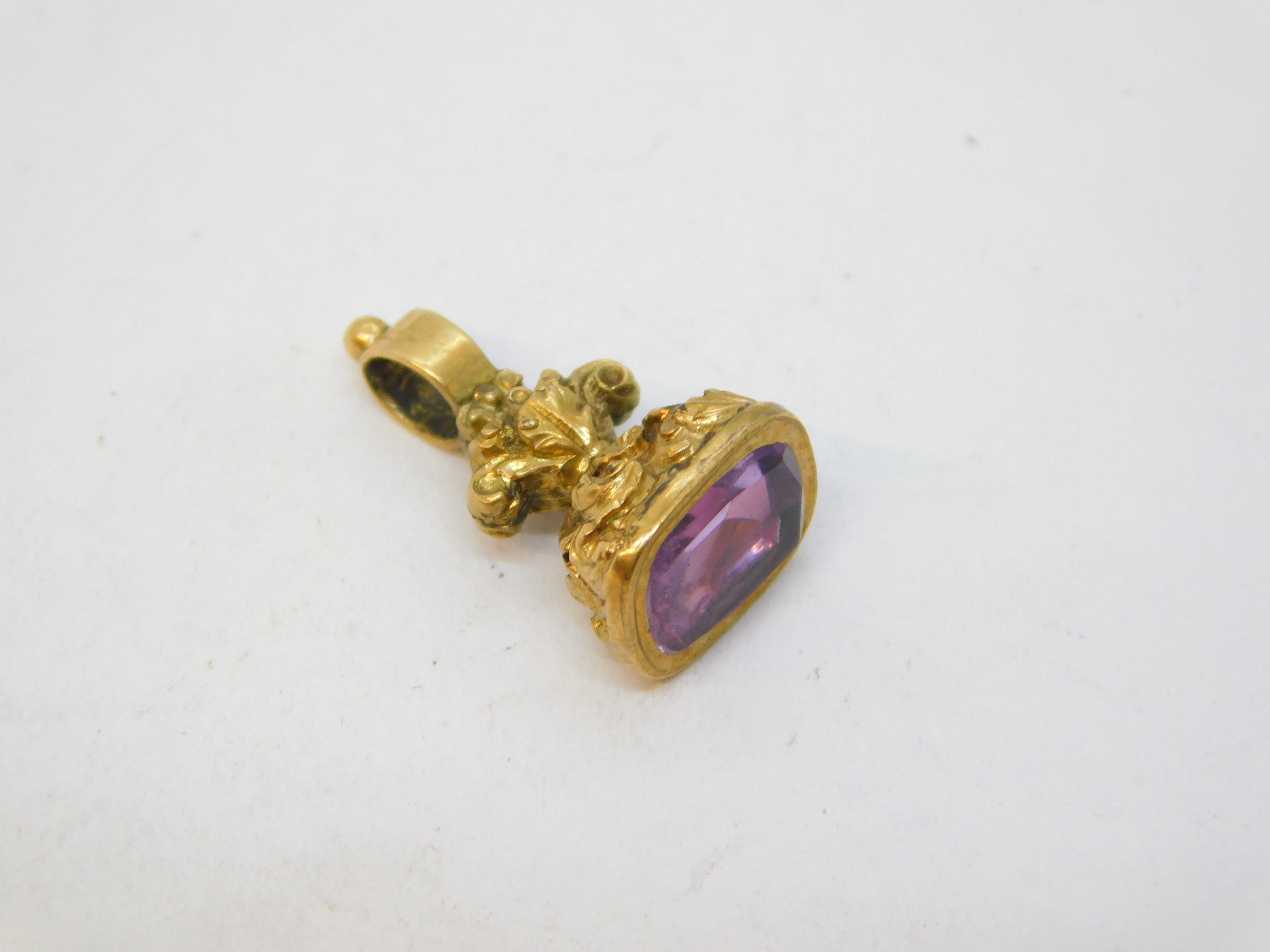 Victorian 14ct Yellow Gold Small Amethyst Set Fob Seal Pendant Antique c1860