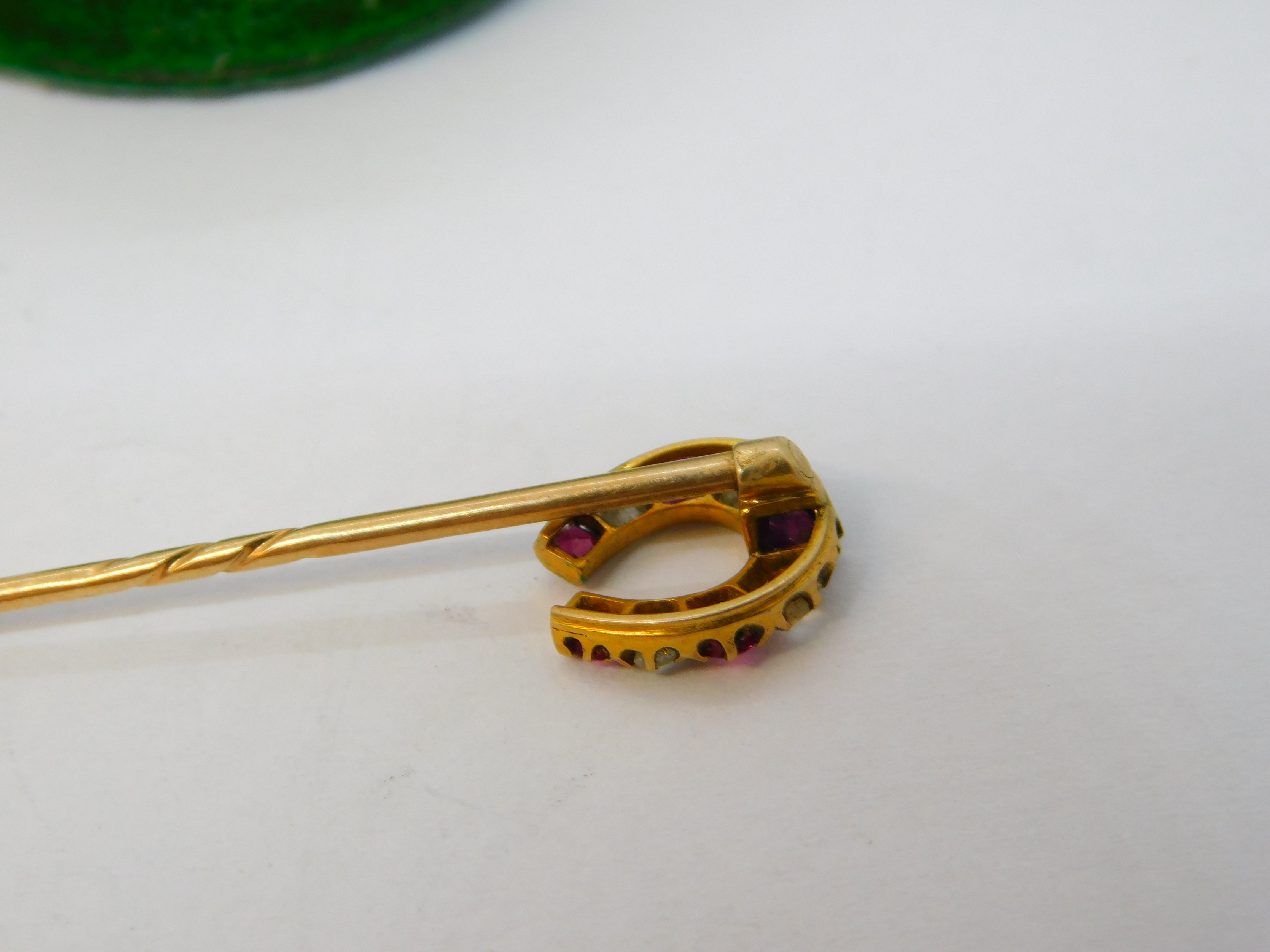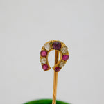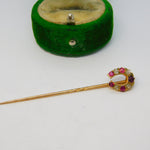 Victorian 15ct Gold, Ruby & Diamond Horseshoe Stick Pin Antique c1890