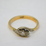 Victorian 15ct Gold & Three-Stone Diamond Crossover Ring Antique c1880s