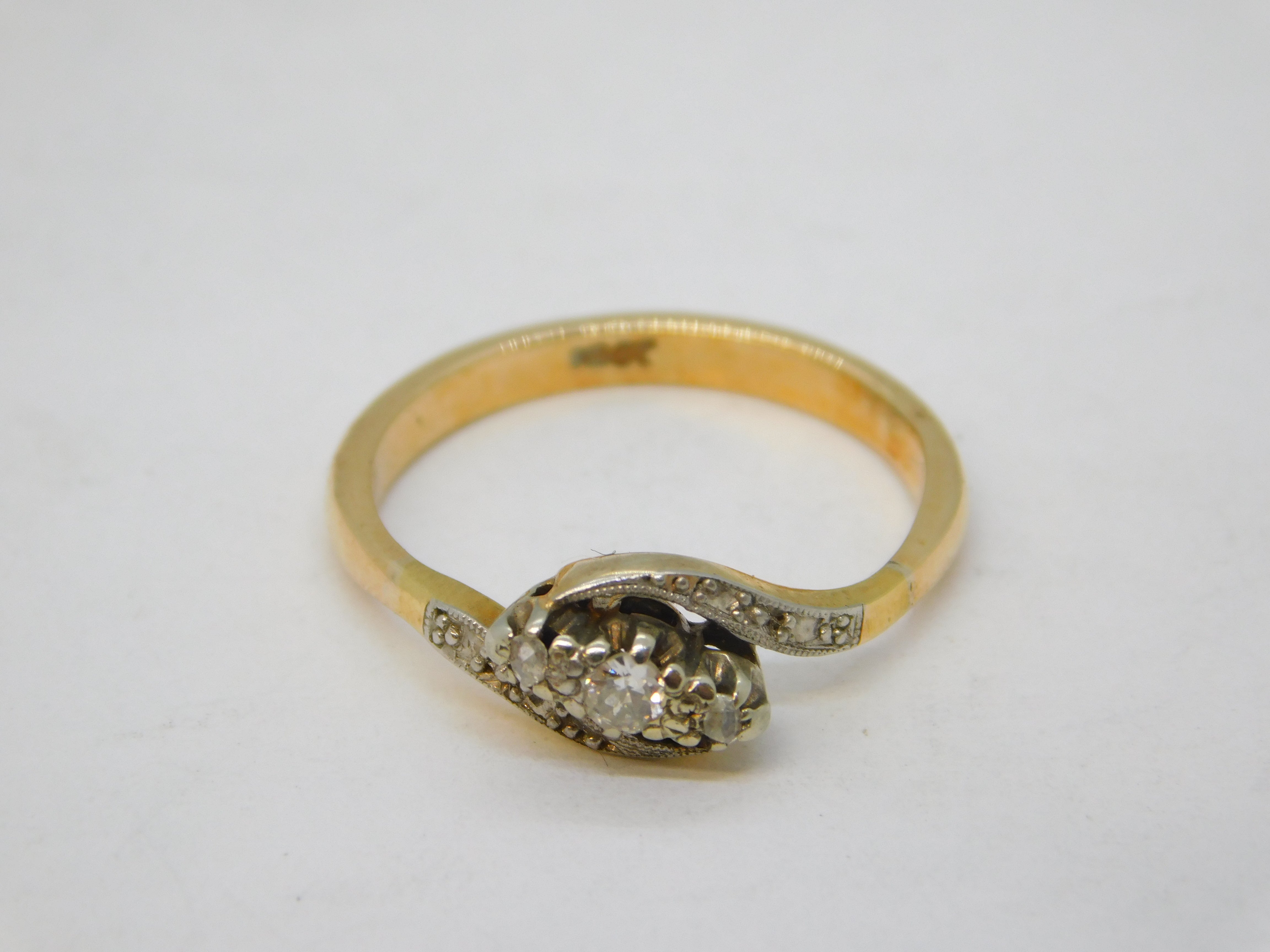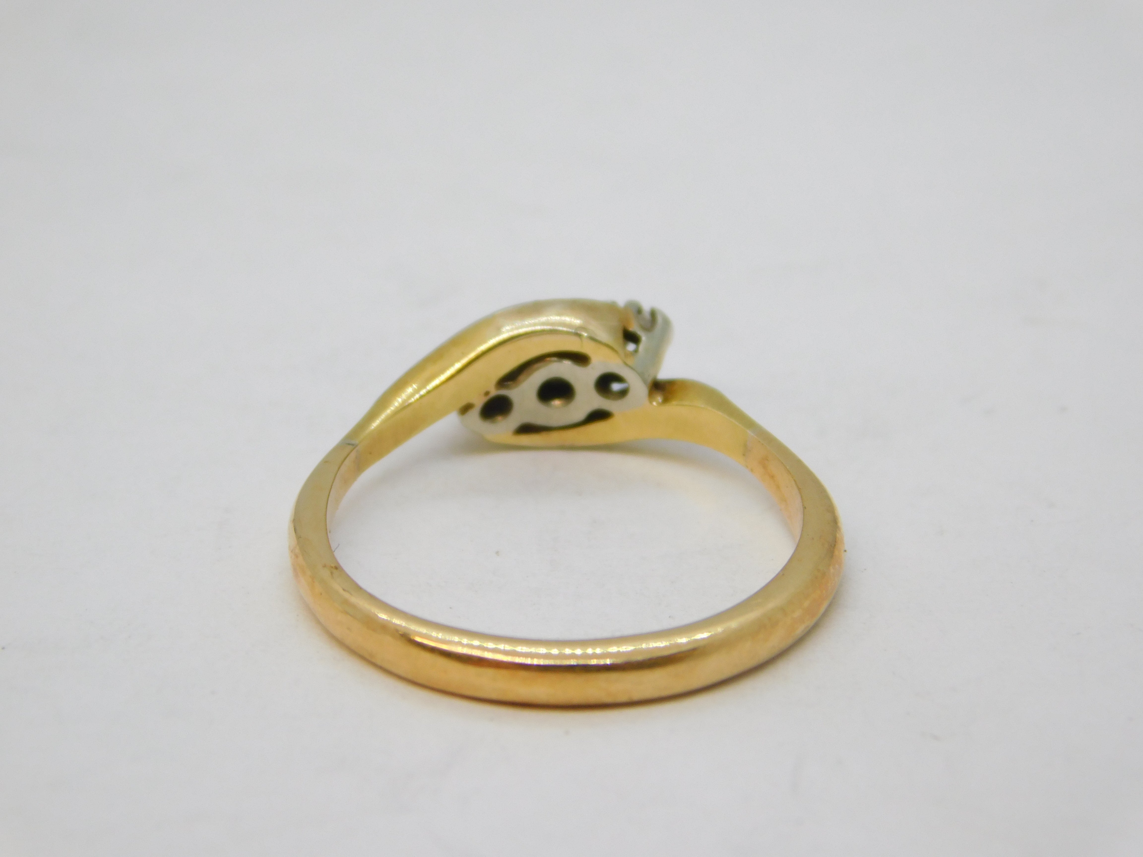 Details: A fantastic and wonderfully designed antique Victorian 15ct yellow gold crossover ring set with three graduated brilliant cut diamonds hallmarked '15ct' to the interior and XRF tested c1880s. This is a wonderful item that would make a perfect gift or addition to any collection. We are more than happy to provide XRF reports for items upon request.