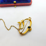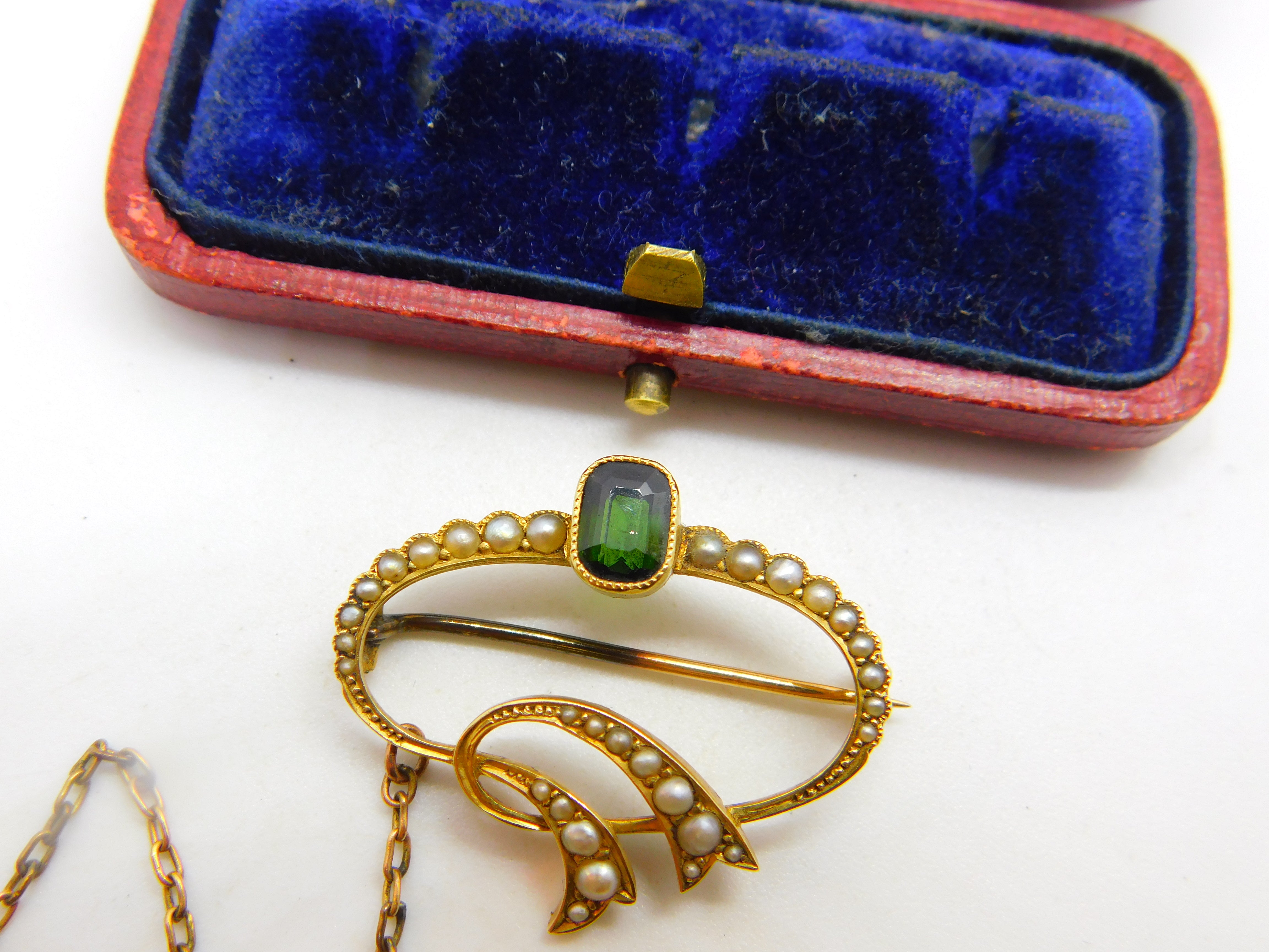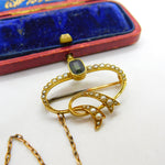 Victorian 15ct Gold, Tourmaline & Seed Pearl Swirl Sweetheart Brooch c1860