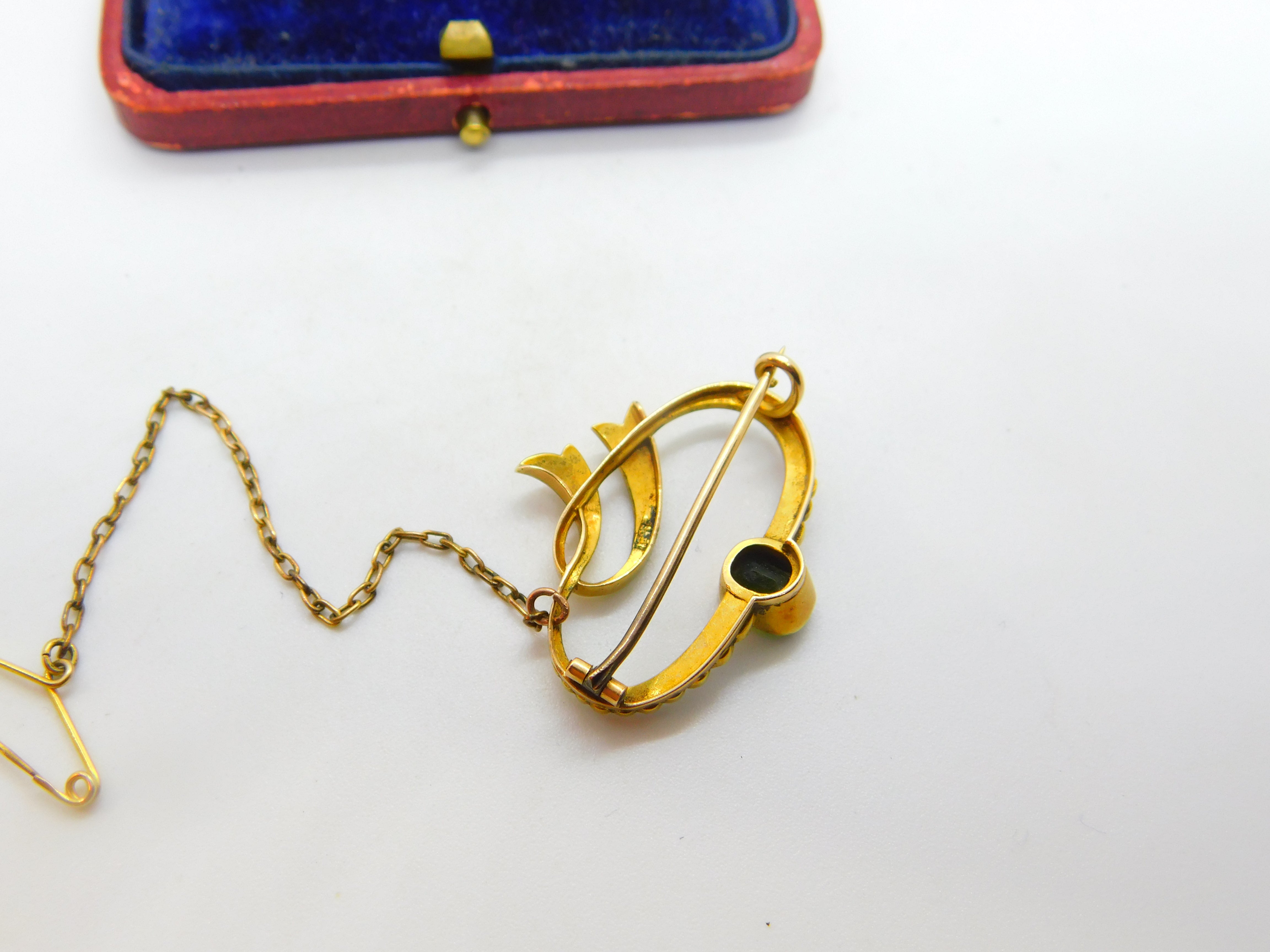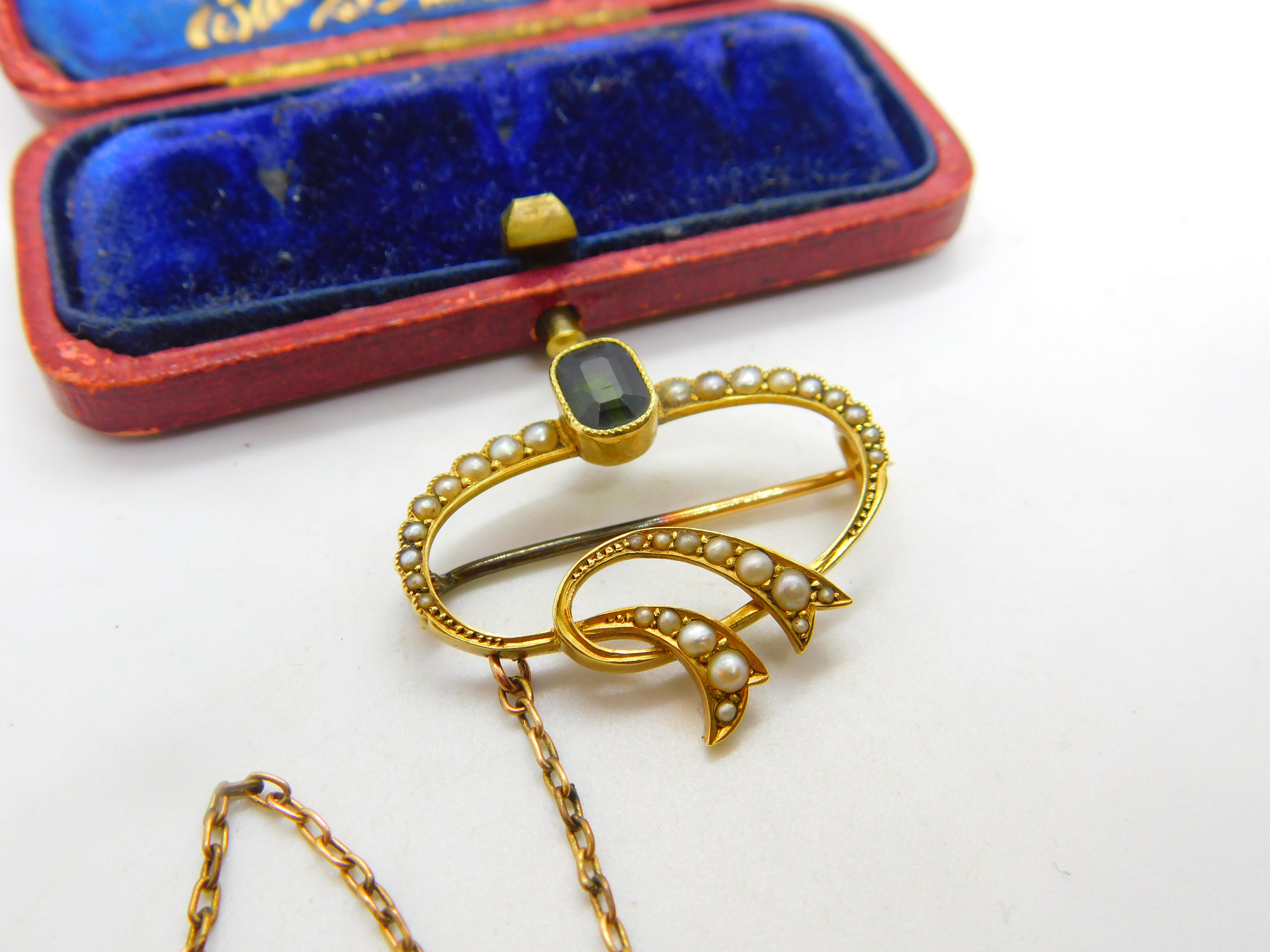 Details: A fantastic and wonderfully designed antique Victorian 15ct yellow gold swirl brooch set with seed pearls & tourmaline hallmarked 15ct to the reverse. This is a wonderful item that would make a perfect gift or addition to any collection. The BOX pictured is for PRESENTATION ONLY and is NOT included in the listings but used to frame the pictures unless specifically stated otherwise.