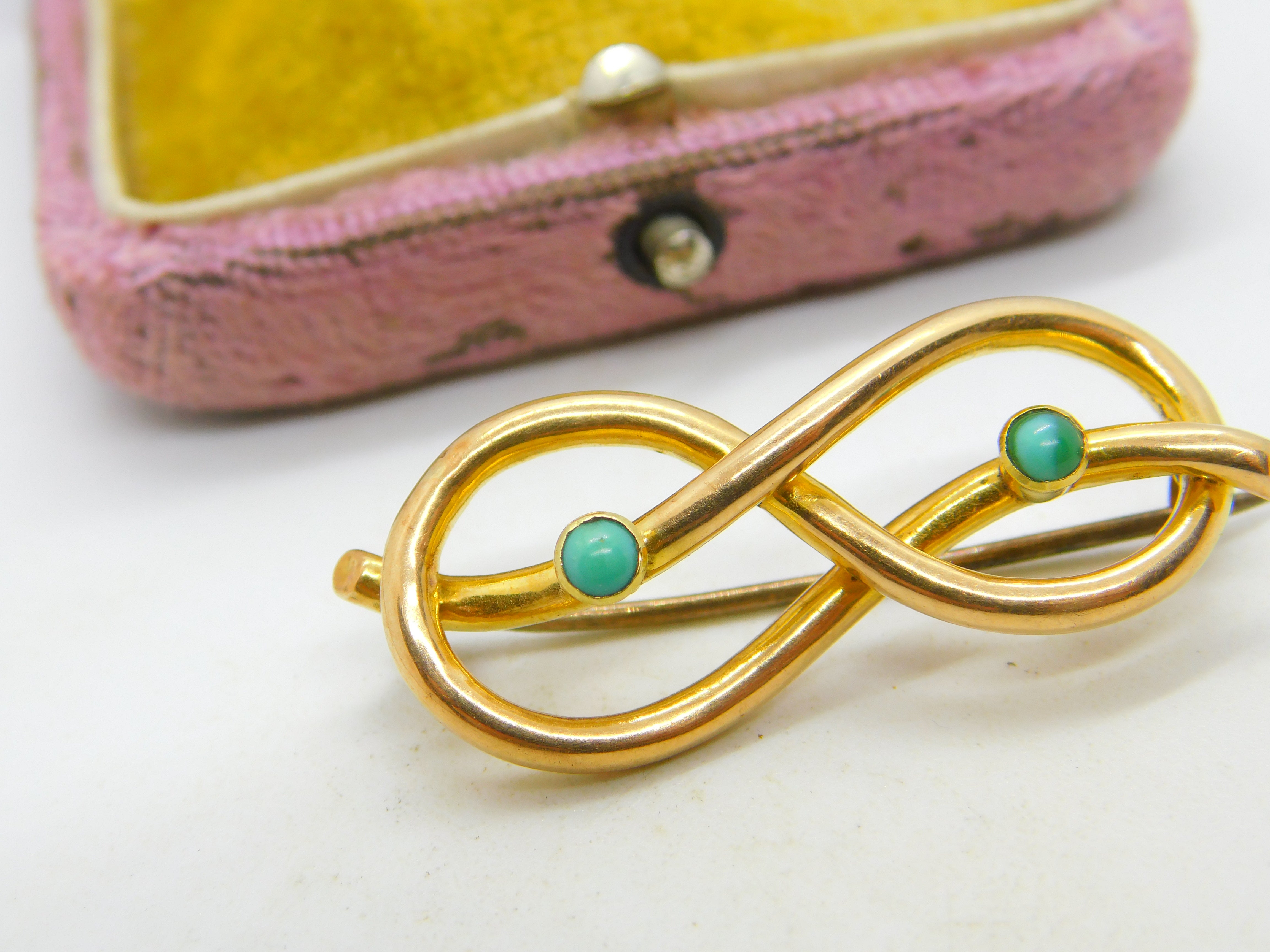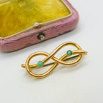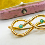 Victorian 15ct Gold & Turquoise Lovers Knot Sweetheart Brooch Antique c1880