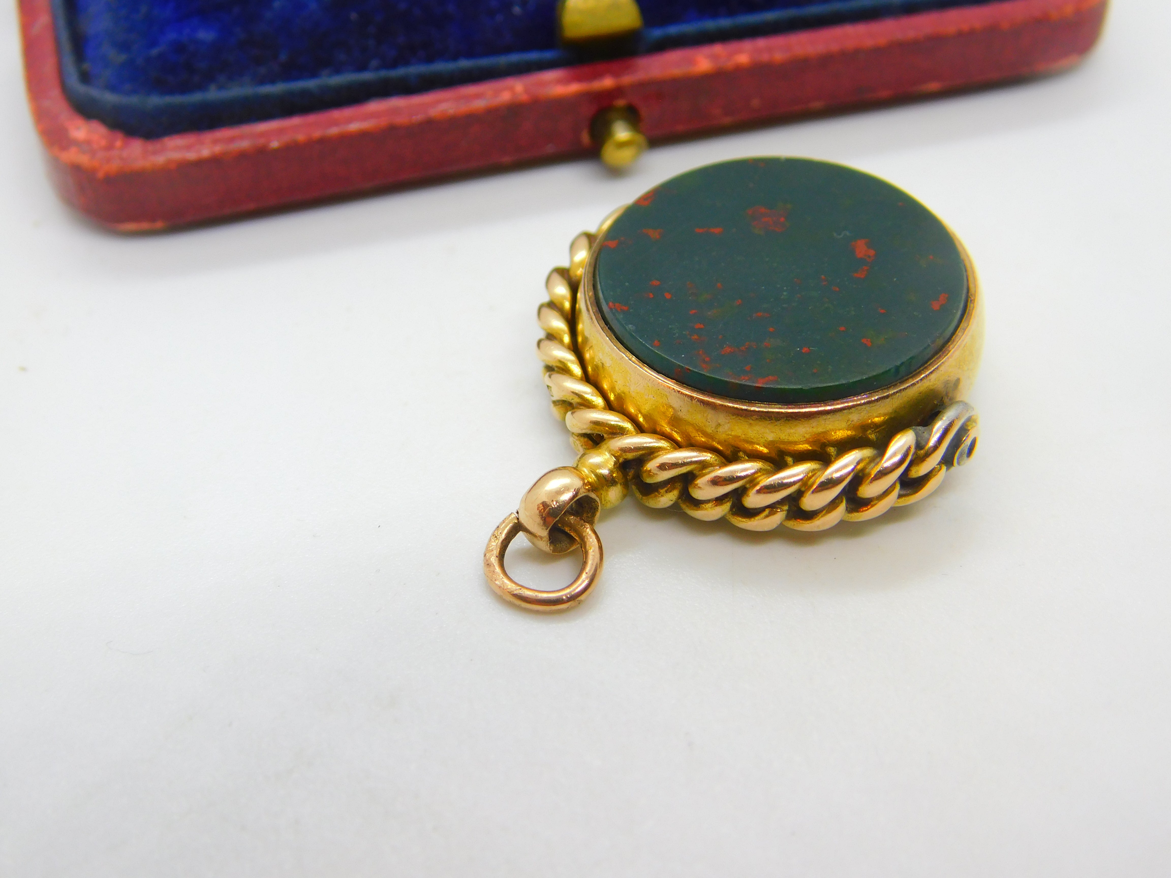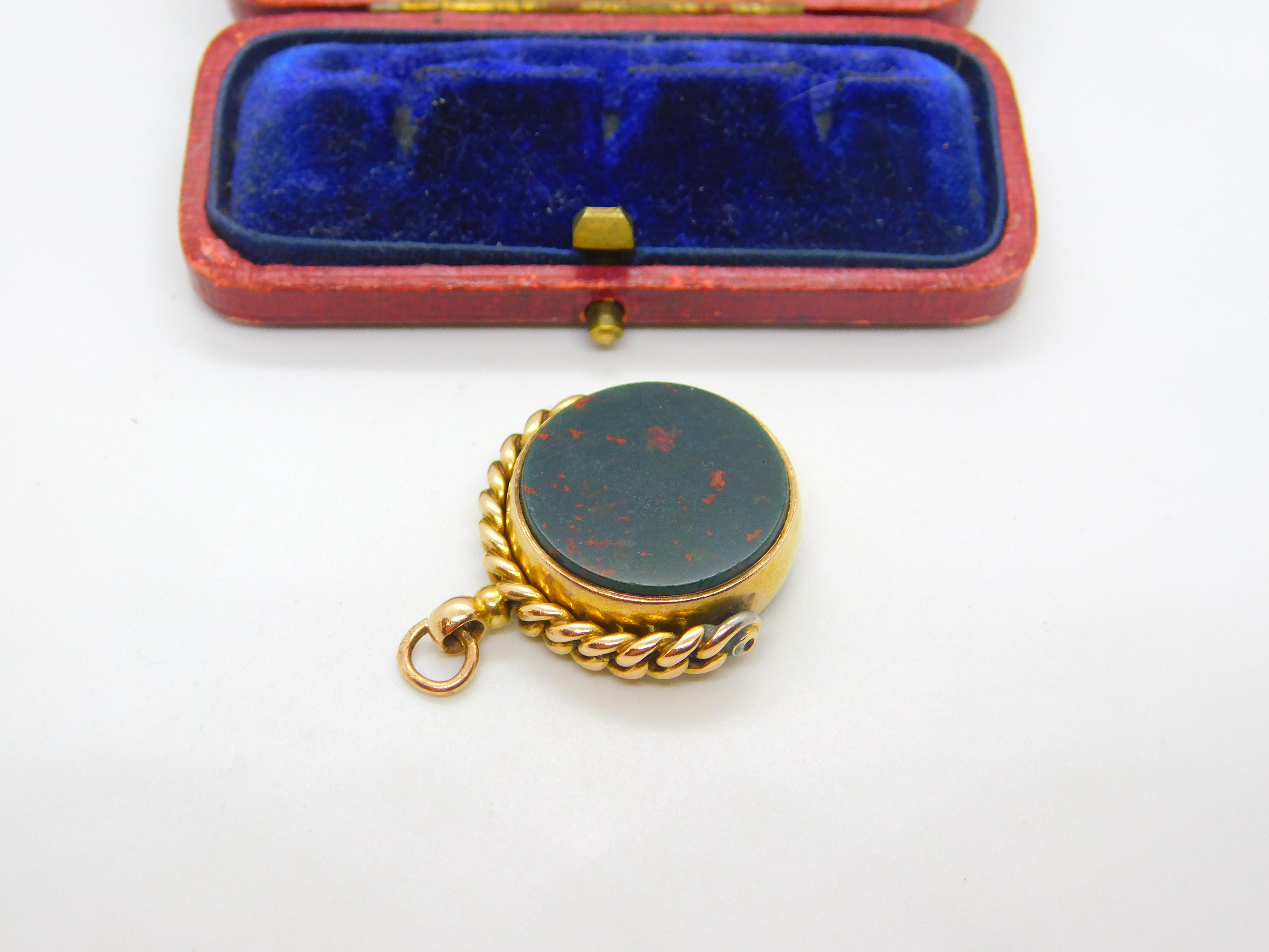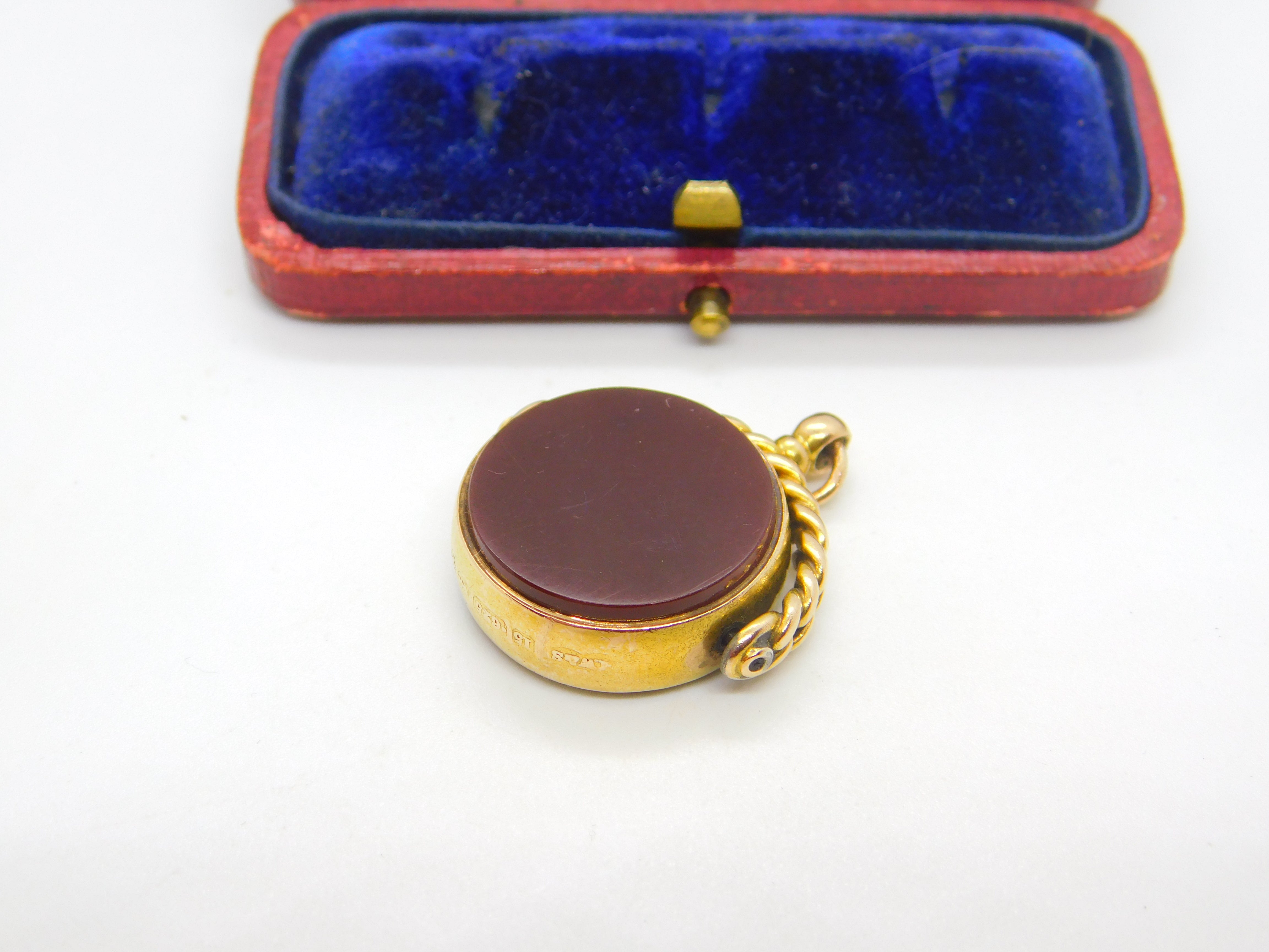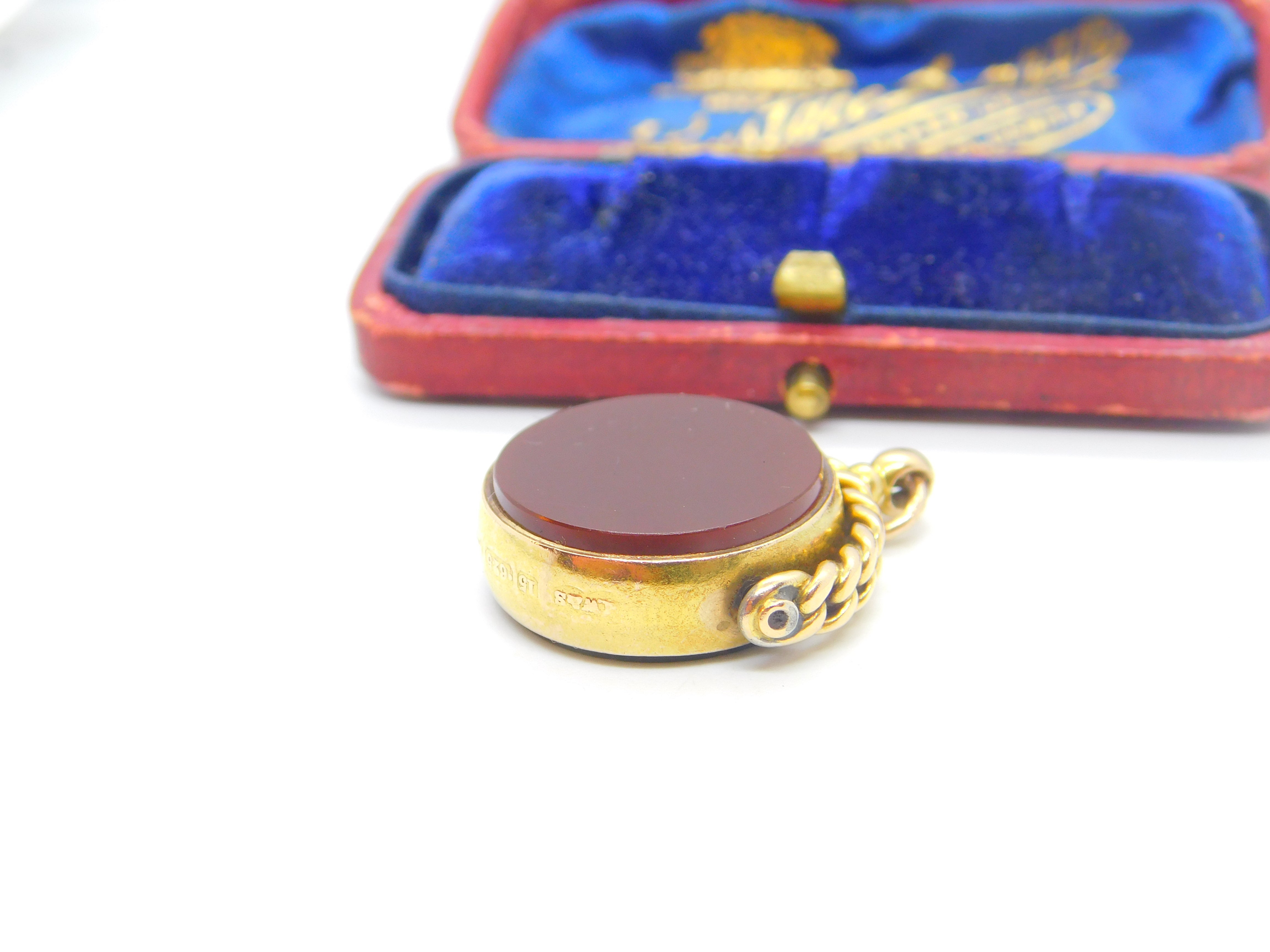 Victorian 15ct Yellow Gold, Bloodstone & Carnelian Spinner Fob 1889 Birmingham