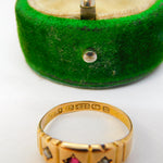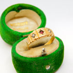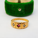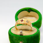 Victorian 15ct Yellow Gold, Garnet & Pearl Boat Ring Antique 1886 Birmingham