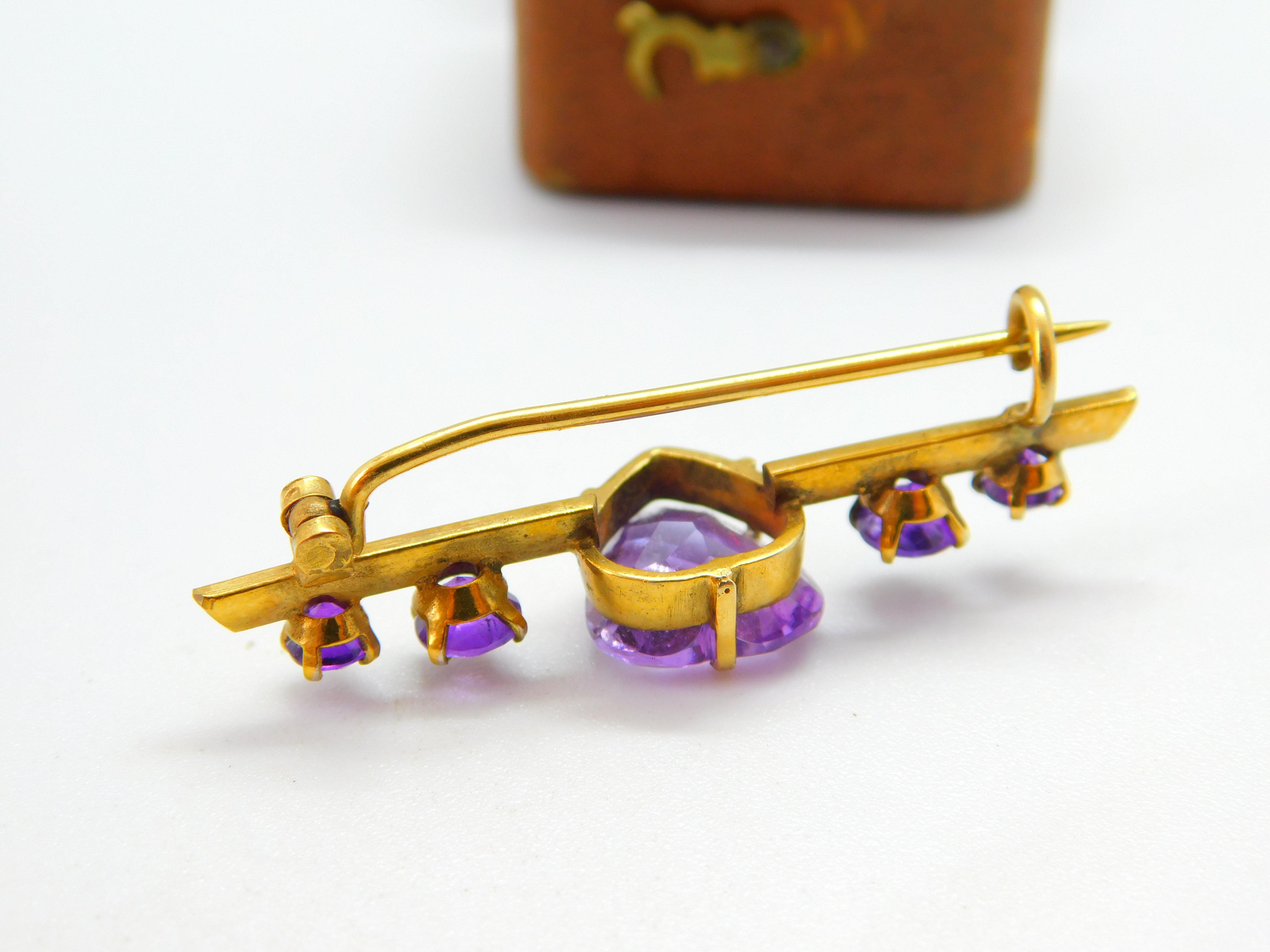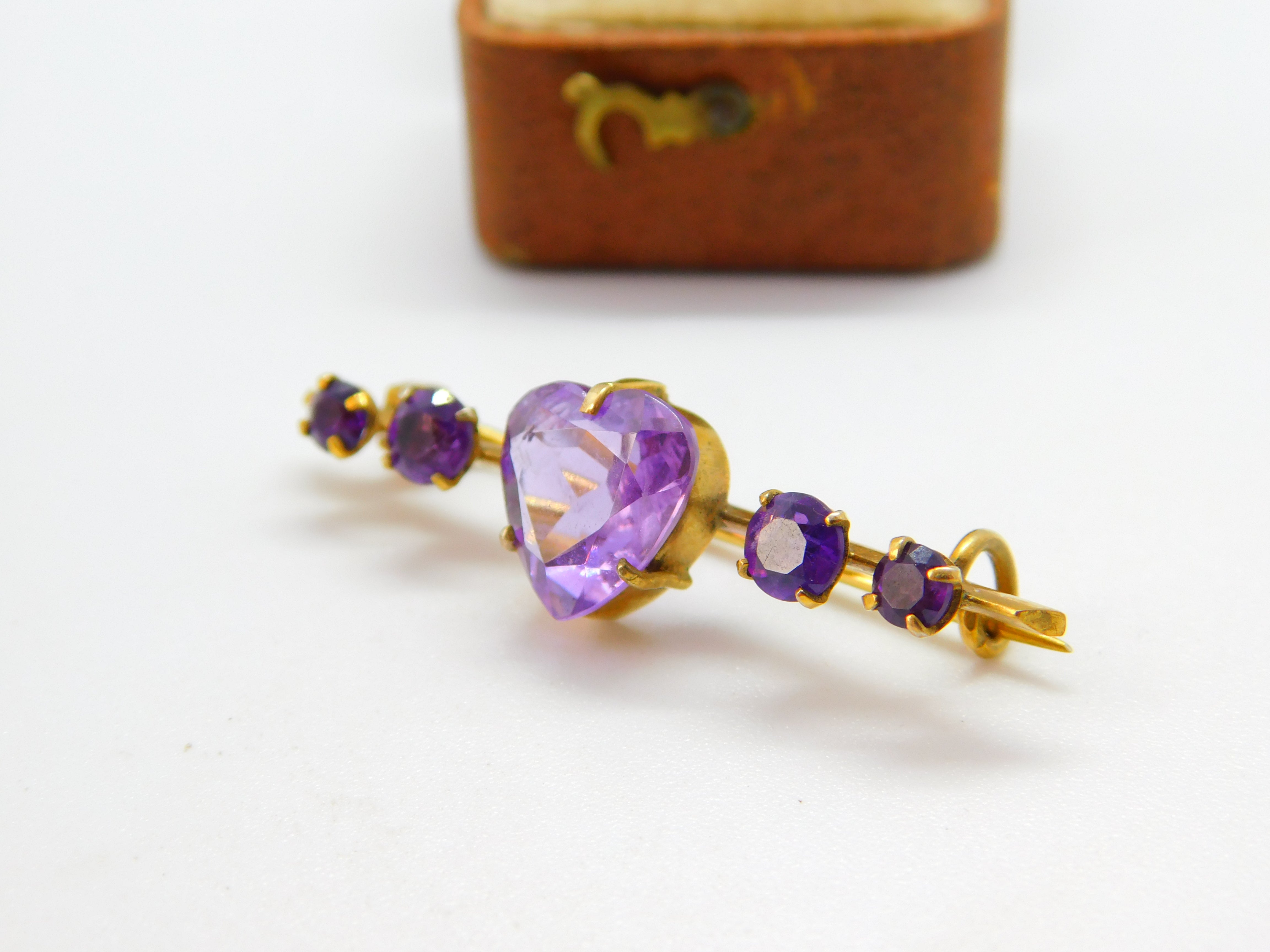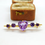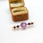 Victorian 15ct Yellow Gold Heart Cut Amethyst Sweetheart Brooch c1900 Antique