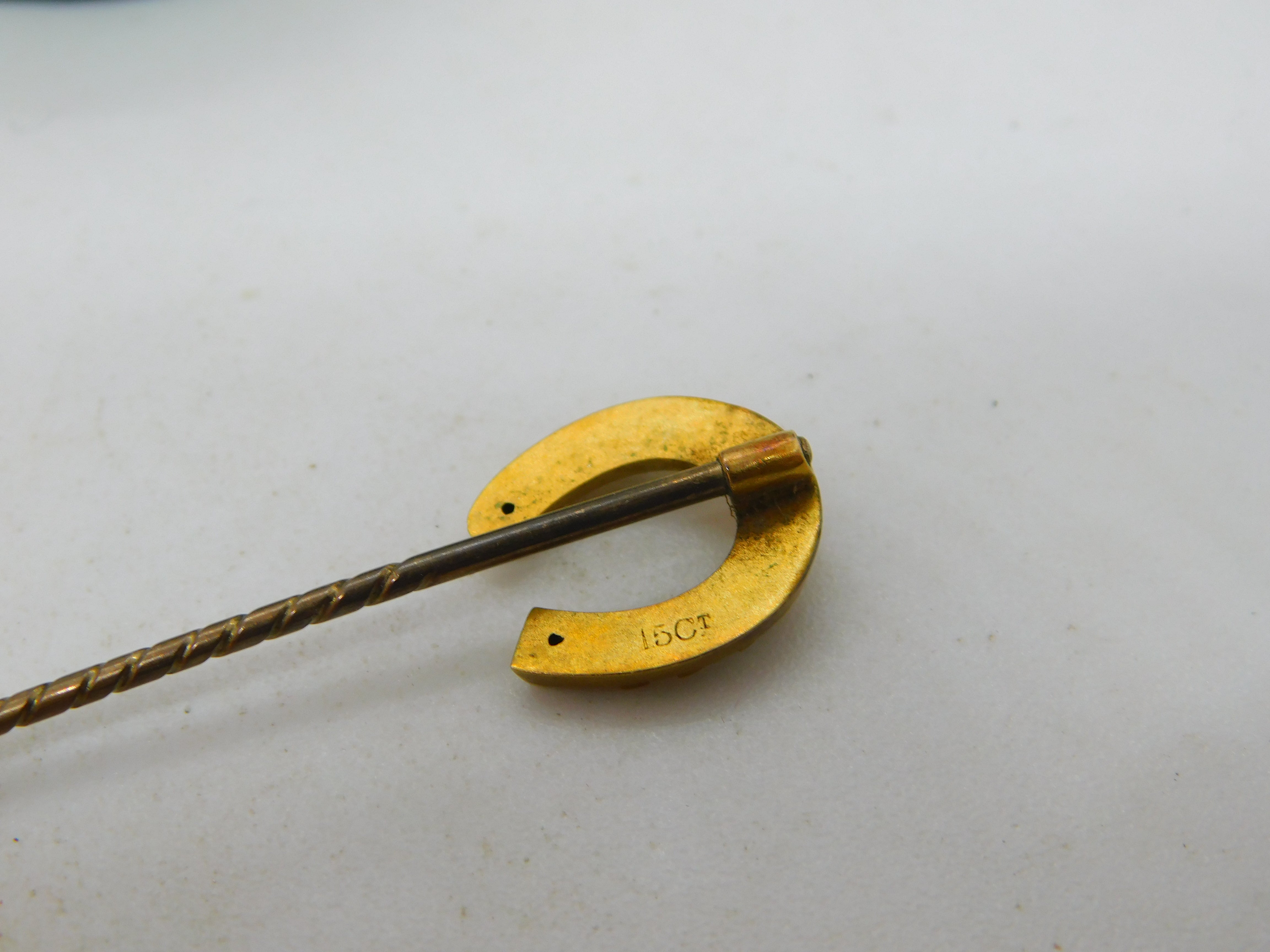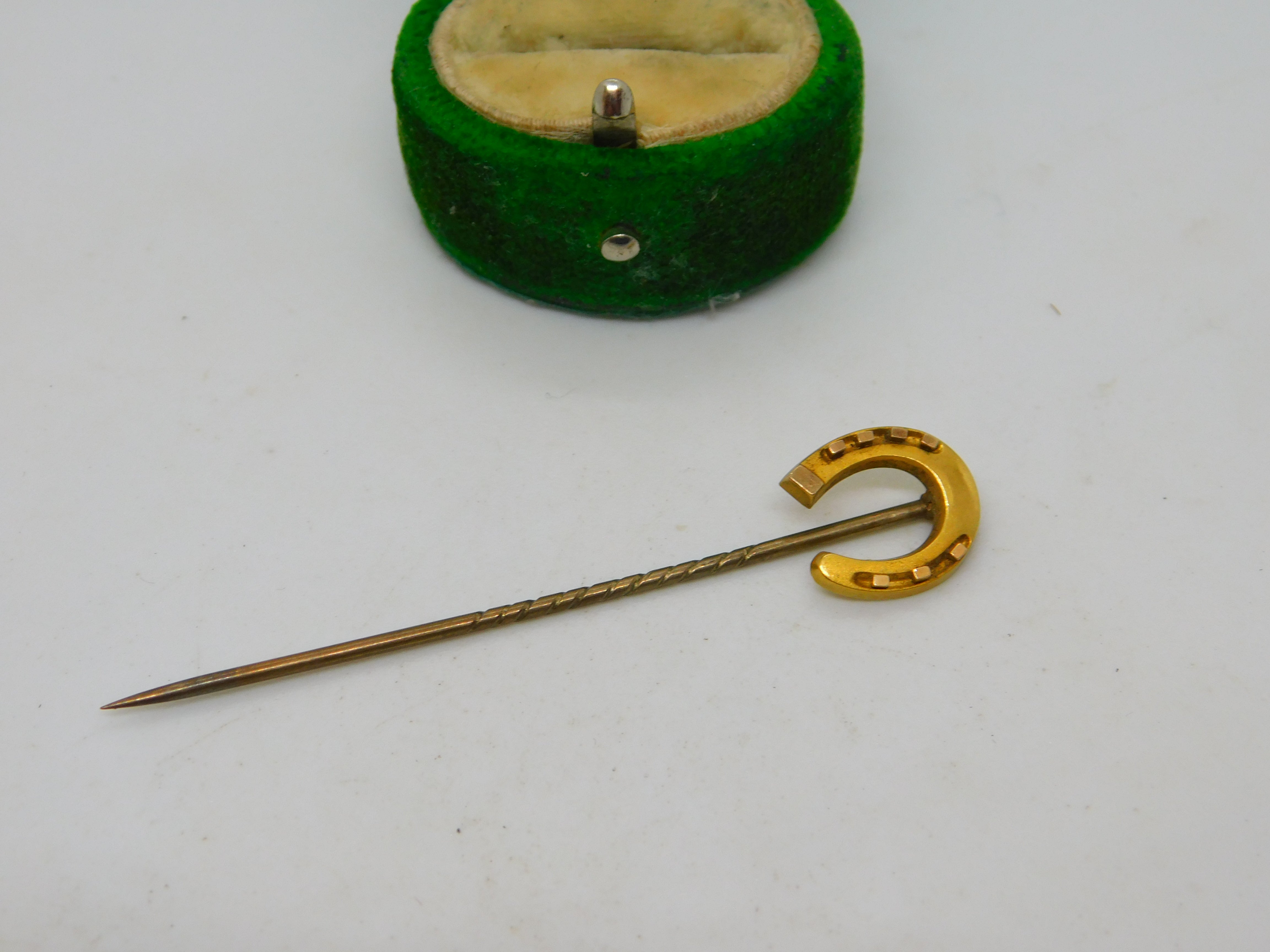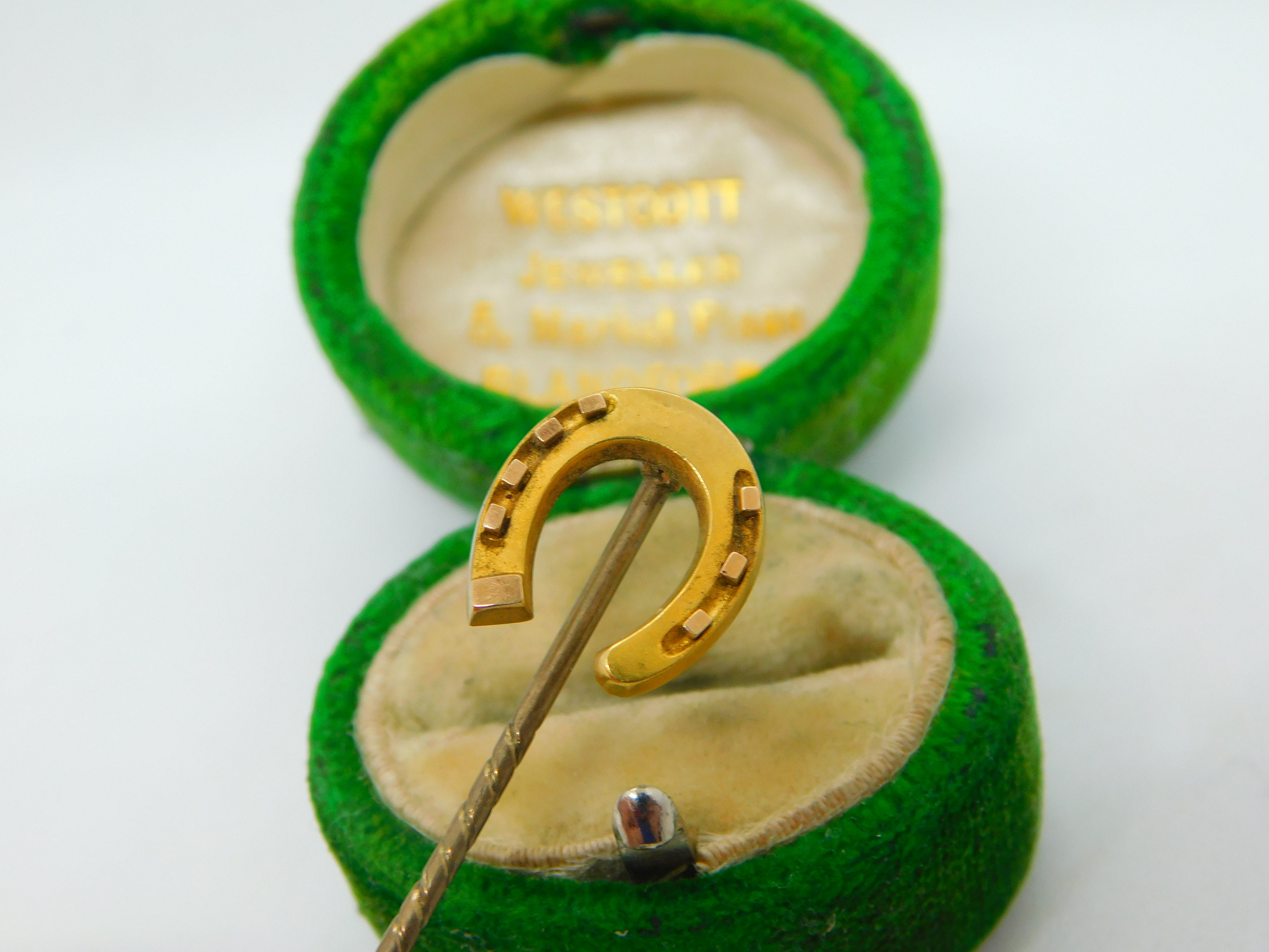 Victorian 15ct Yellow Gold Lucky Horseshoe Stick Pin Antique c1890
