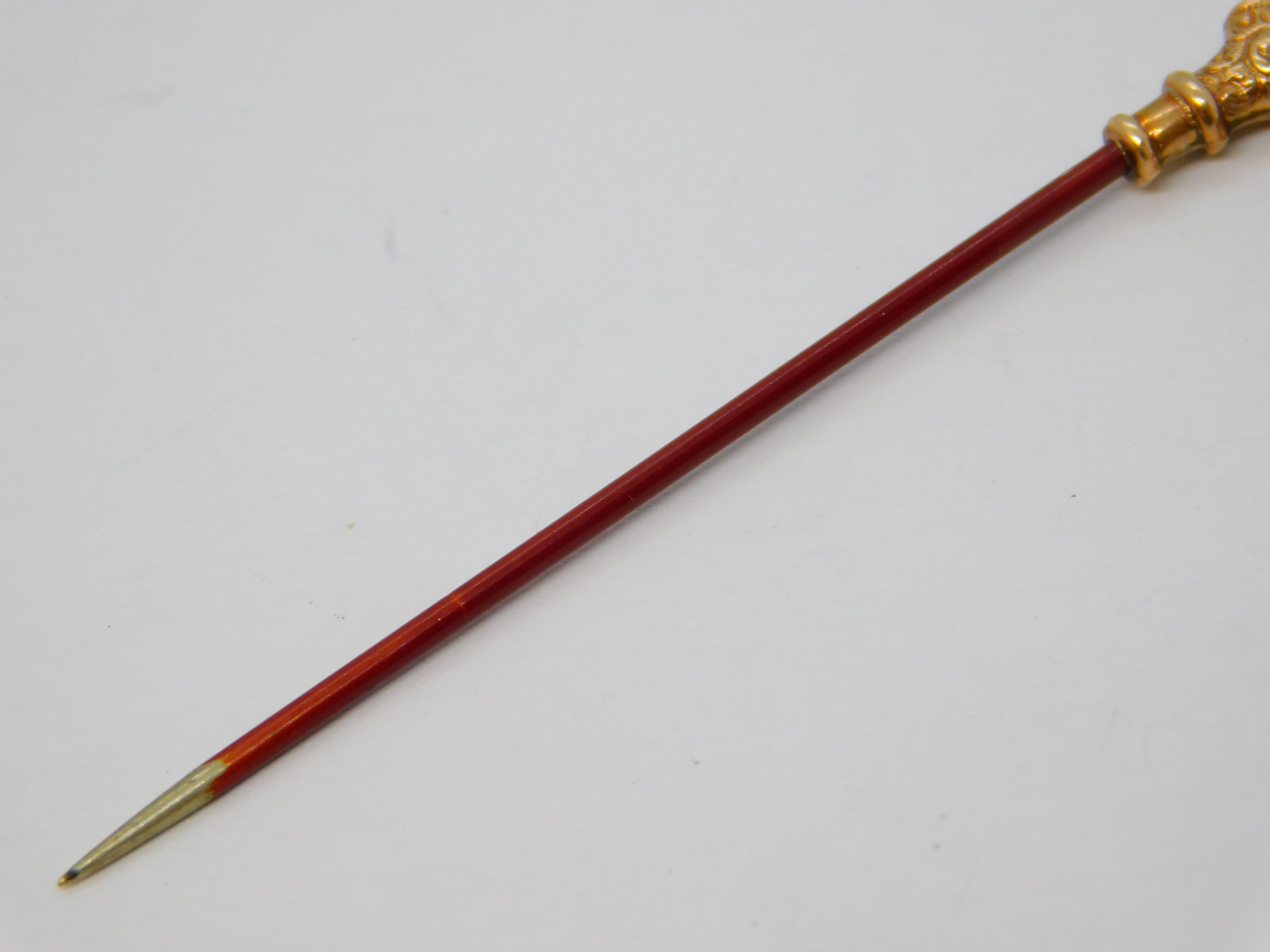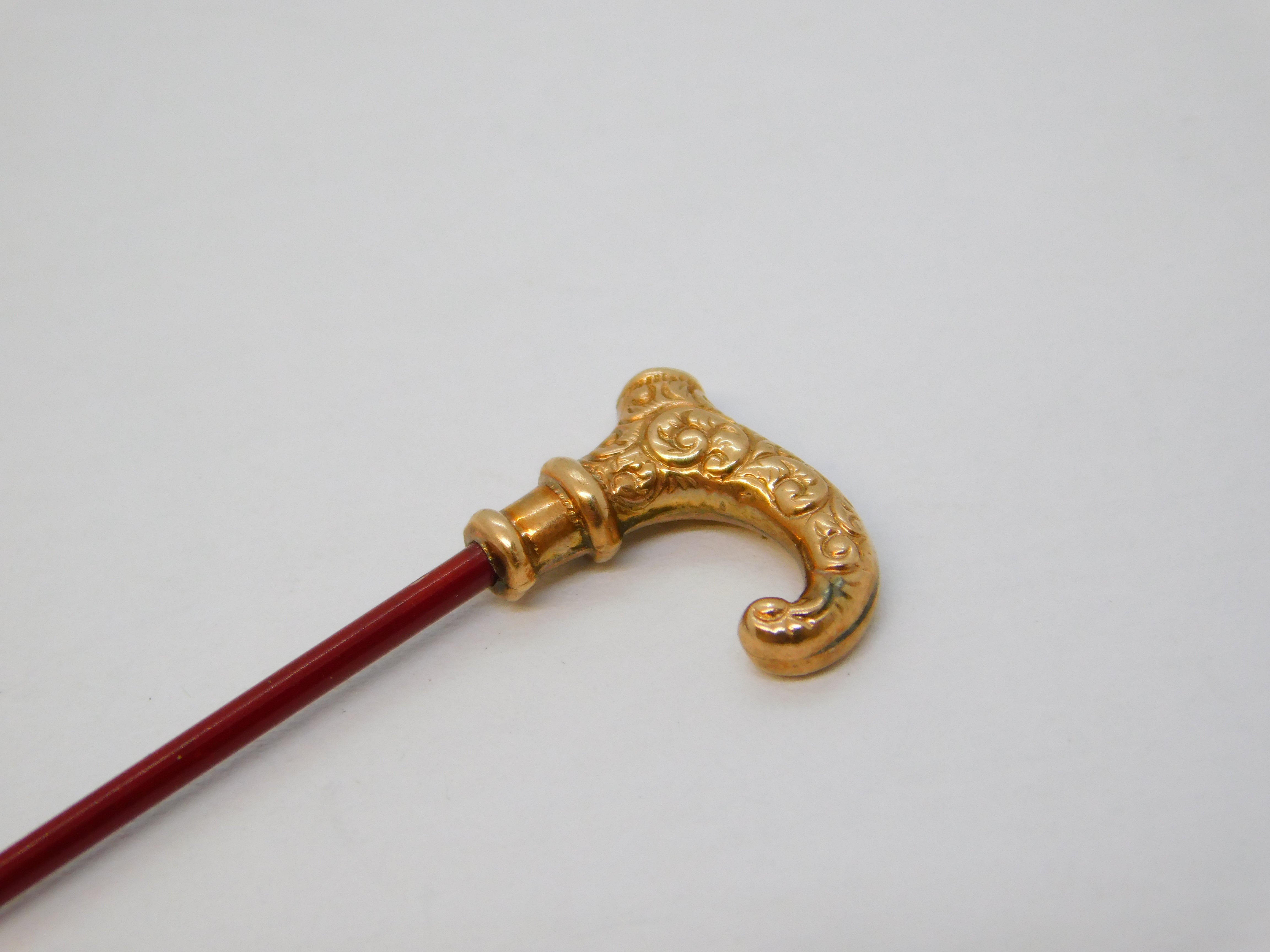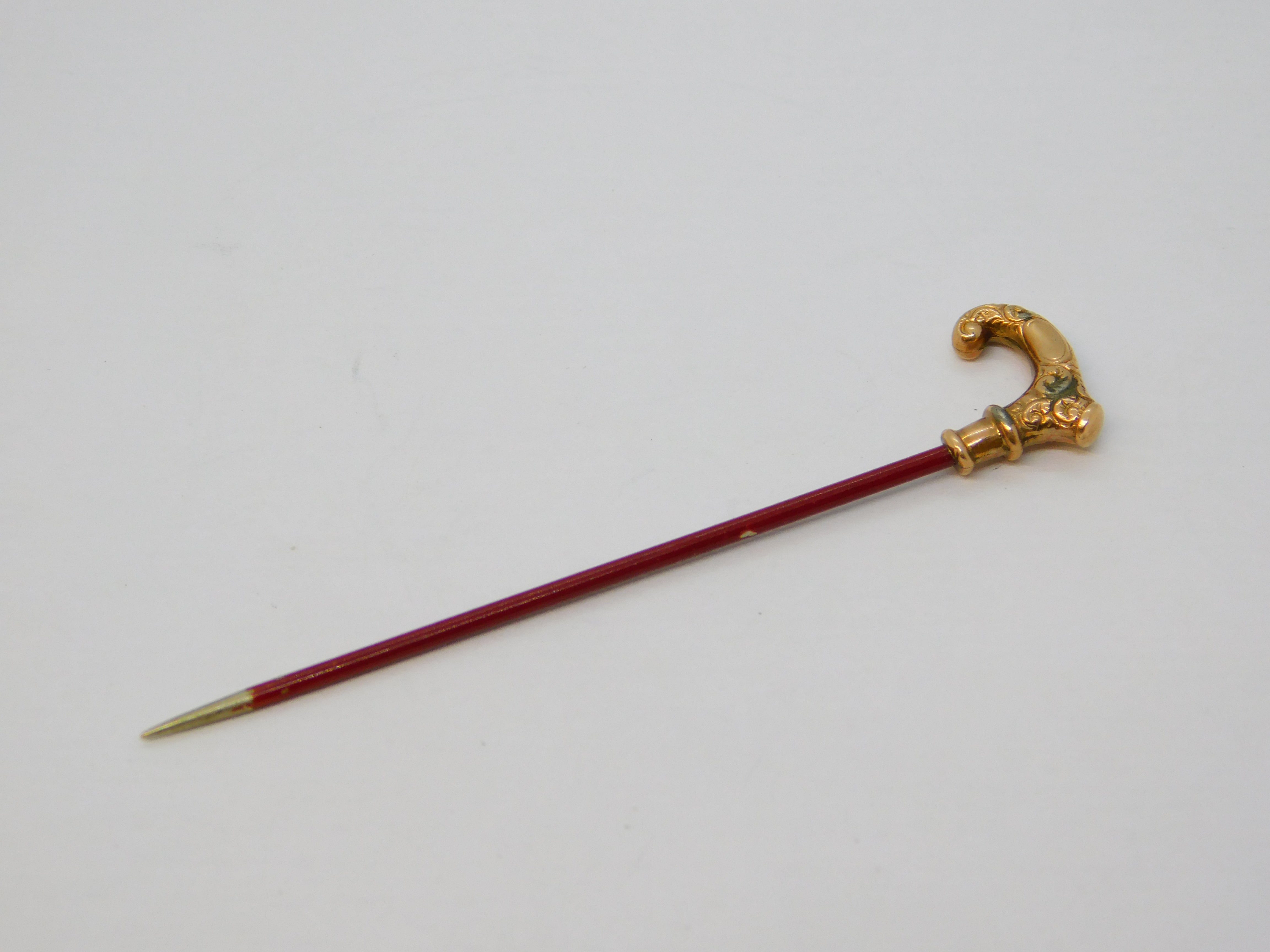 Victorian 15ct Yellow Gold Novelty Walking Cane Stick Pin Antique c1880