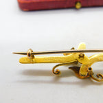 Victorian 15ct Yellow Gold, Ruby & Pearl Set Sweetheart Brooch 1881 Chester