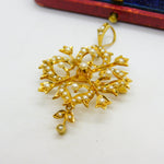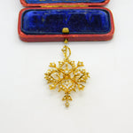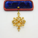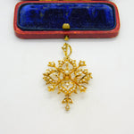 Victorian 15ct Yellow Gold Seed Pearl Set Floral Lavalier Drop Pendant c1890