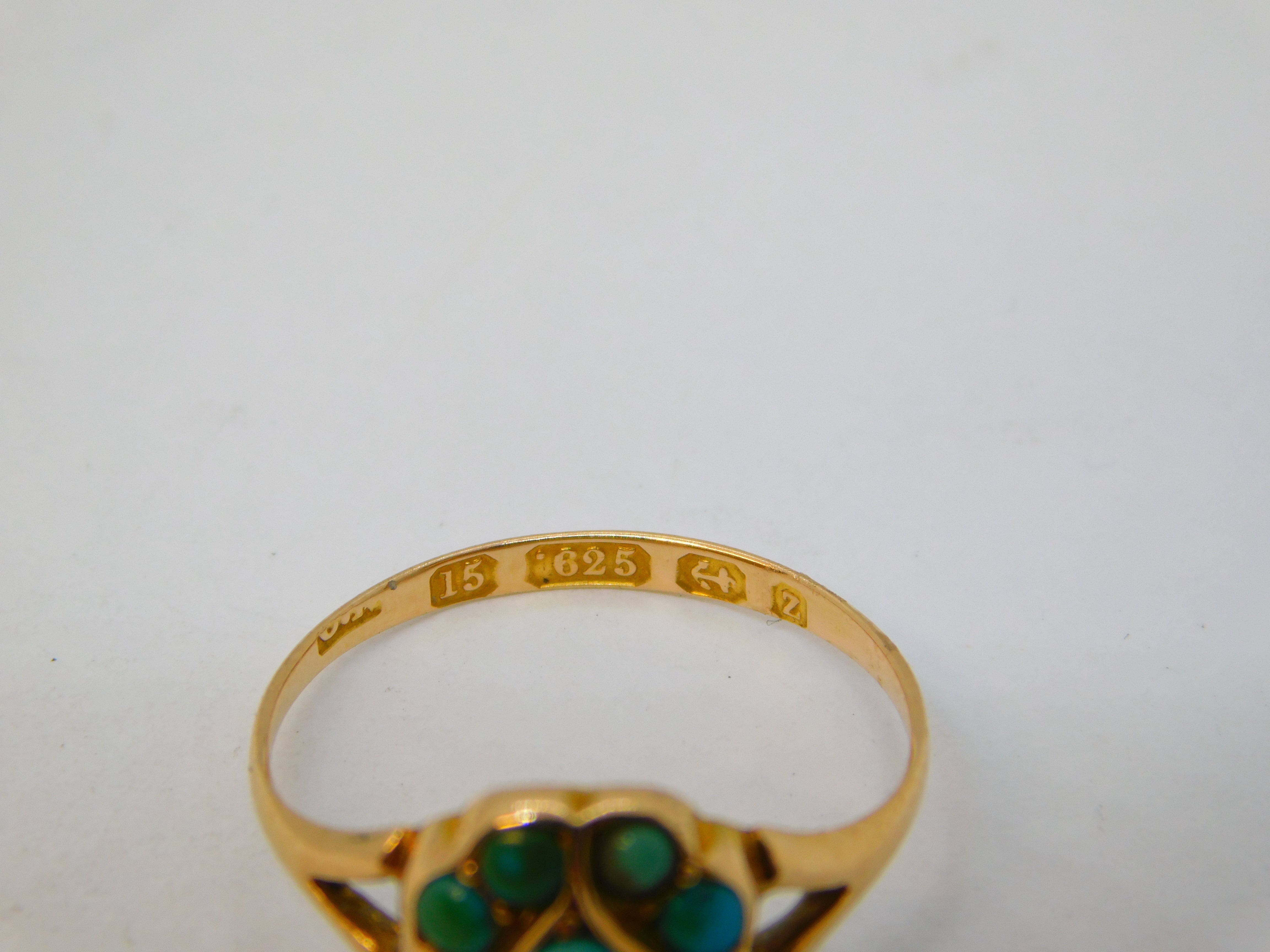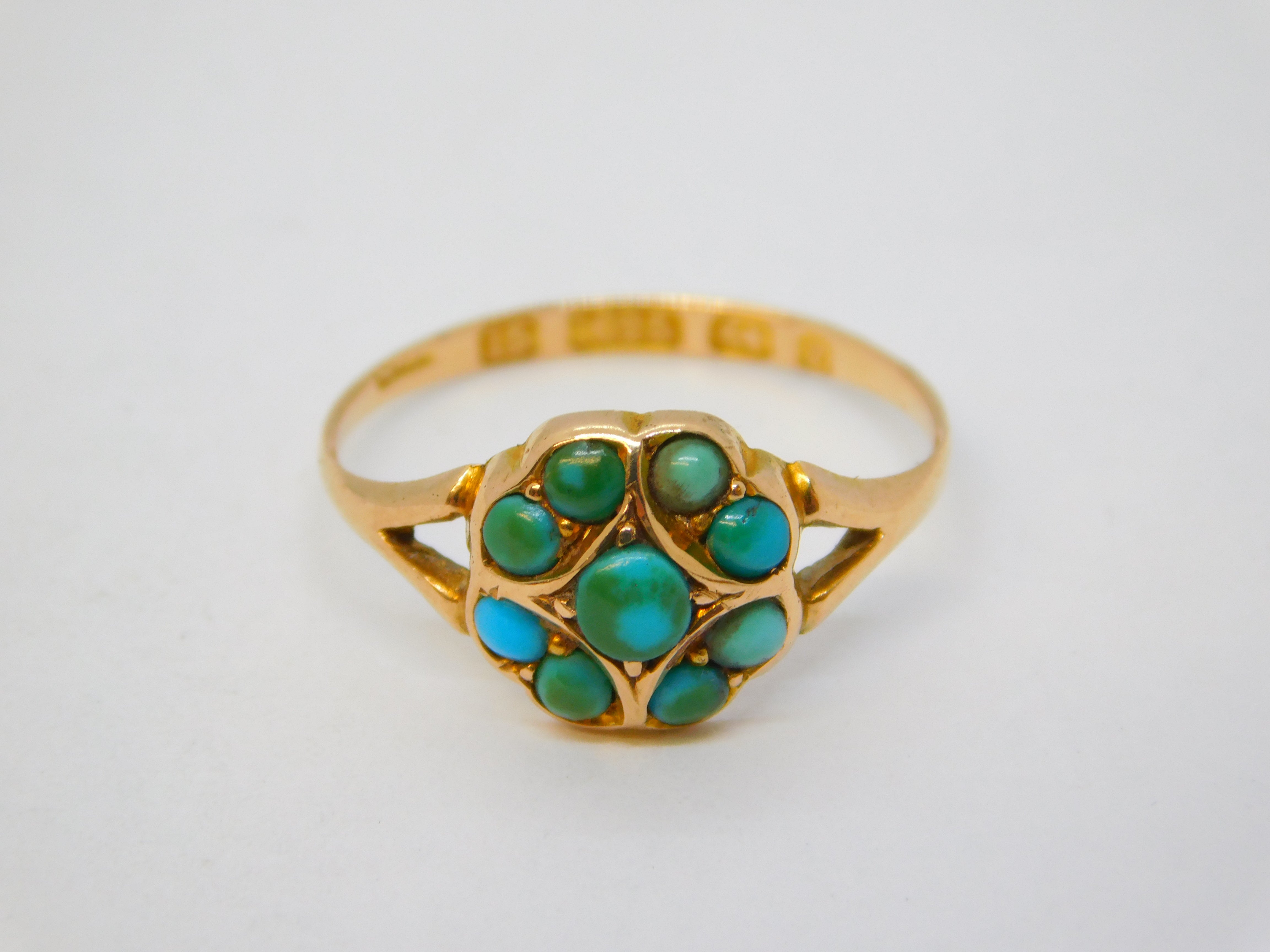 Victorian 15ct Yellow Gold & Turquoise Floral Dress Ring Antique 1899 Birmingham