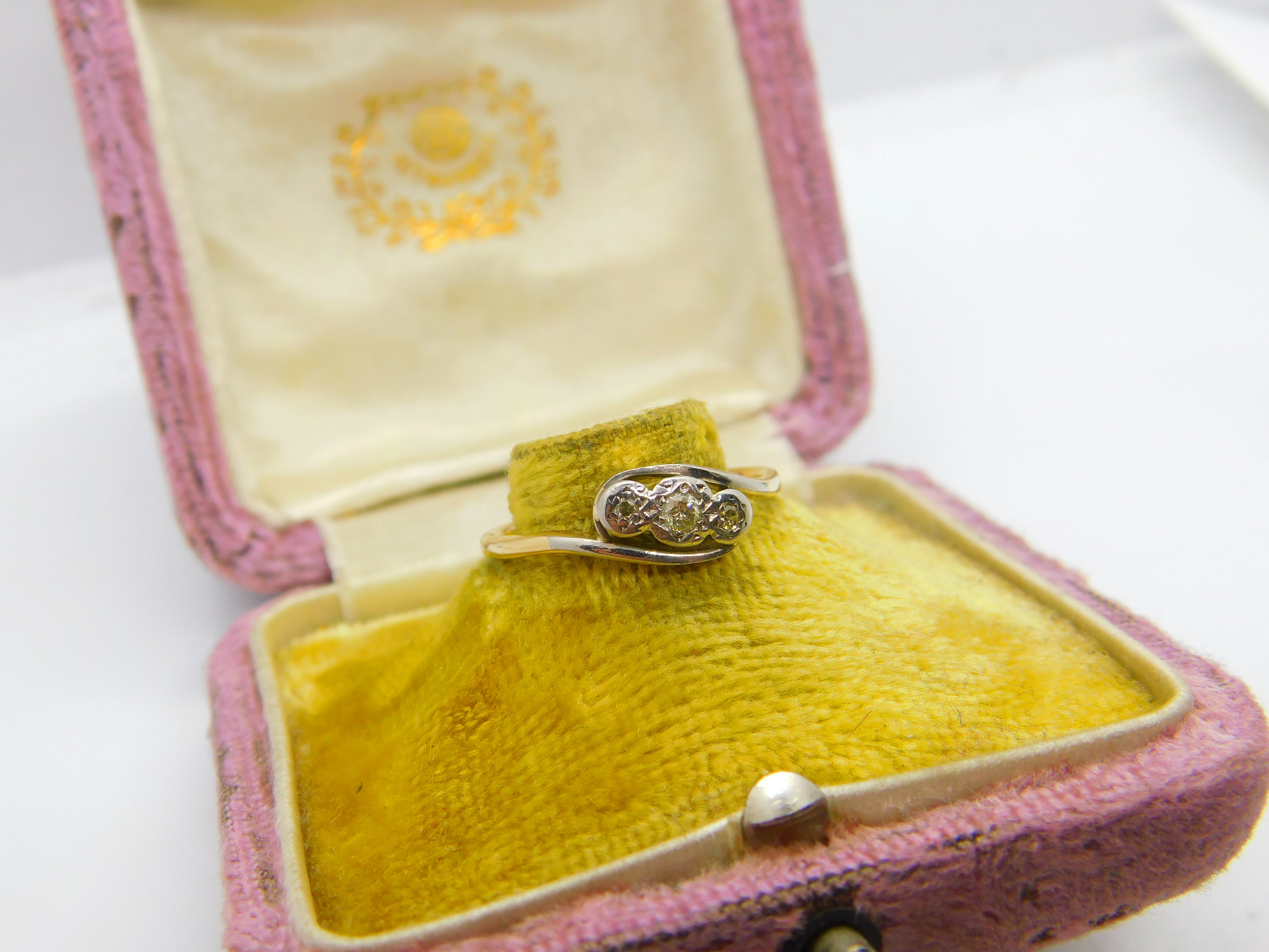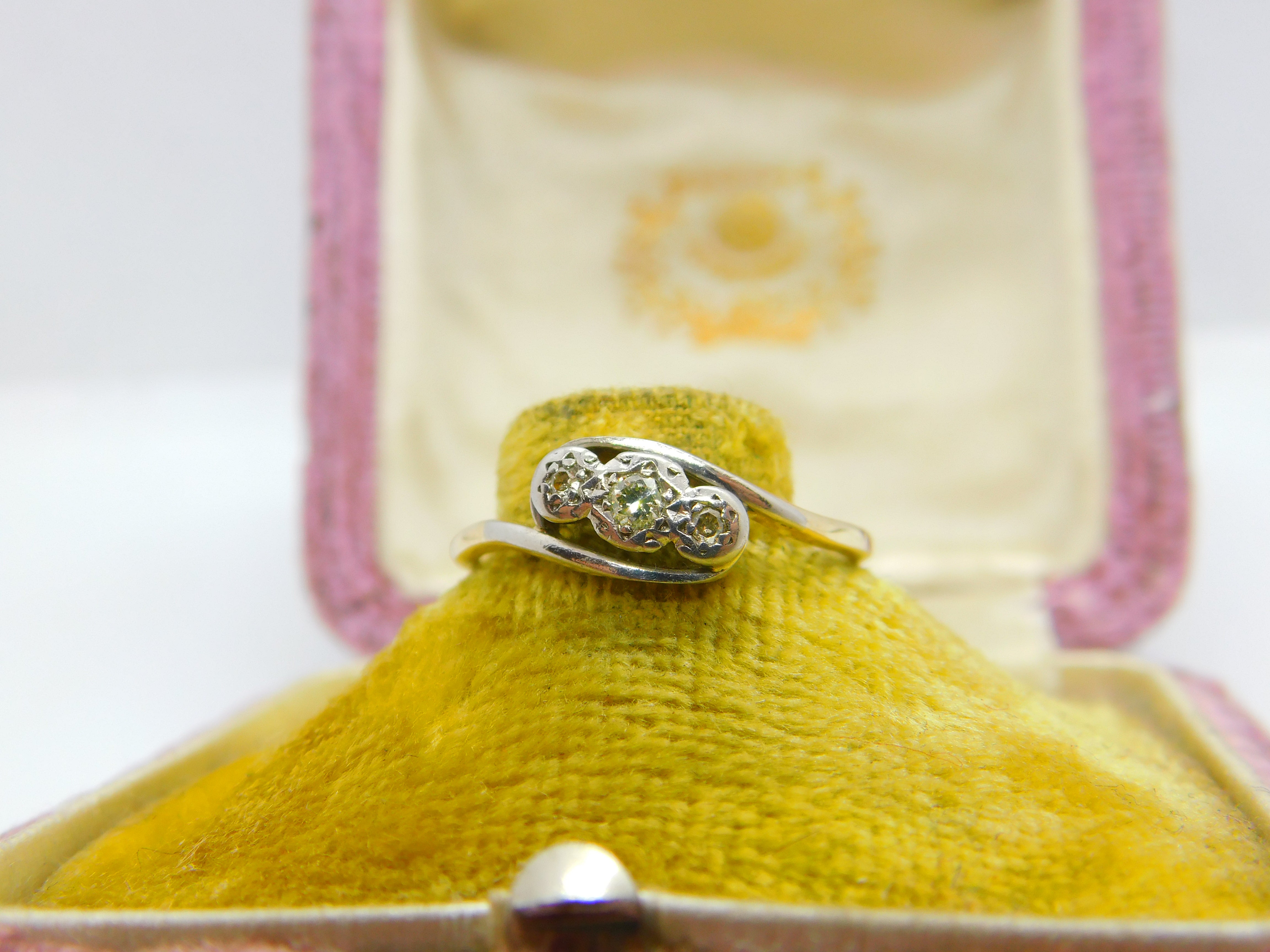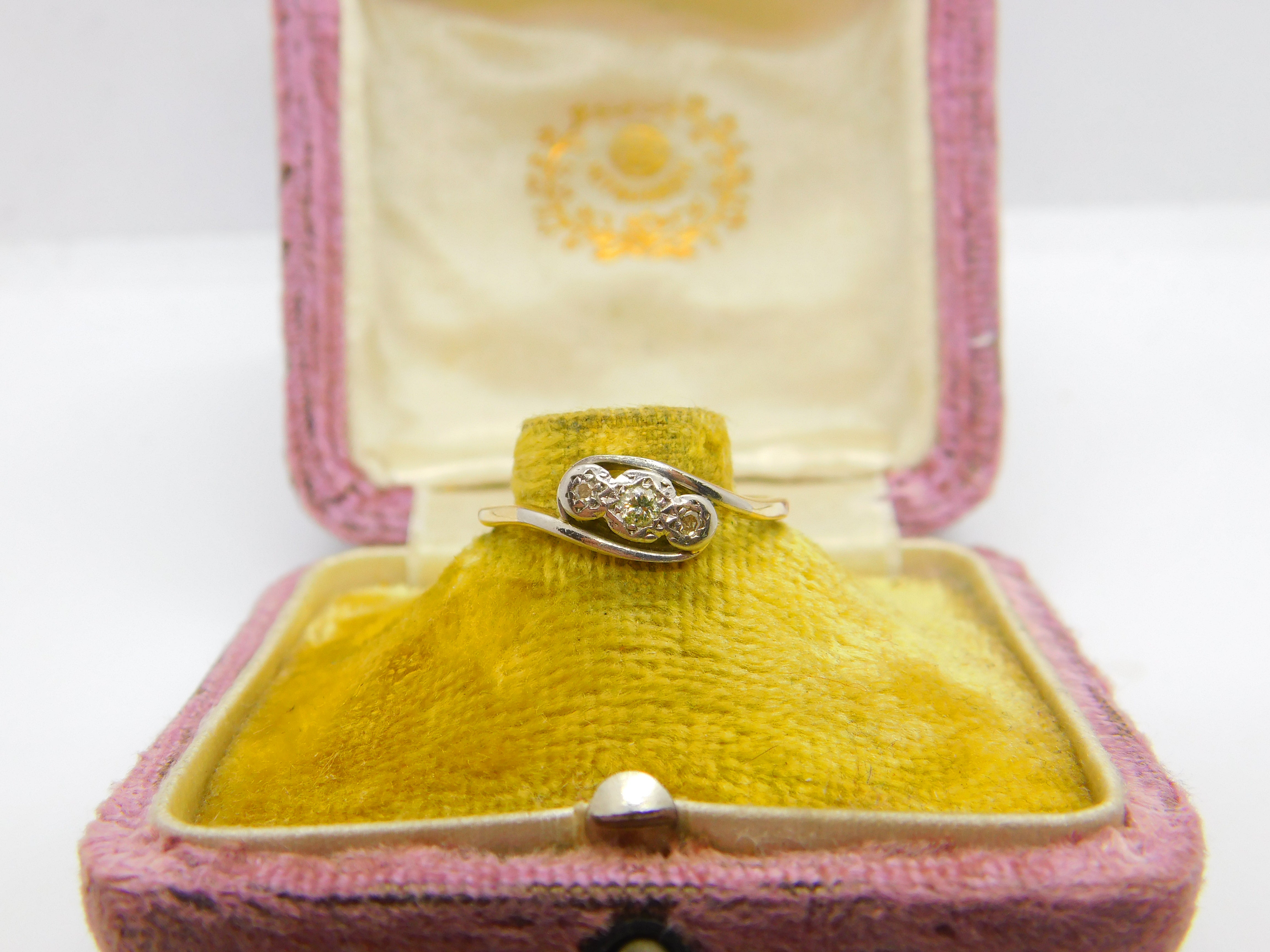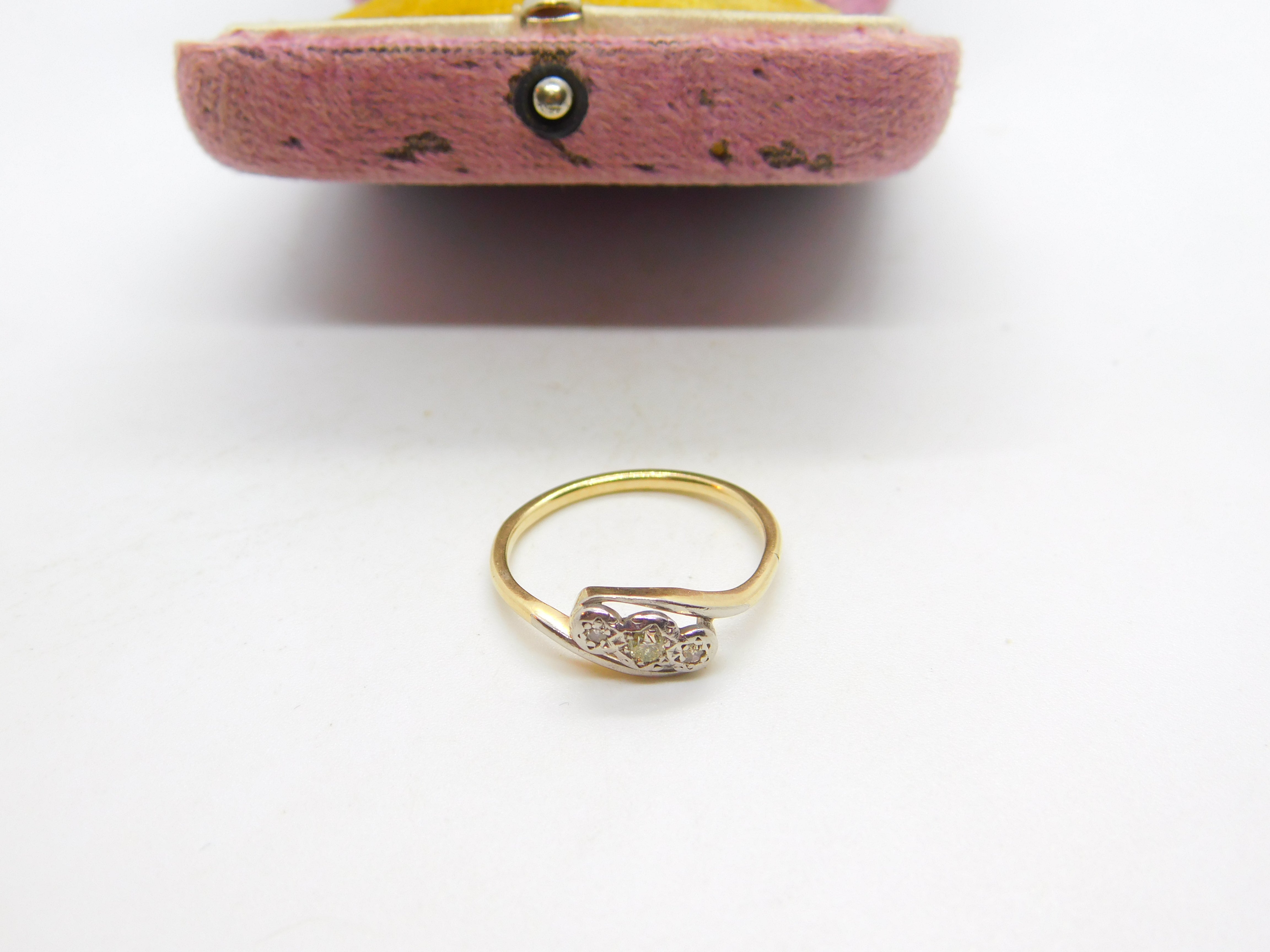 Victorian 18ct Gold & 0.1ct Diamond Crossover Ring Antique c1880 Size O 1/2 UK