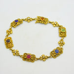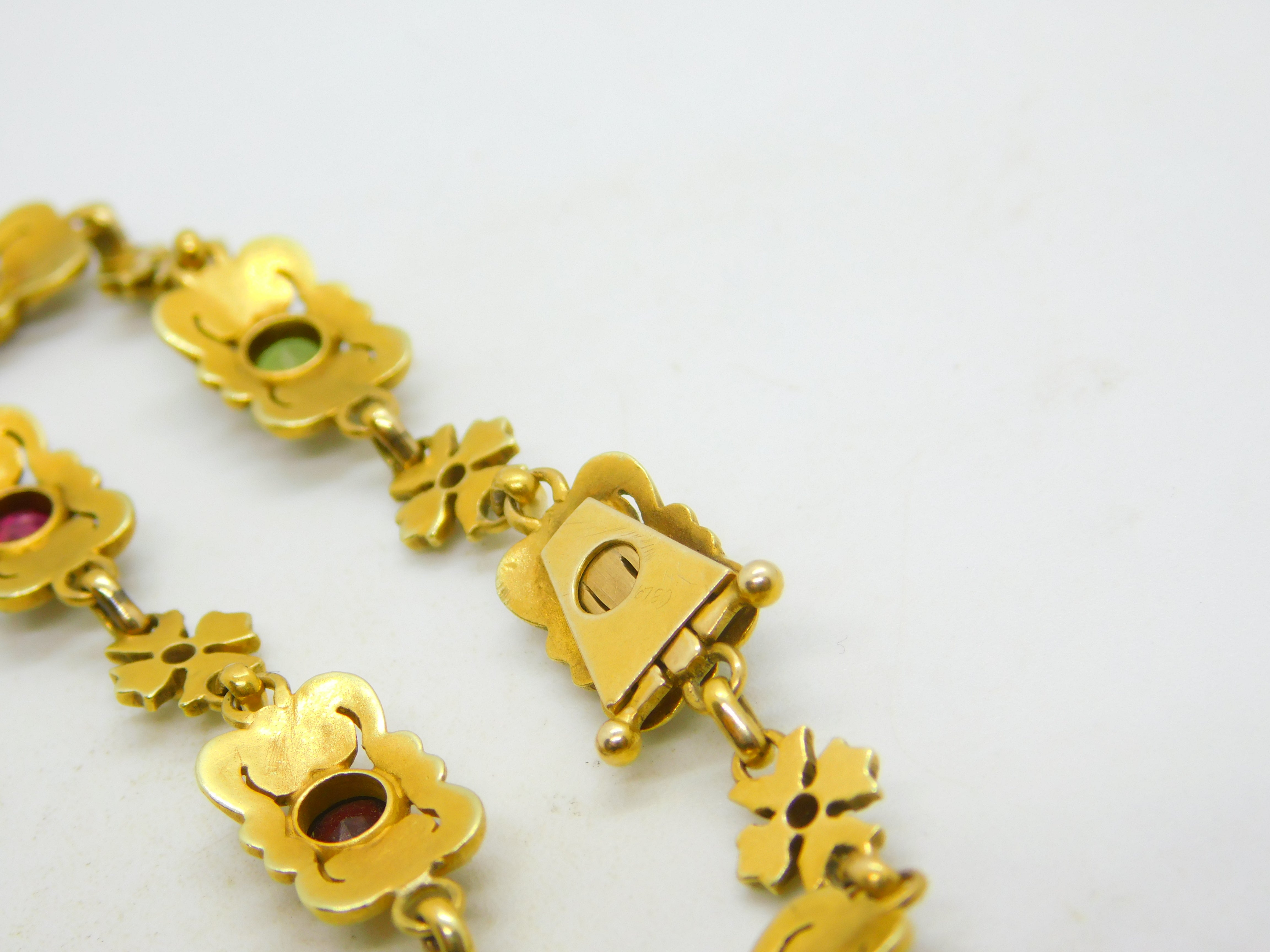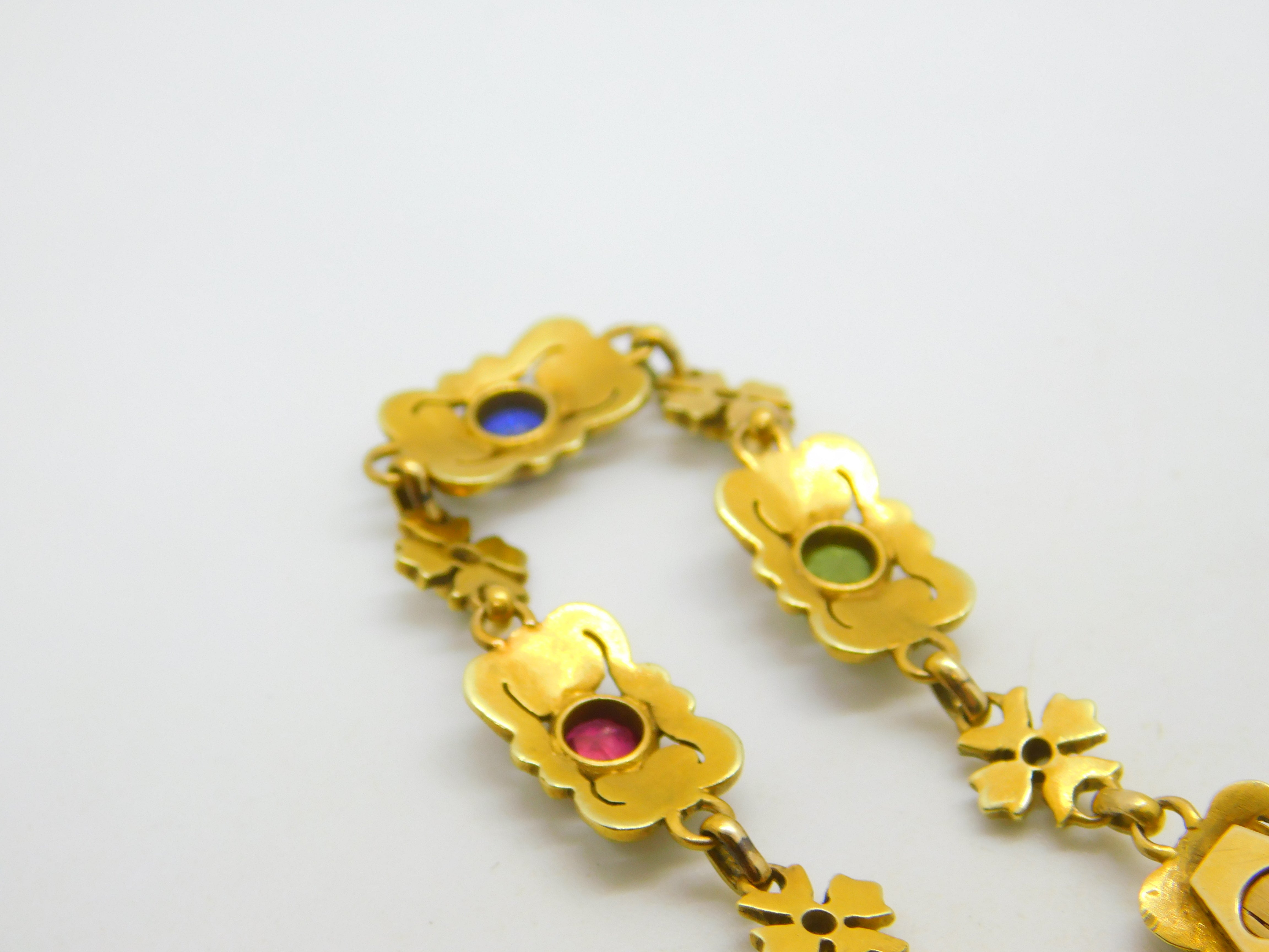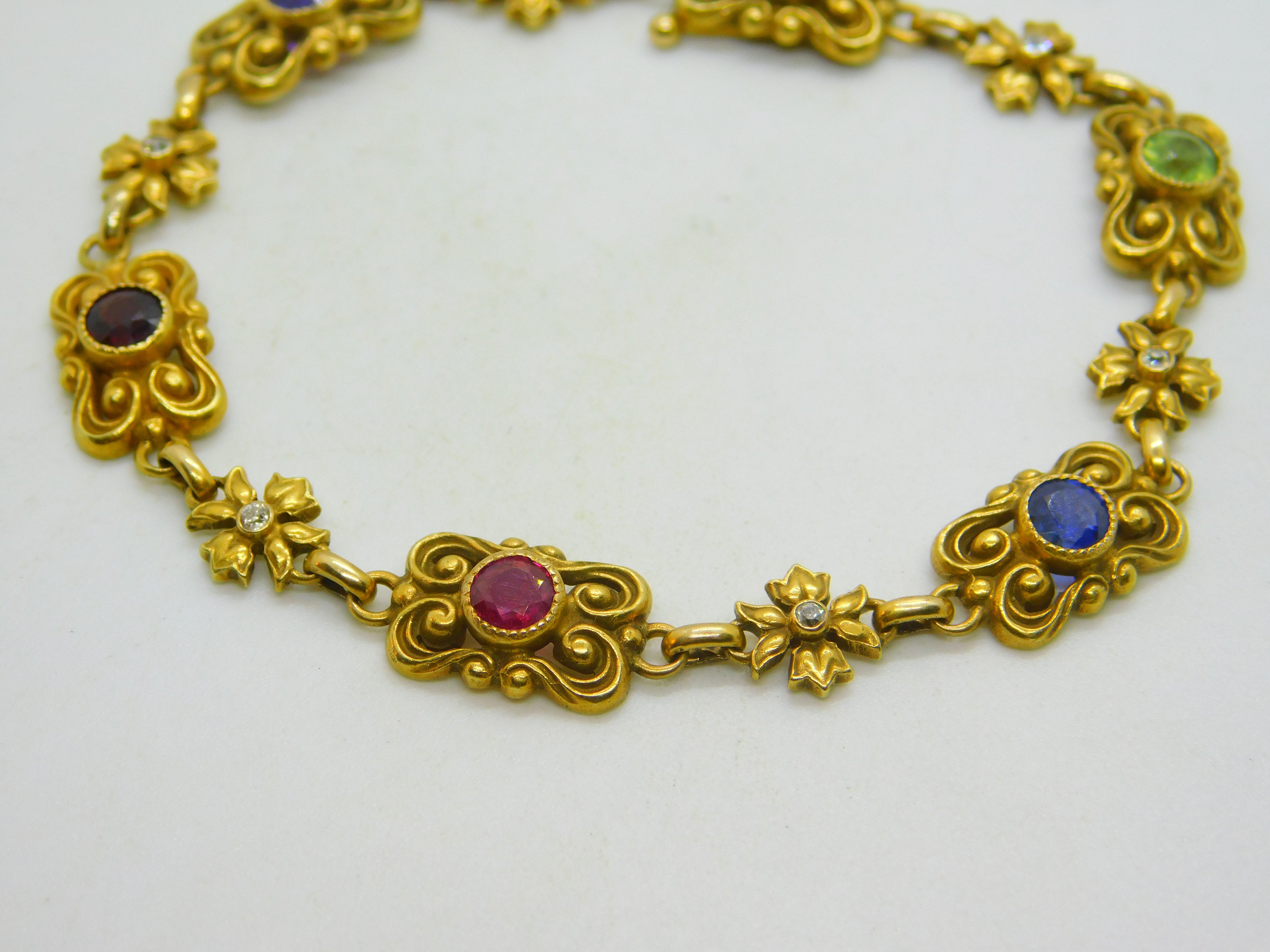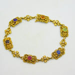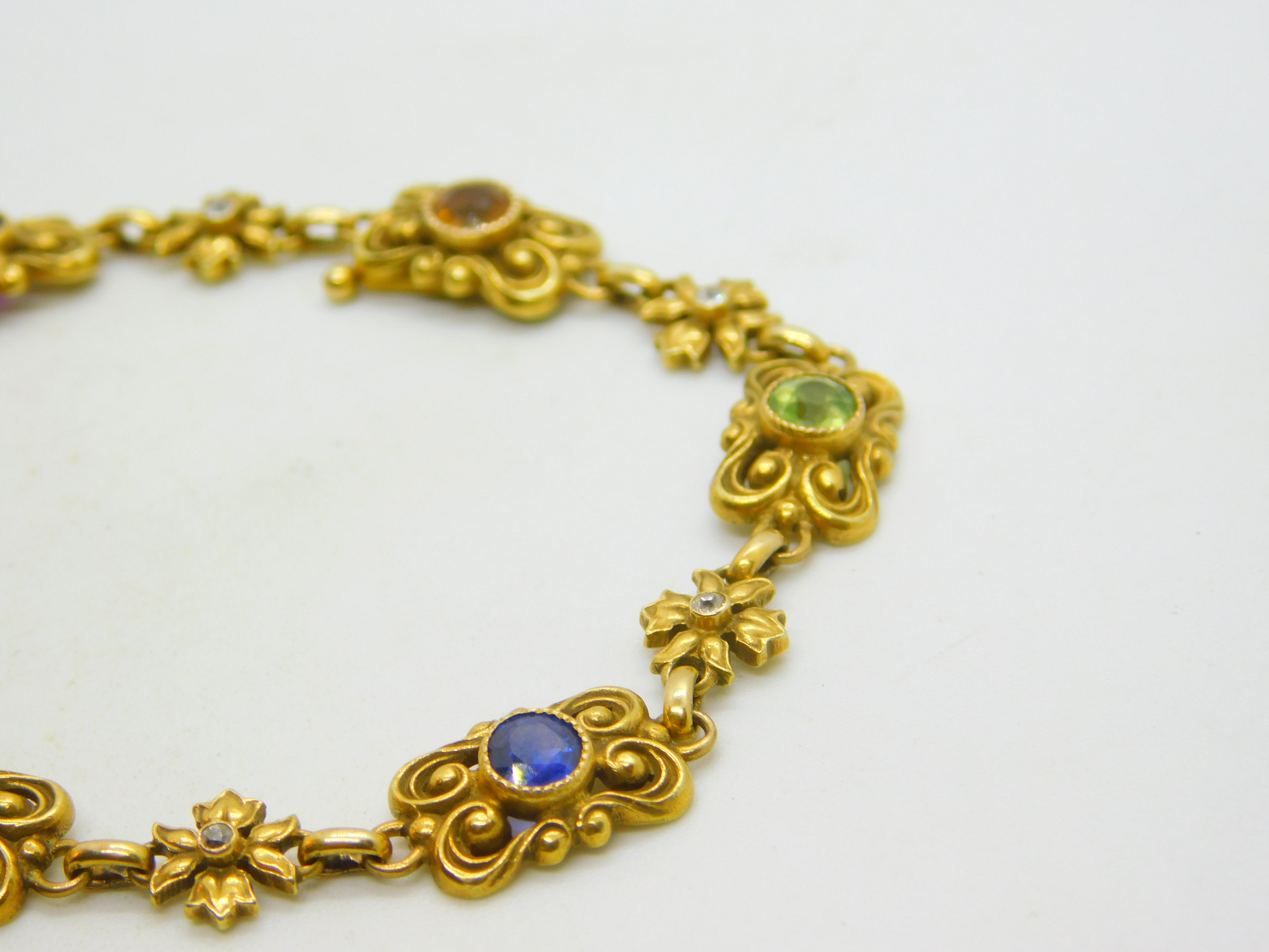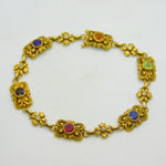 Details: A fantastic and wonderfully designed antique Victorian 18ct yellow gold acrostic style floral panel bracelet set with amethyst, Garnet, Ruby, Sapphire, Peridot & Citrine with small diamonds set in each intervening panel. The gold has been XRF tested as it is unmarked and the item dates from the 1880s, the stones have all bess tested. a truly exquisite example. This is a wonderful item that would make a perfect gift or addition to any collection. The BOX pictured is for PRESENTATION ONLY and is NOT included in the listings but used to frame the pictures unless specifically stated otherwise.