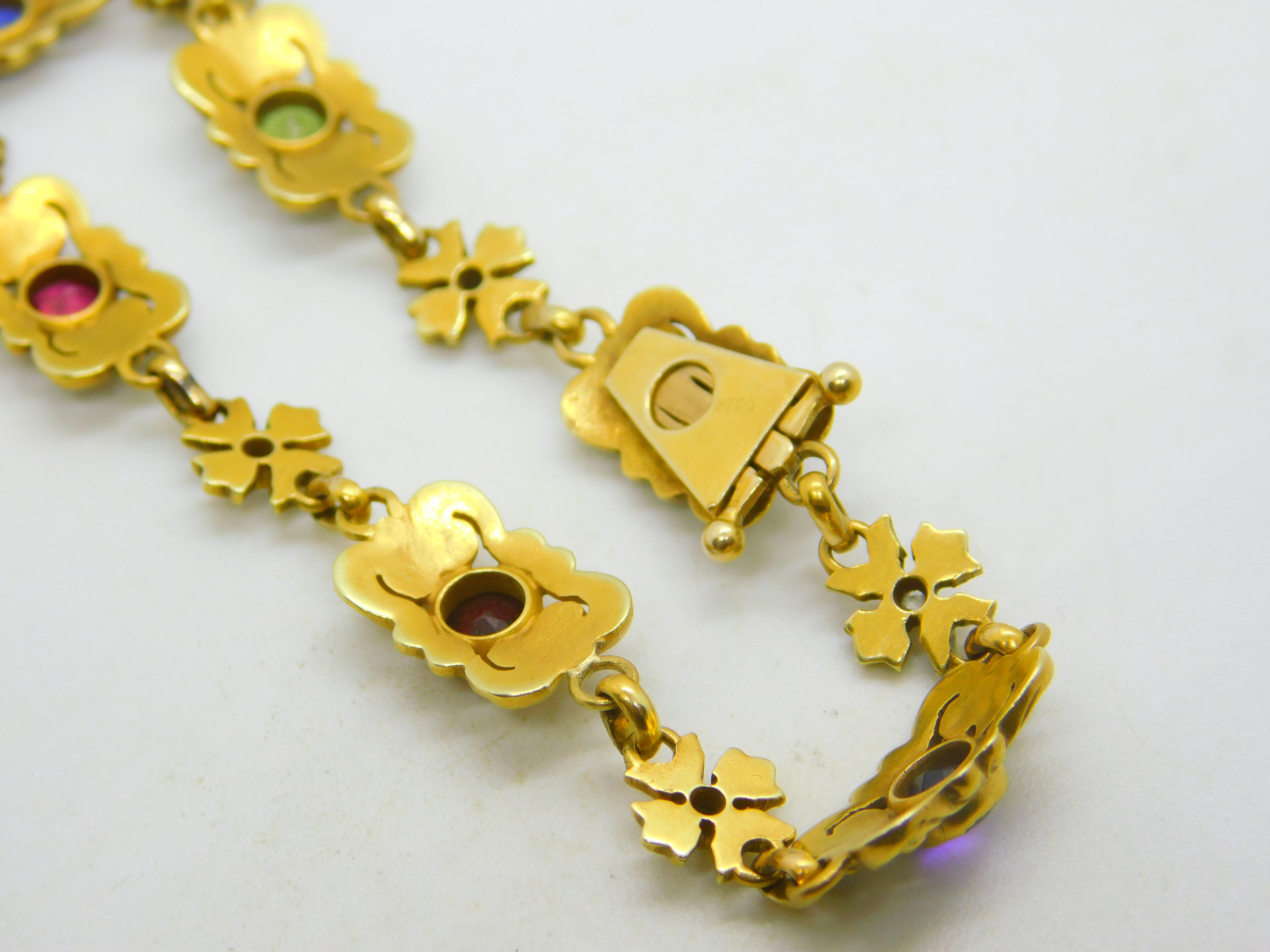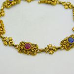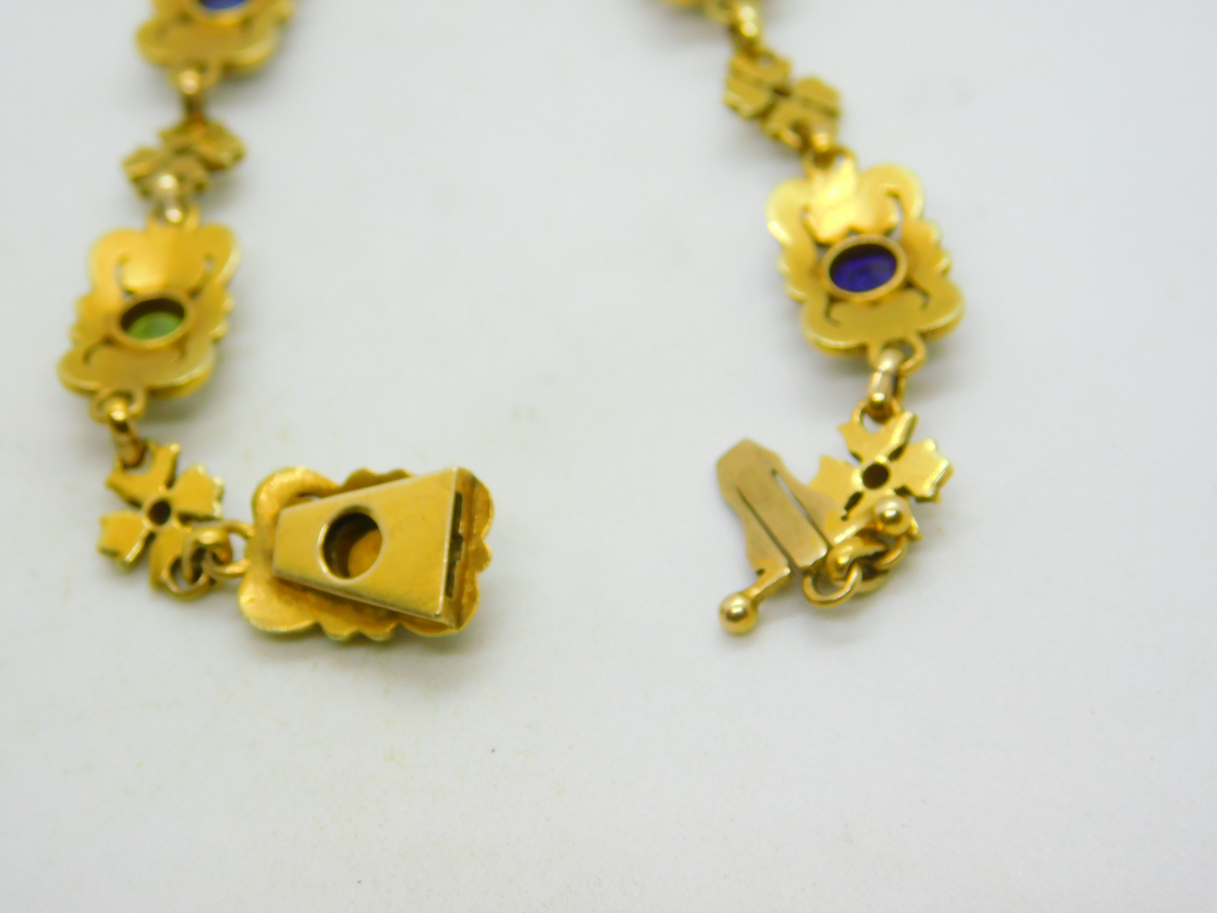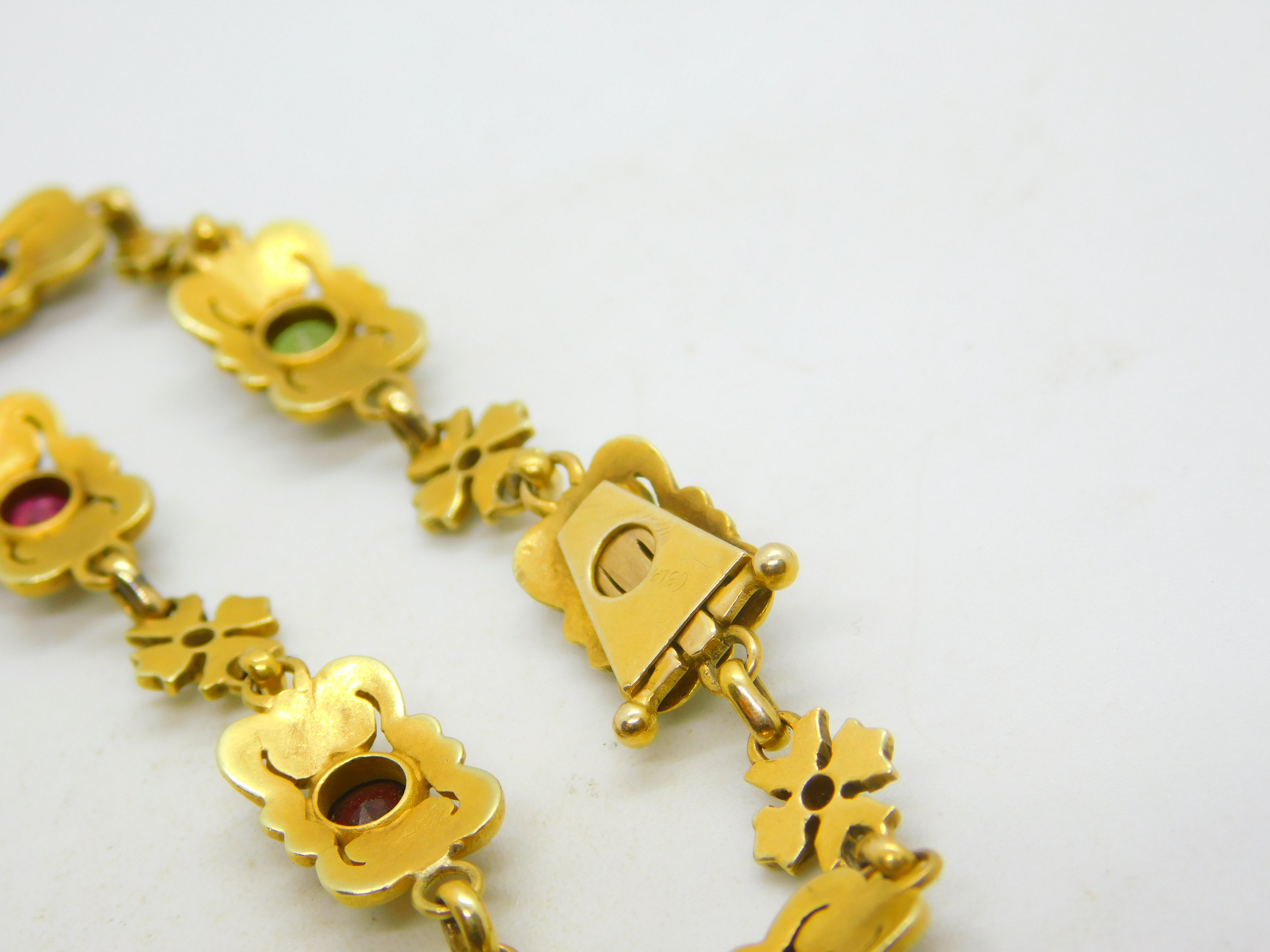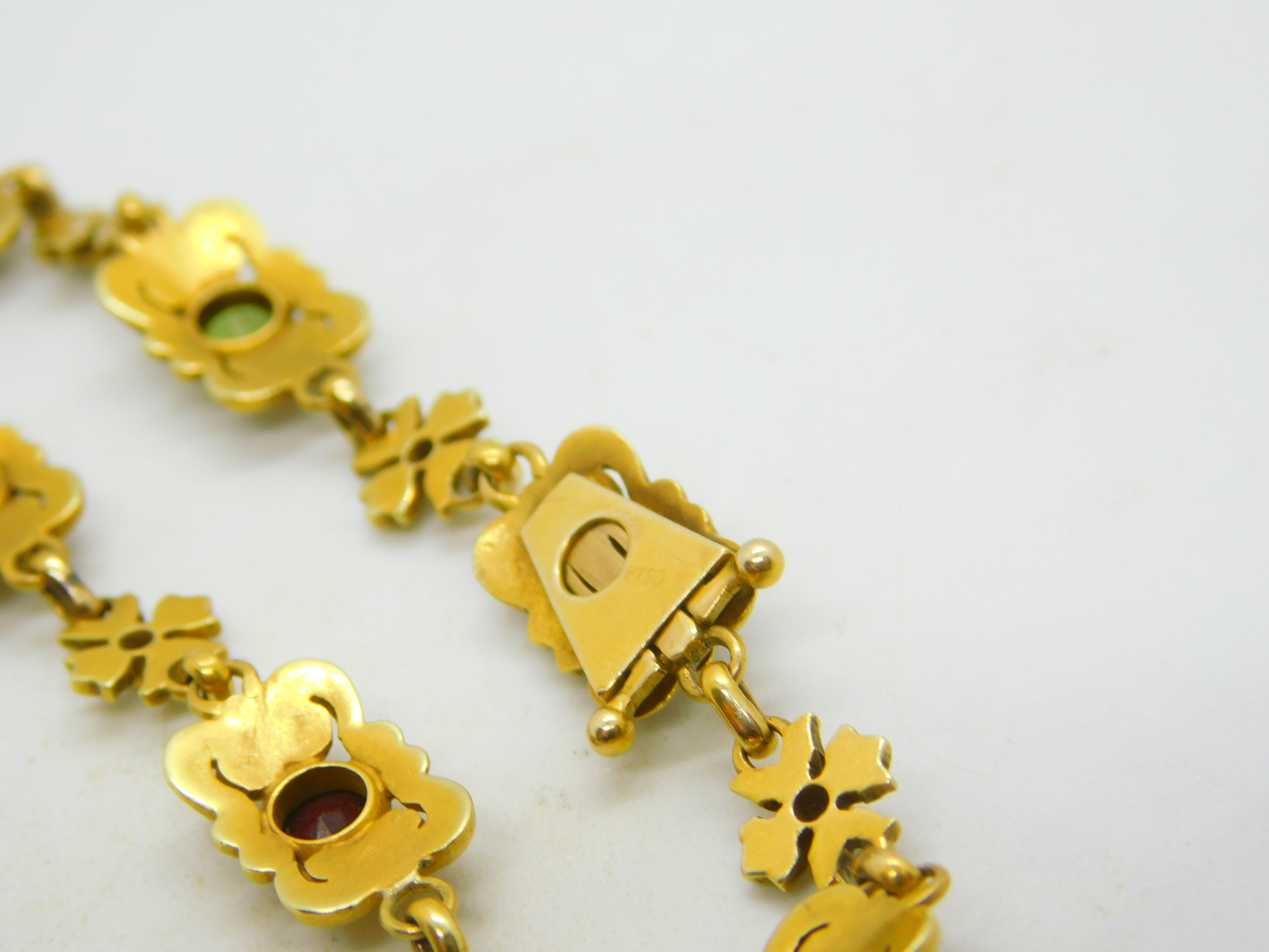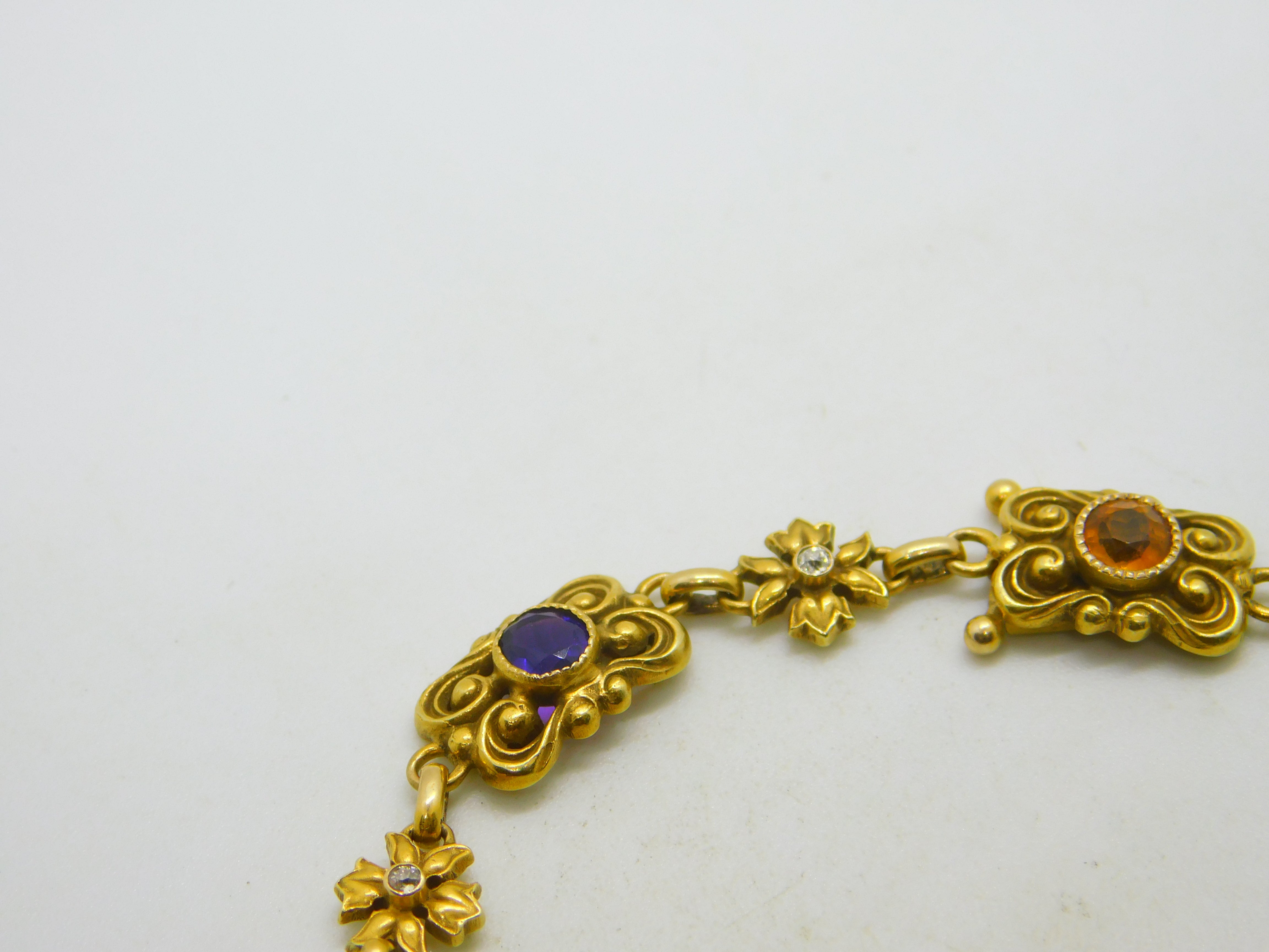 Details: A fantastic and wonderfully designed antique Victorian 18ct yellow gold acrostic style floral panel bracelet set with amethyst, Garnet, Ruby, Sapphire, Peridot & Citrine with small diamonds set in each intervening panel. The gold has been XRF tested as it is unmarked and the item dates from the 1880s, the stones have all bess tested. a truly exquisite example. This is a wonderful item that would make a perfect gift or addition to any collection. The BOX pictured is for PRESENTATION ONLY and is NOT included in the listings but used to frame the pictures unless specifically stated otherwise.