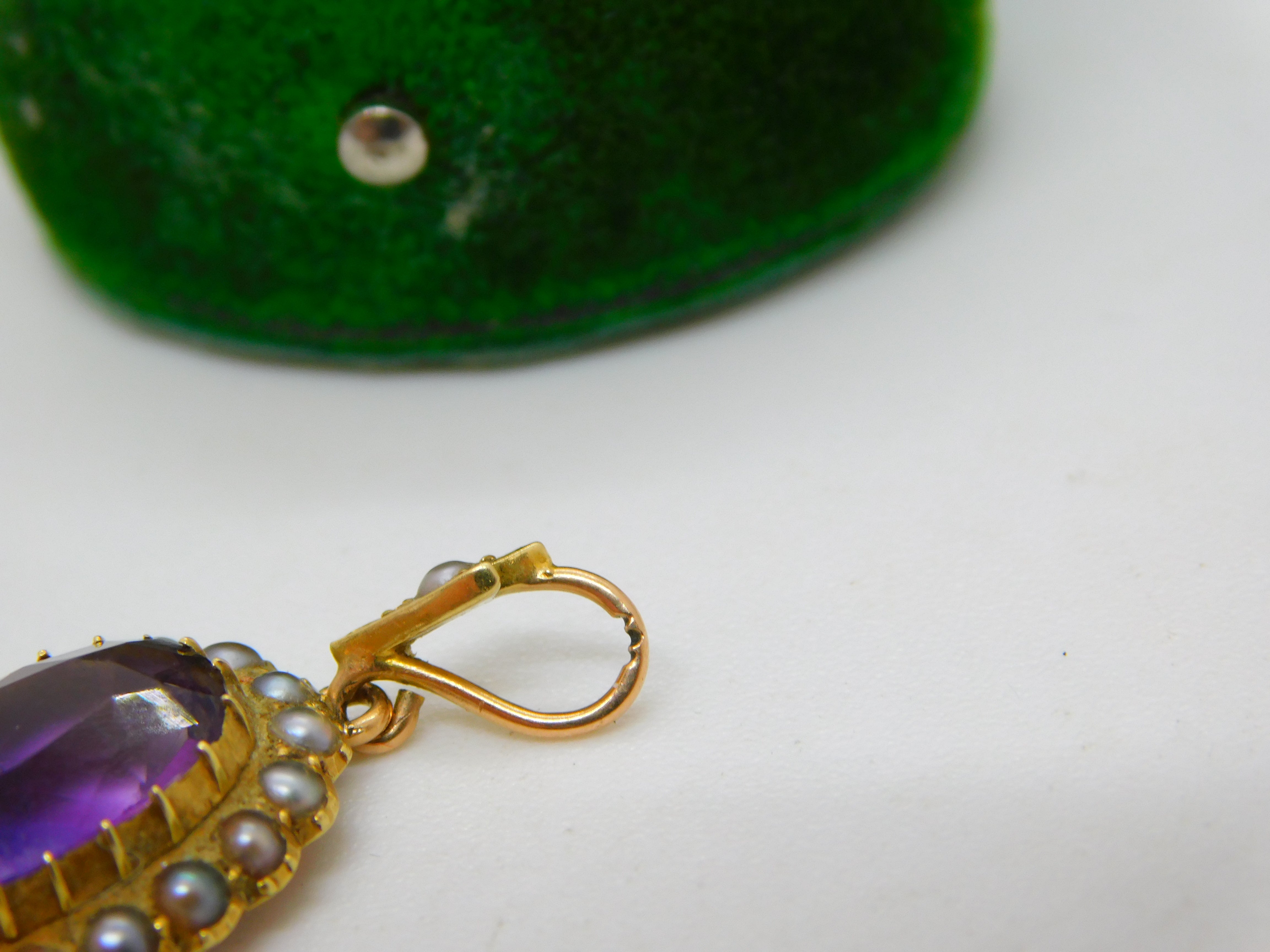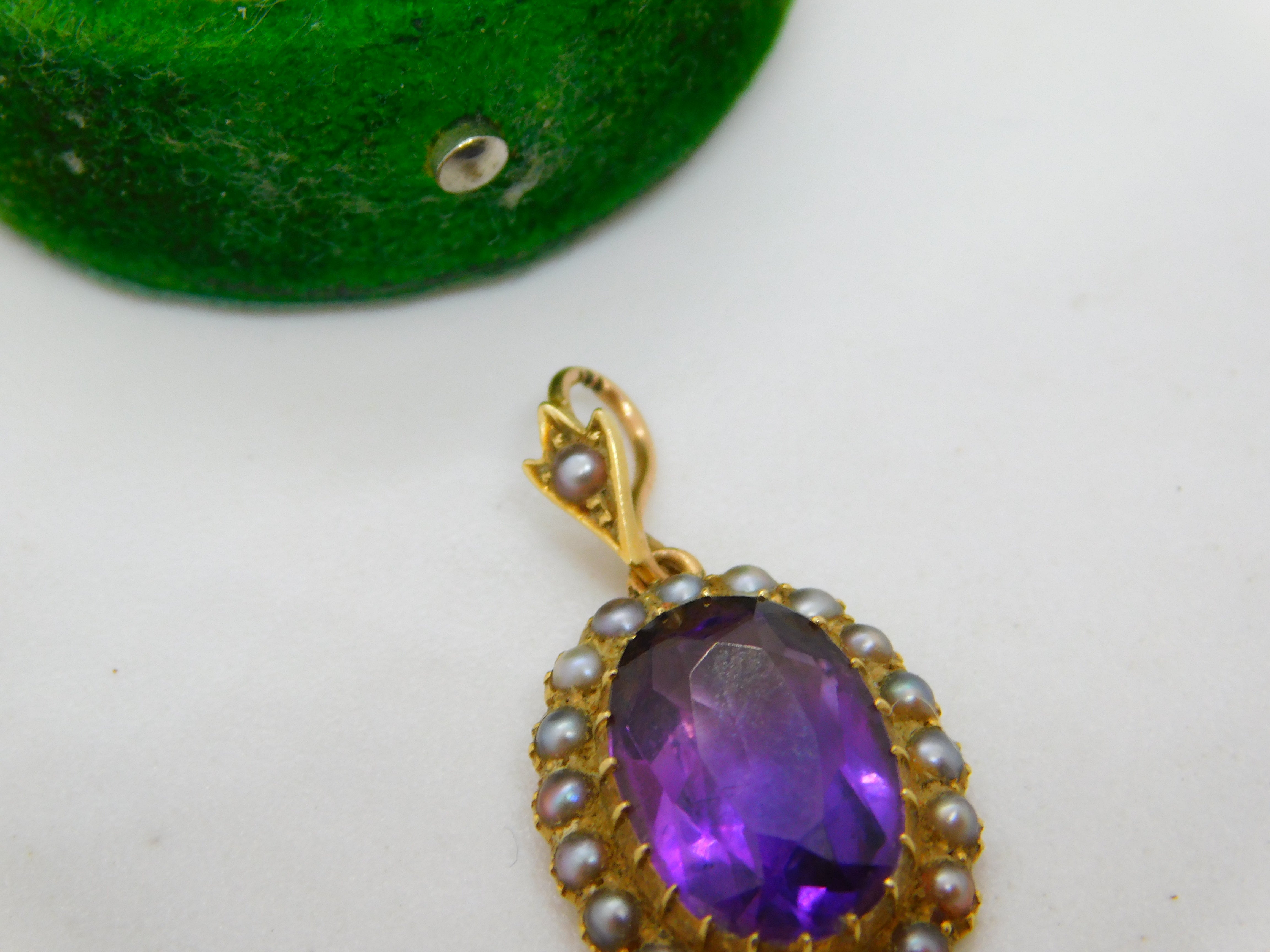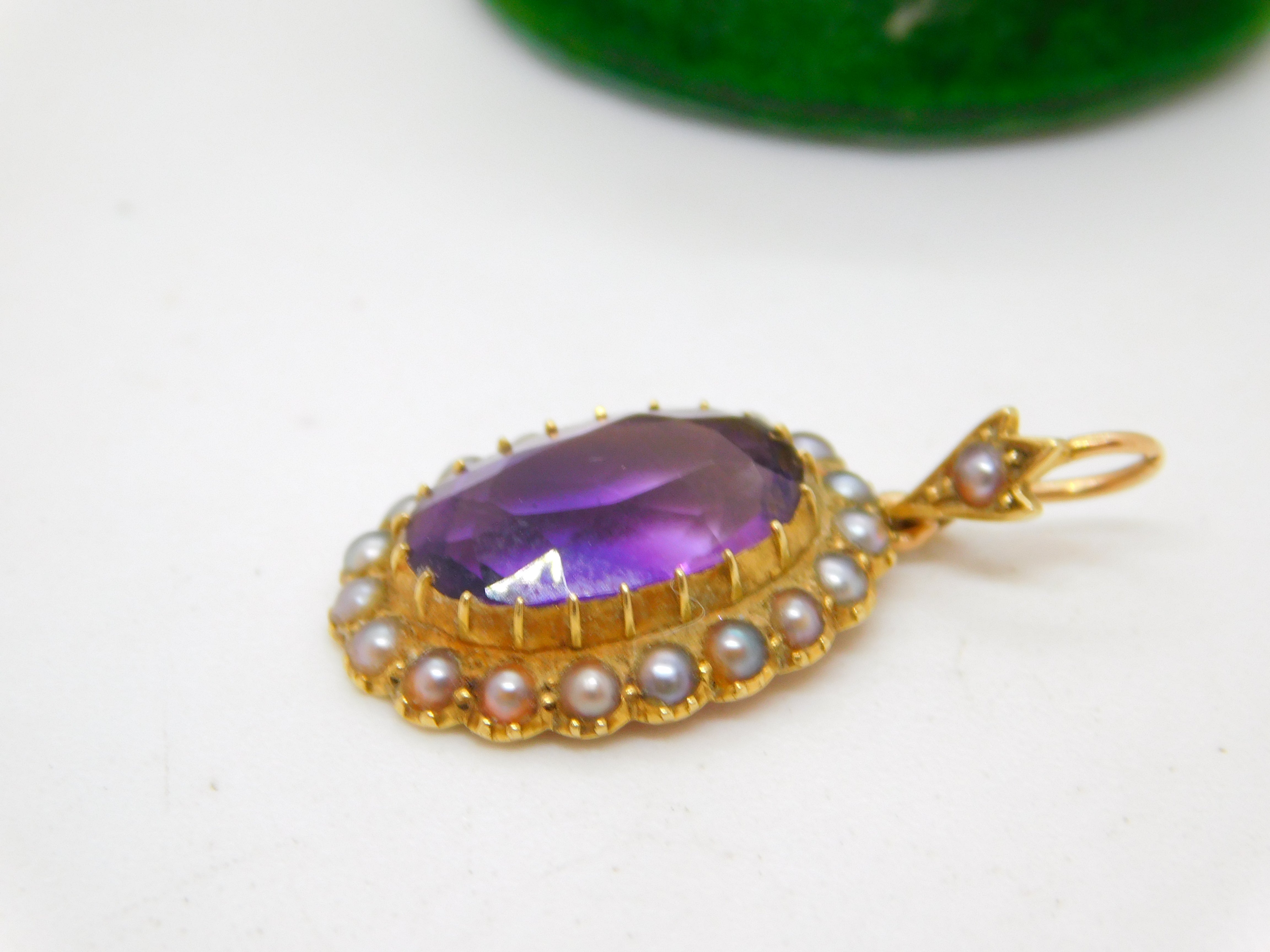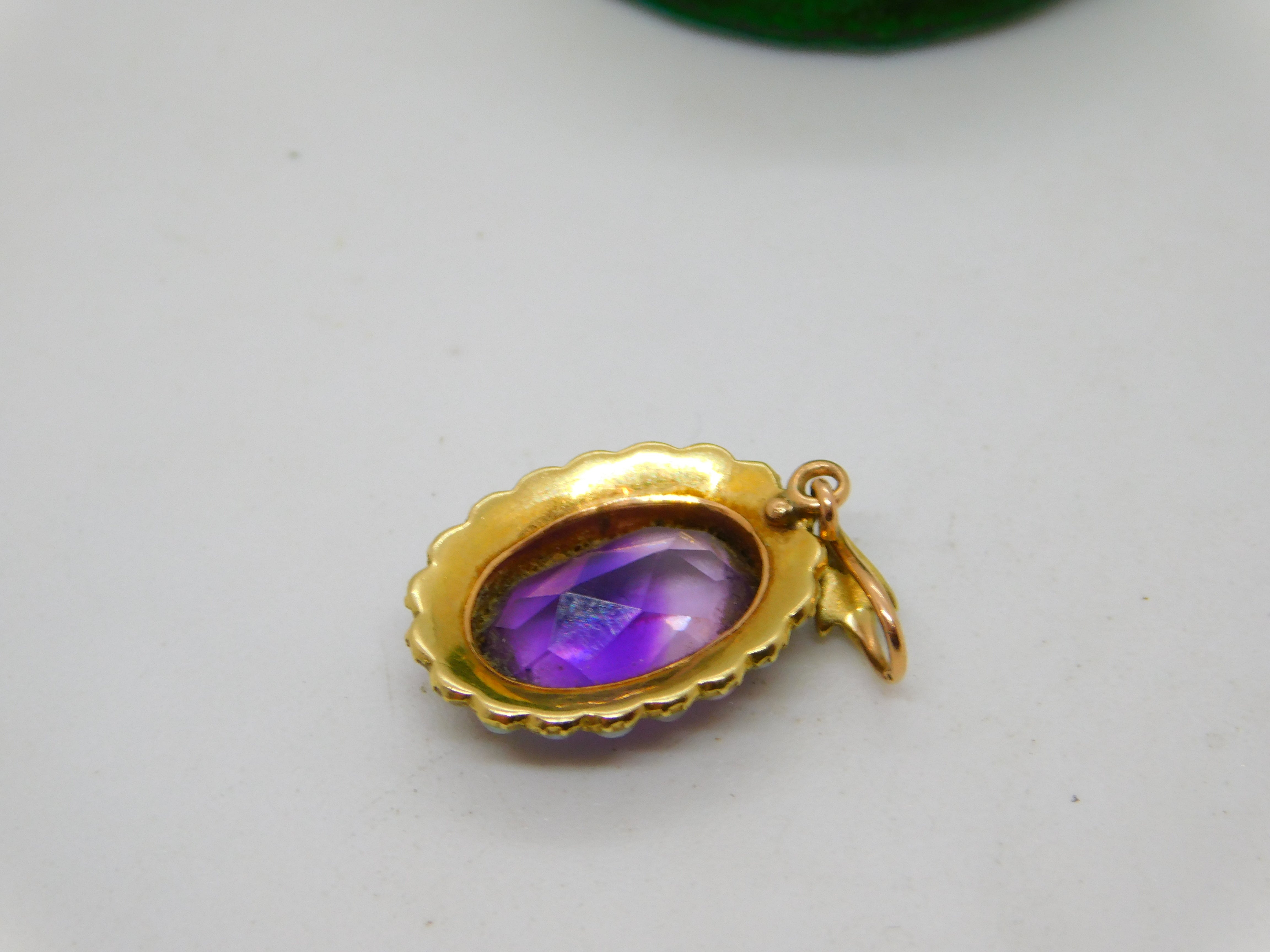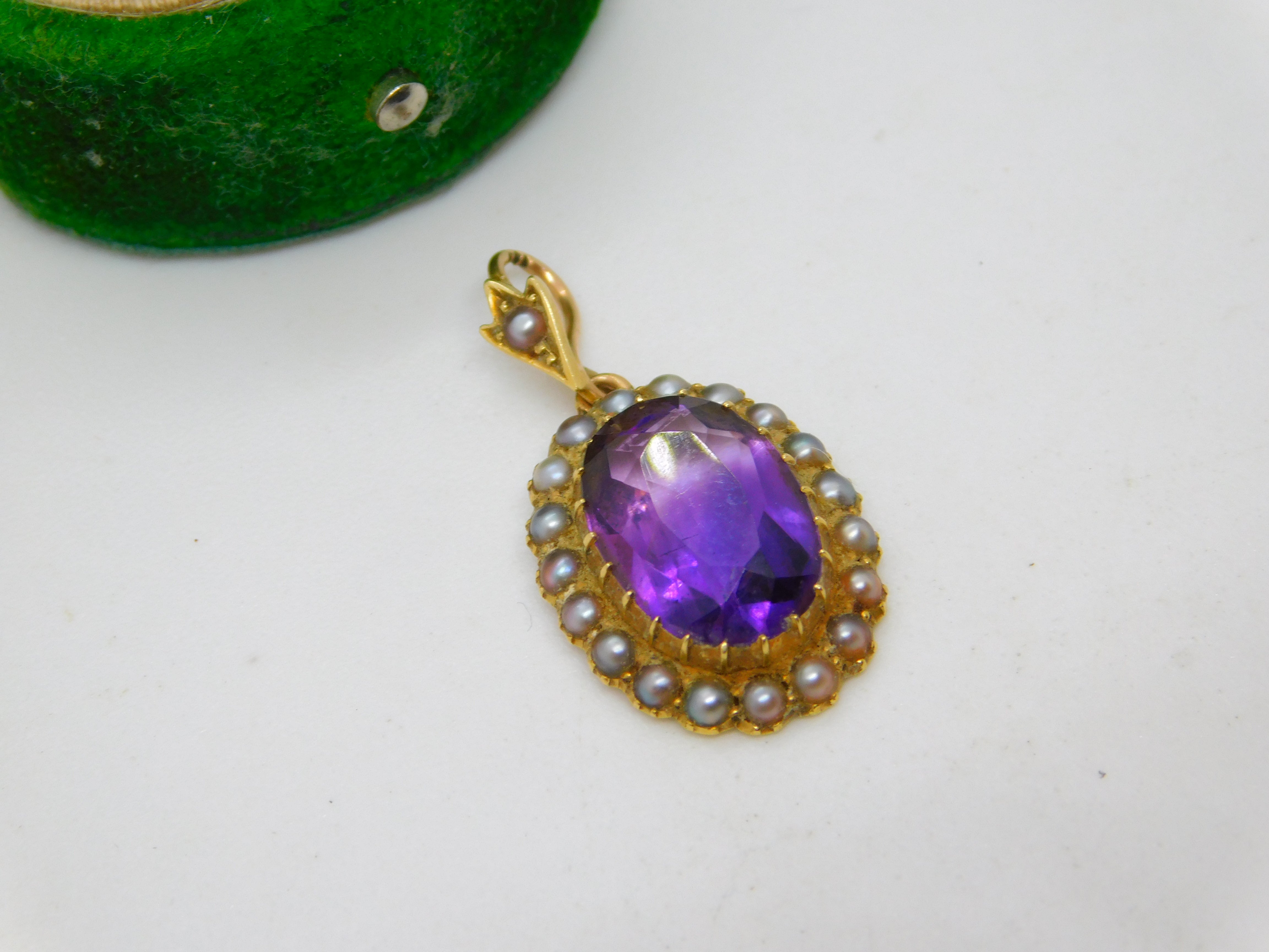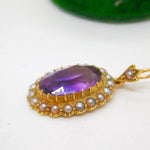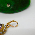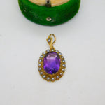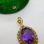 Victorian 18ct Gold, Amethyst & Seed Pearl Set Drop Pendant Antique c1880
