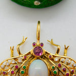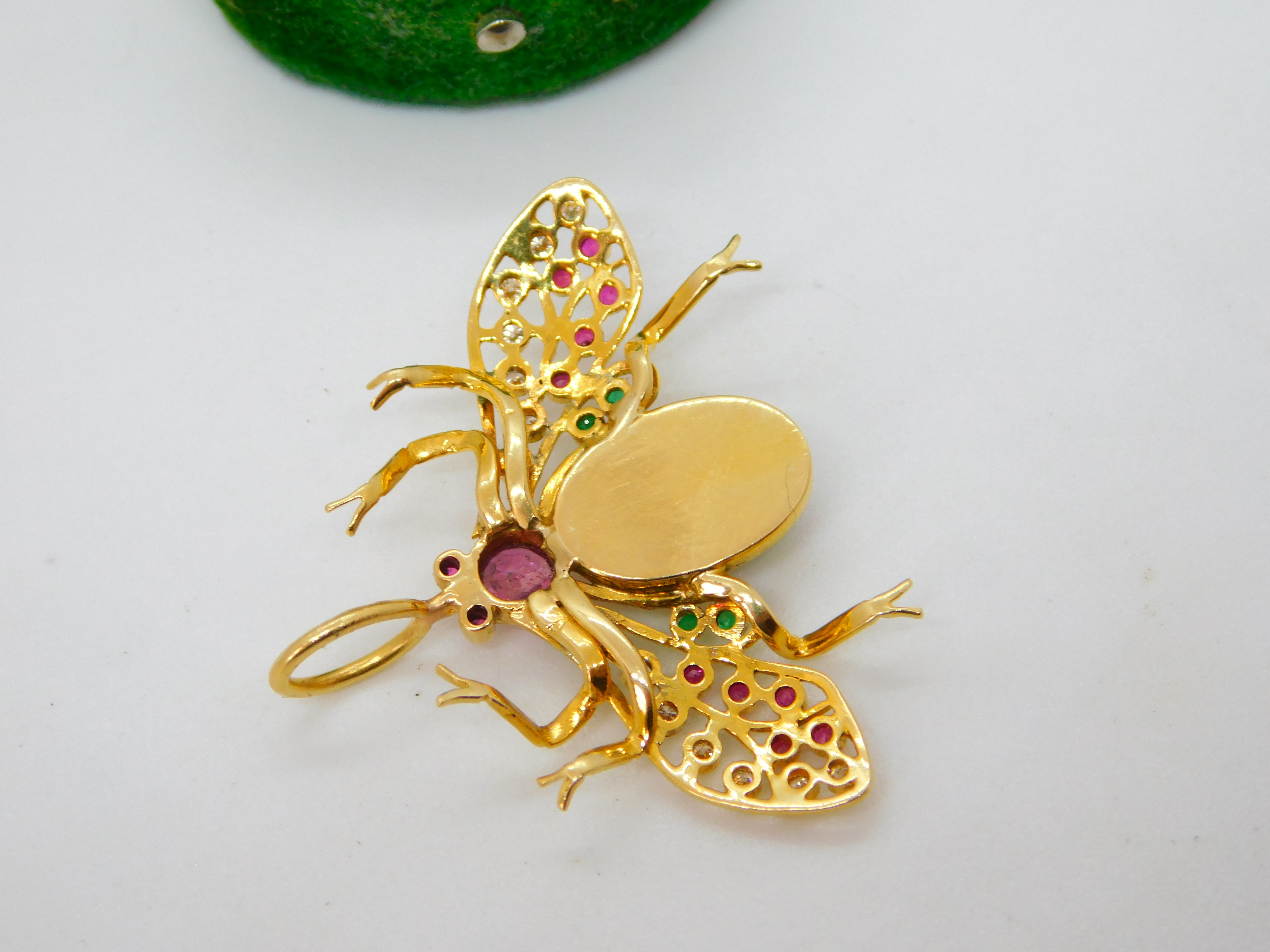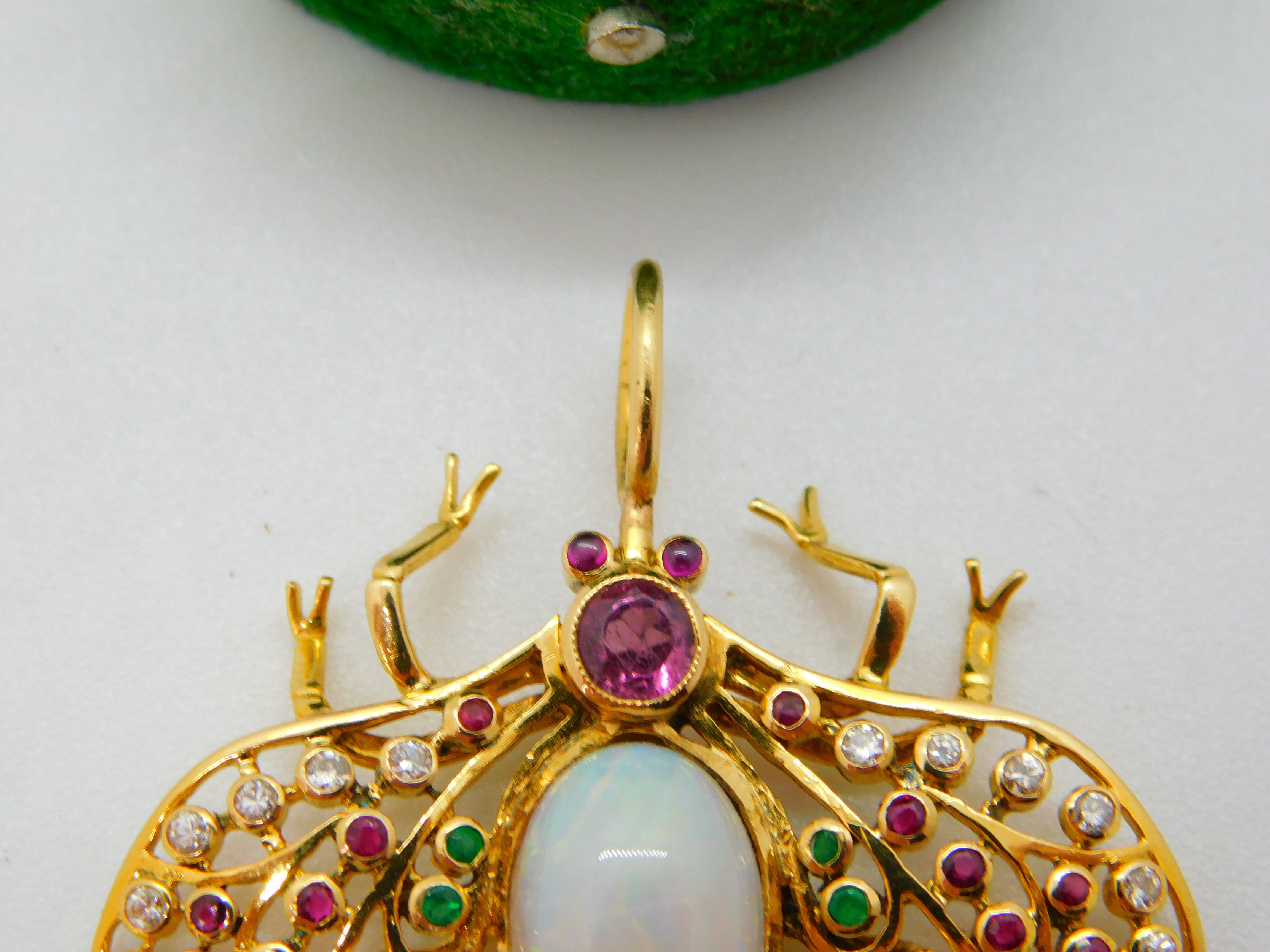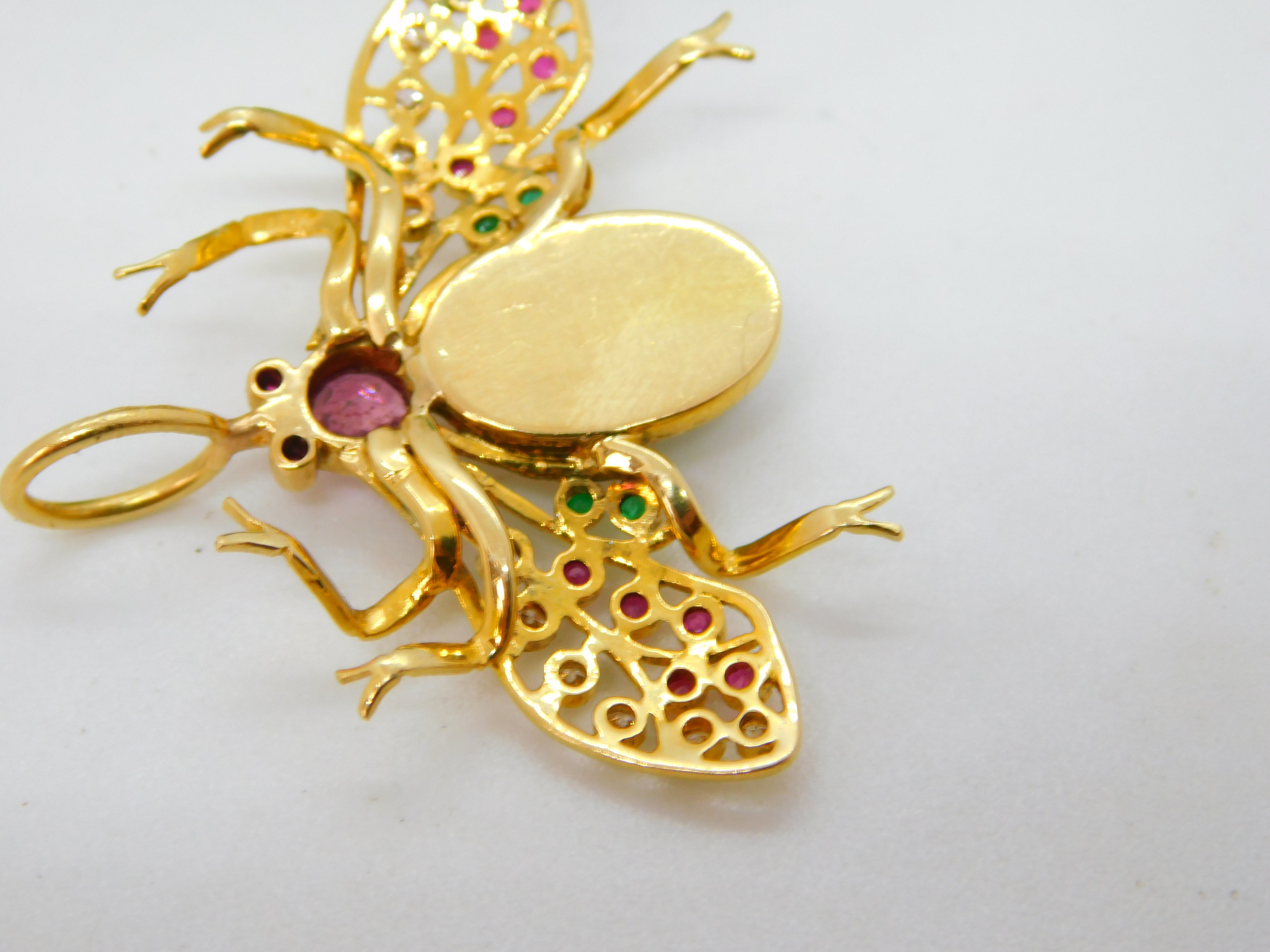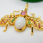 Details: A fantastic and wonderfully designed antique Victorian 18ct yellow gold honey bee or insect sweetheart drop pendant set with diamonds, rubies, emeralds, topaz & large cabochon opal to the centrepiece. The gold has been XRF tested as it is unmarked and all the surrounding stones have been tested. A stunning example of Victorian jewellery. This is a wonderful item that would make a perfect gift or addition to any collection. The BOX pictured is for PRESENTATION ONLY and is NOT included in the listings but used to frame the pictures unless specifically stated otherwise.