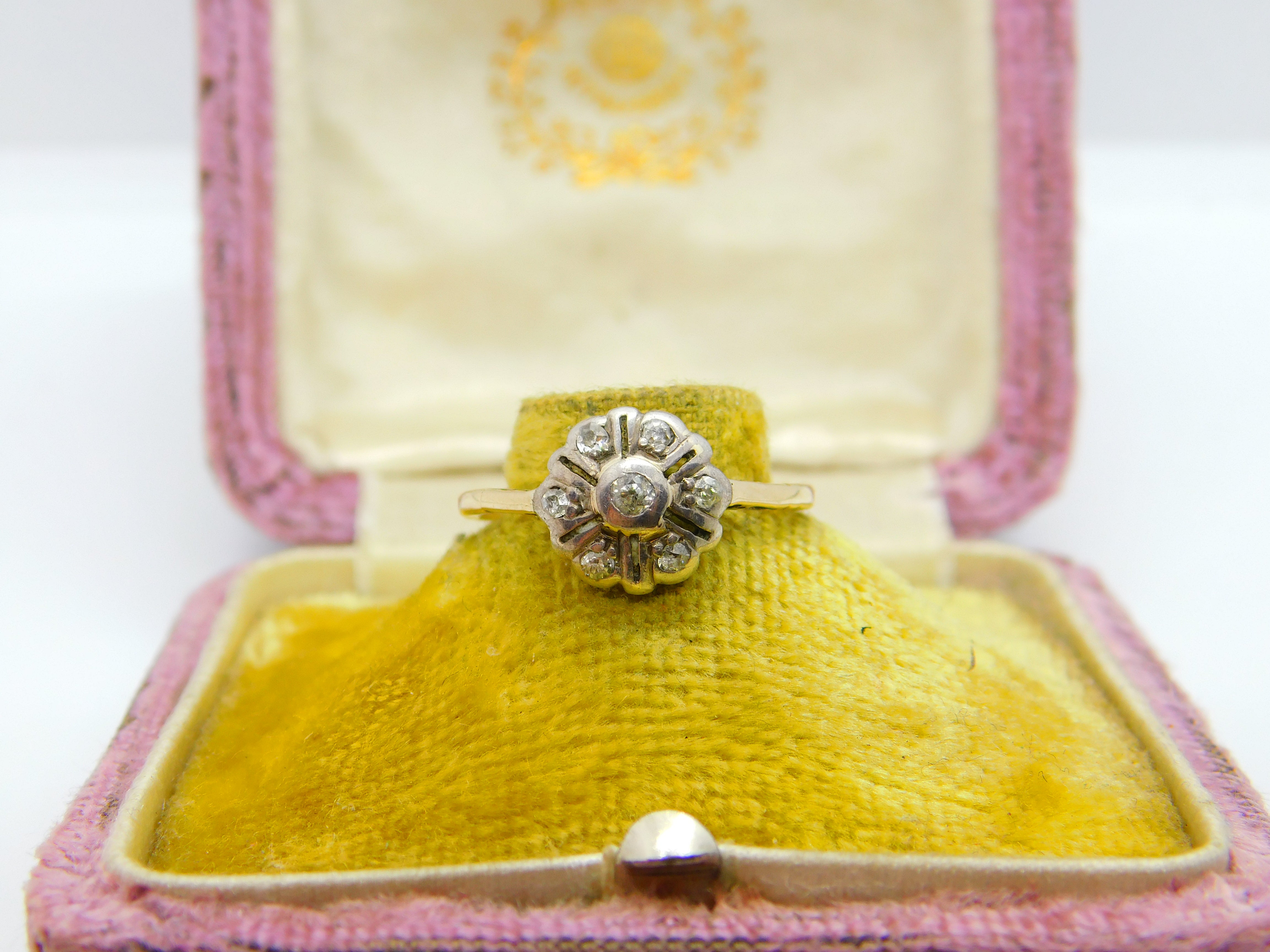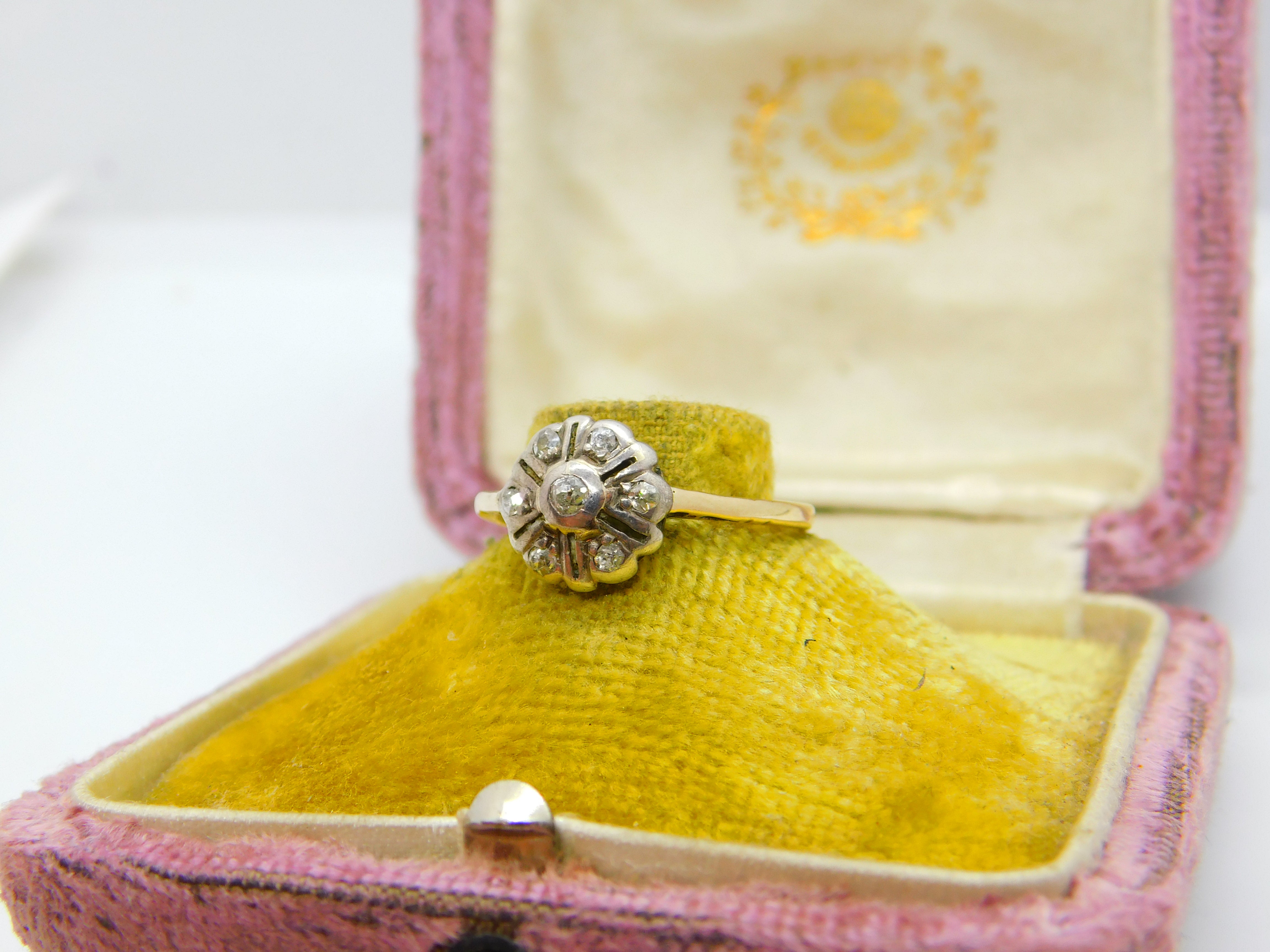 Details: A fantastic and wonderfully designed antique Victorian 18ct yellow gold diamond set floral daisy cluster ring c1890, the gold has been XRF tested and the stone have been tested. This is a wonderful item that would make a perfect gift or addition to any collection. The BOX pictured is for PRESENTATION ONLY and is NOT included in the listings but used to frame the pictures unless specifically stated otherwise.