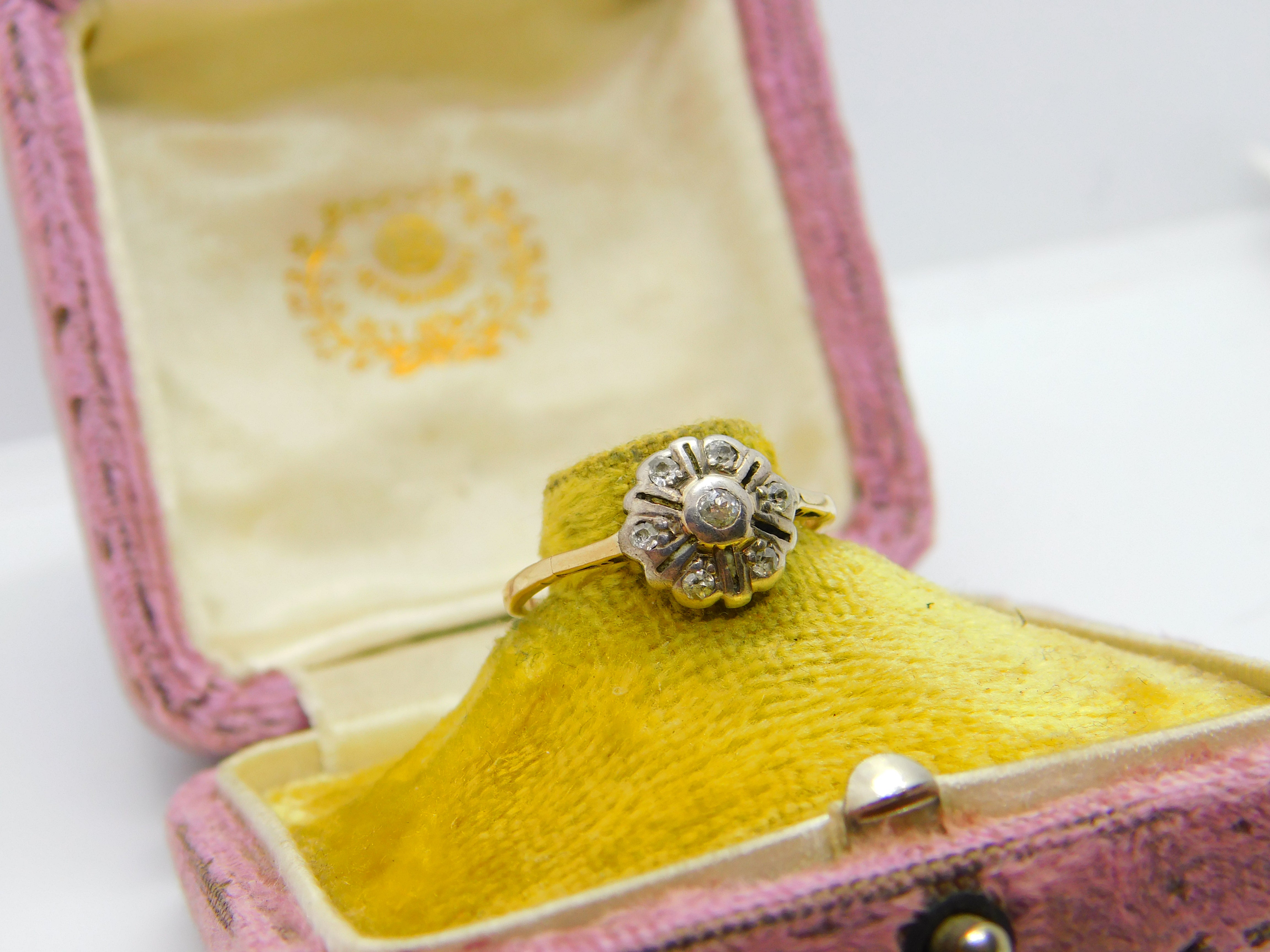 Victorian 18ct Gold & Diamond Set Floral Daisy Cluster Ring Antique c1890