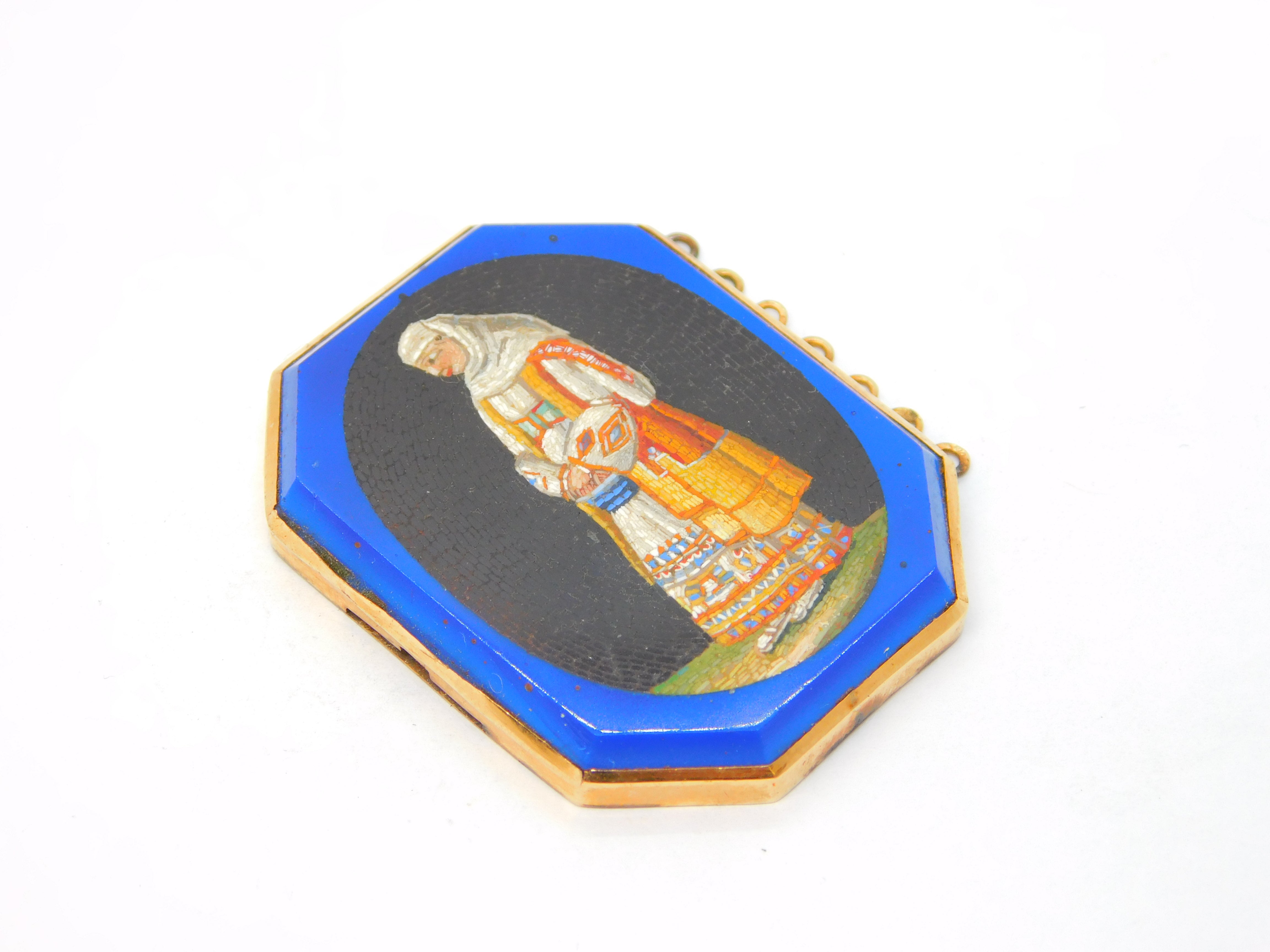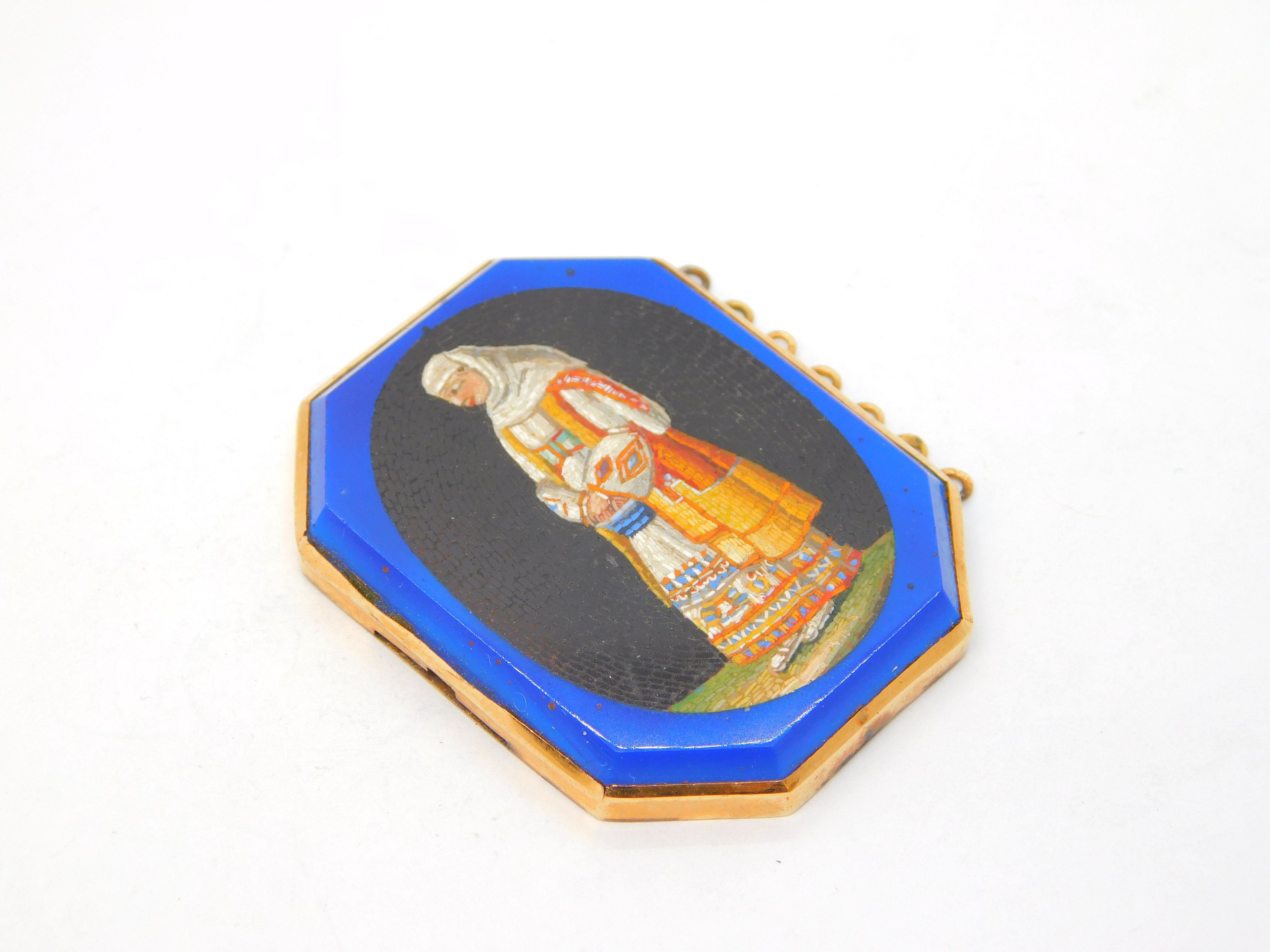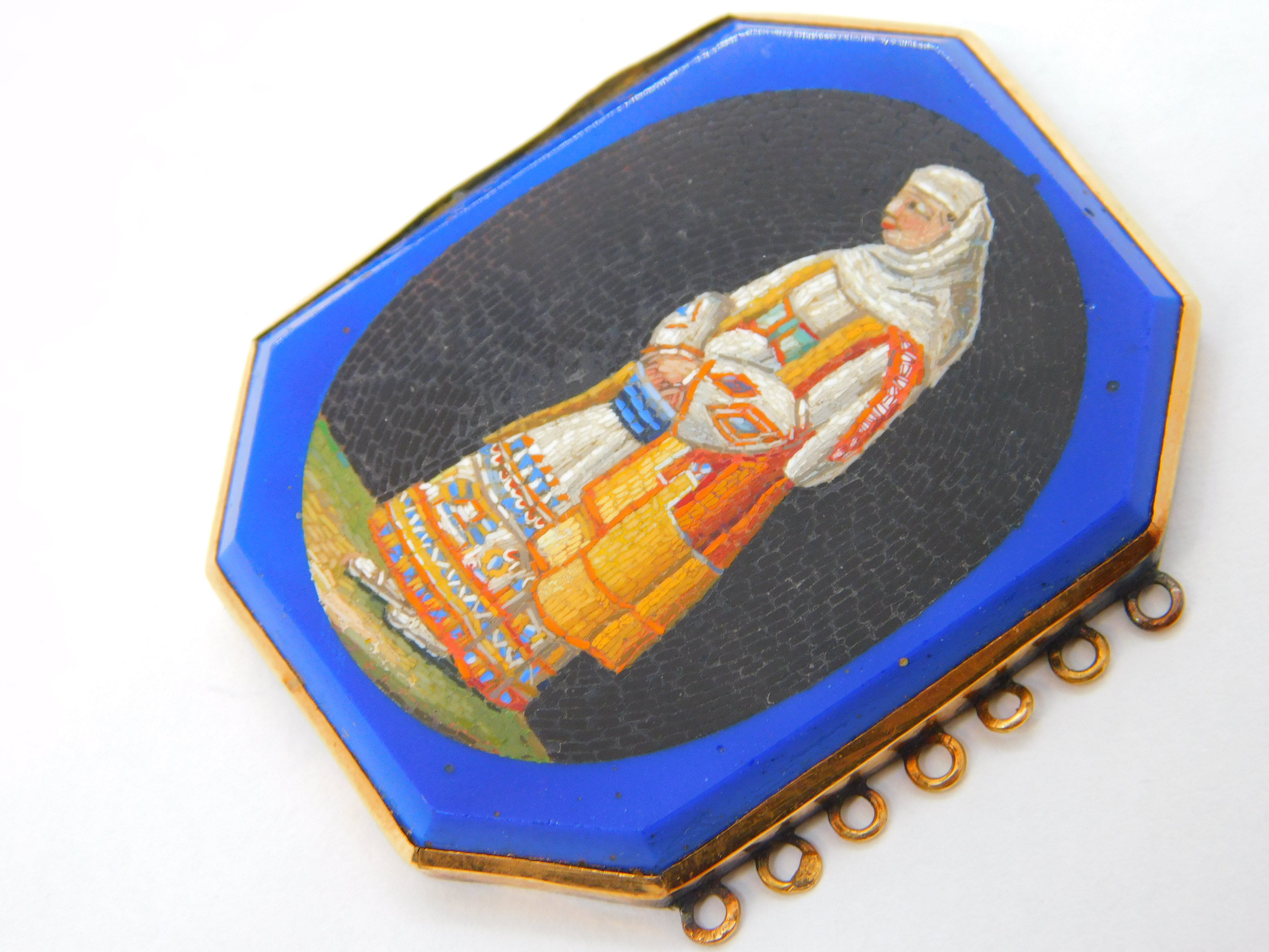 Victorian 18ct Gold Large Micro Mosaic Italian Lady Jewellery Clasp Antique c1840