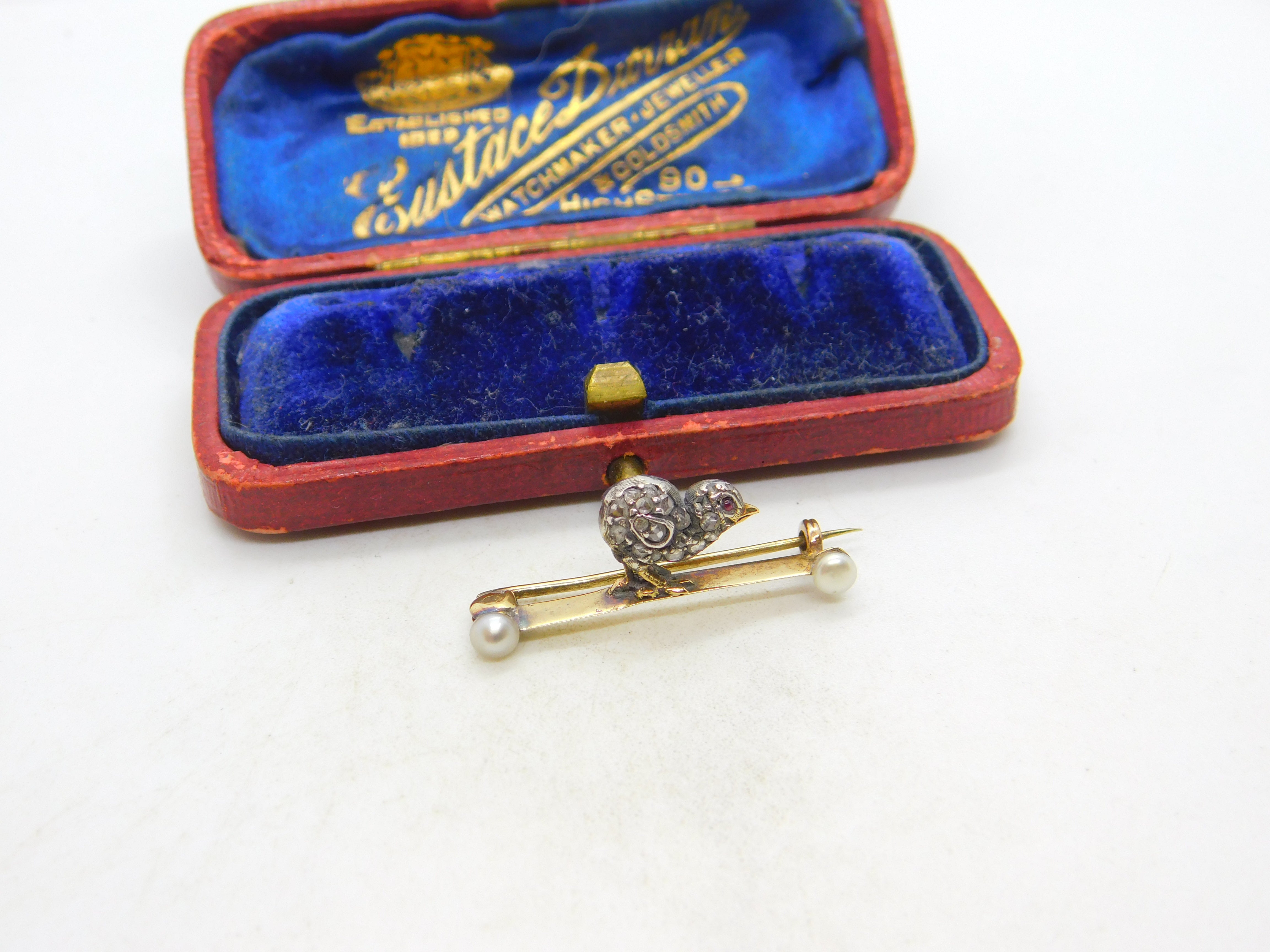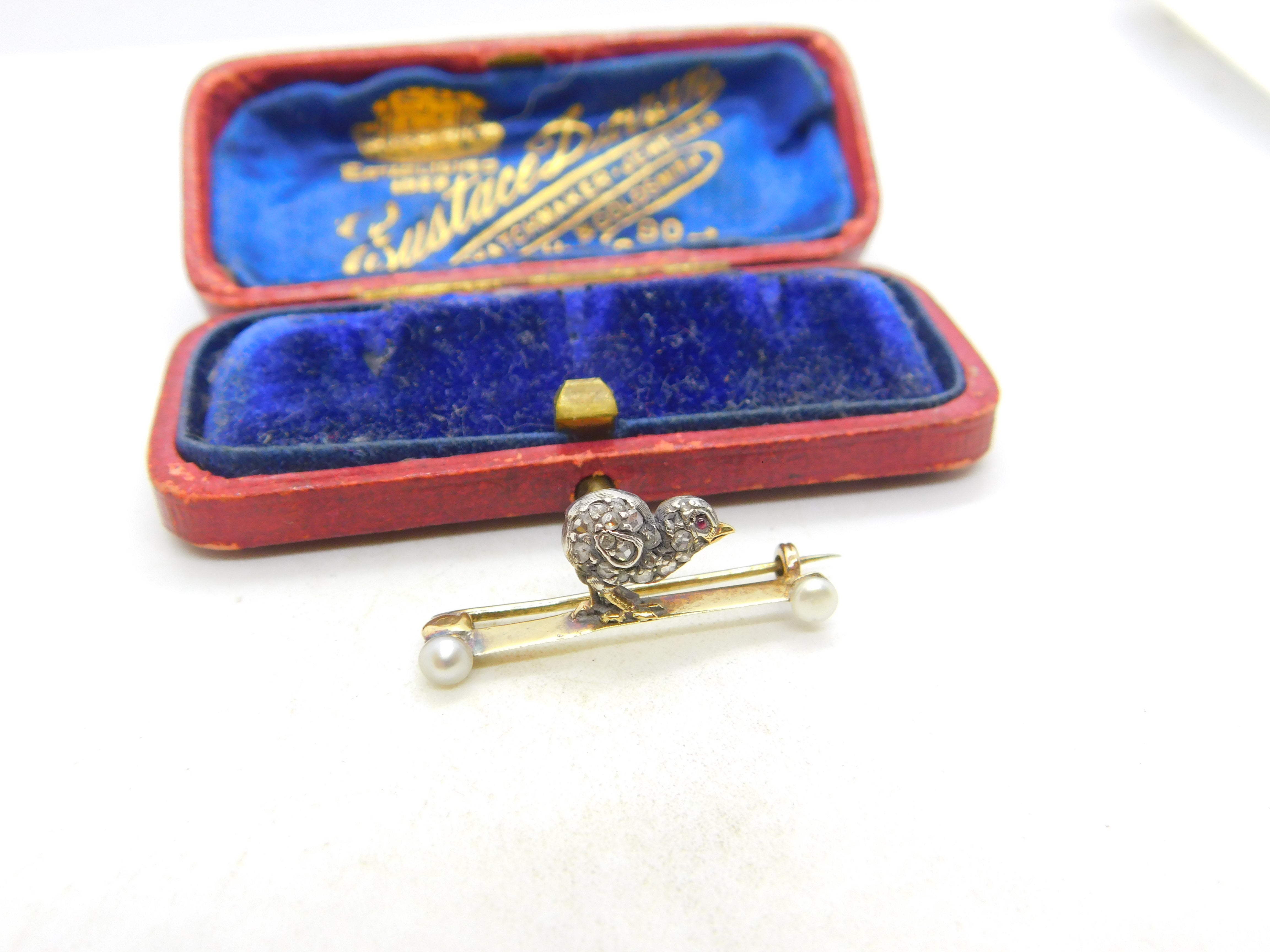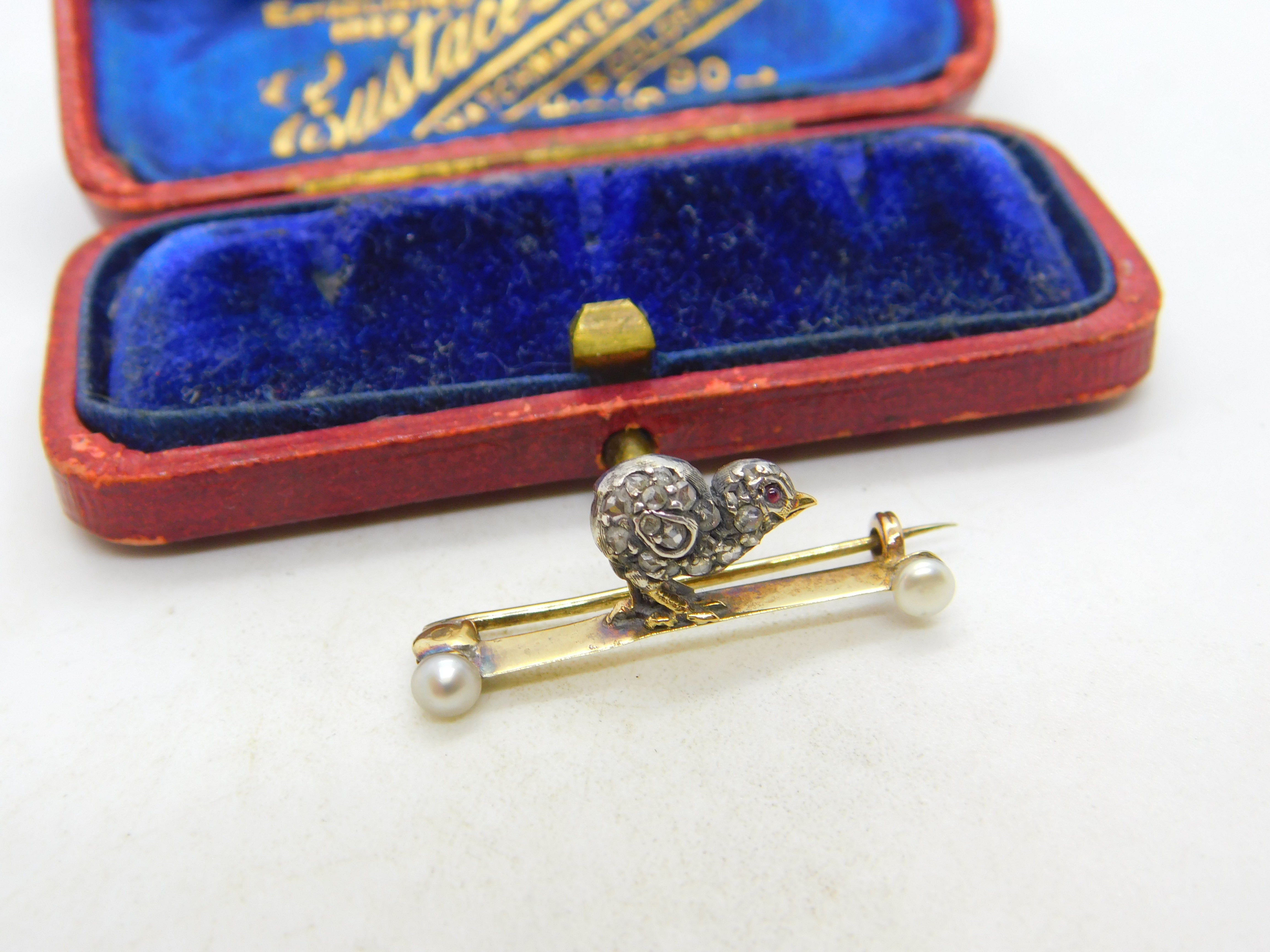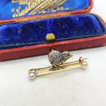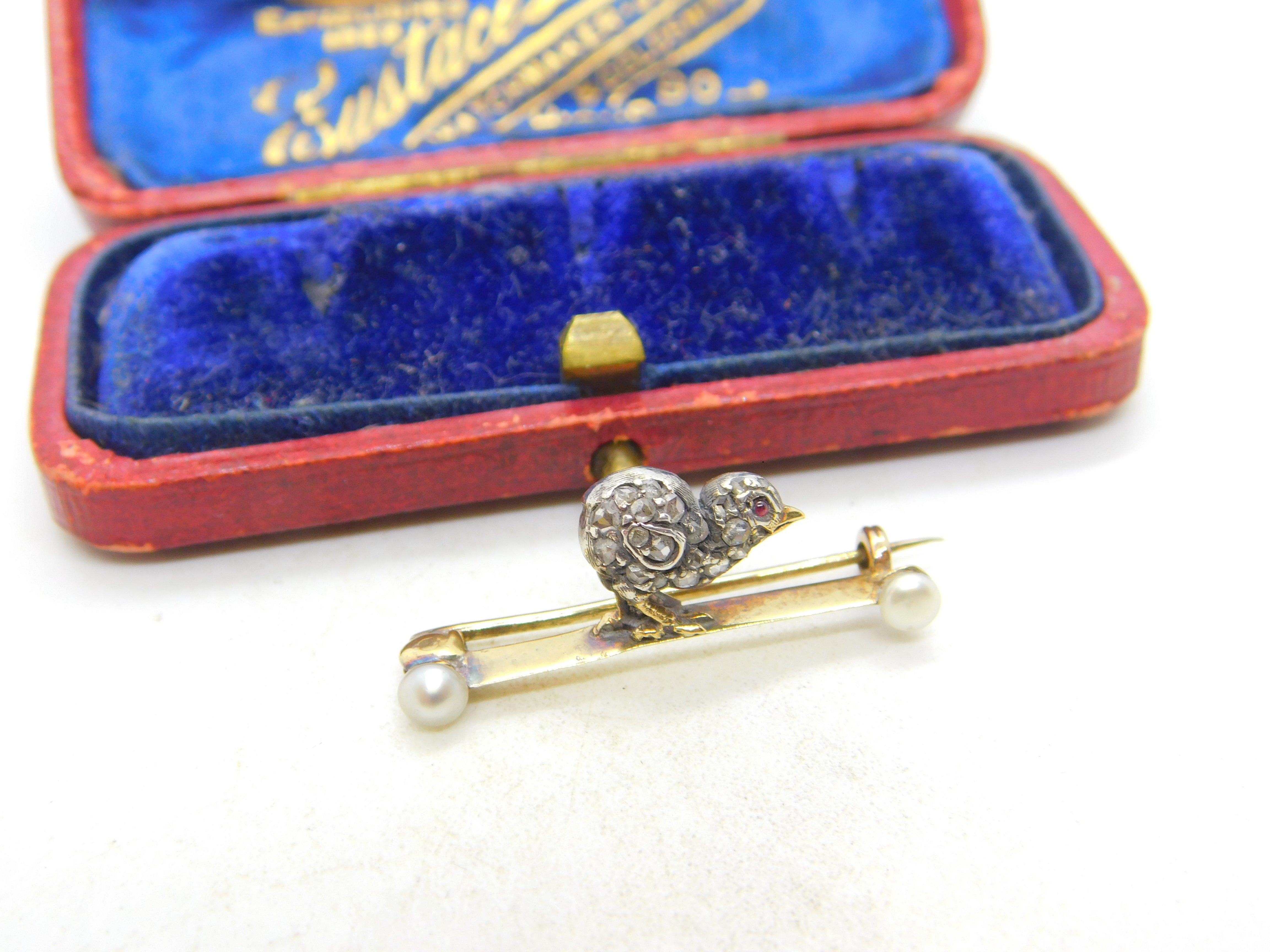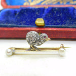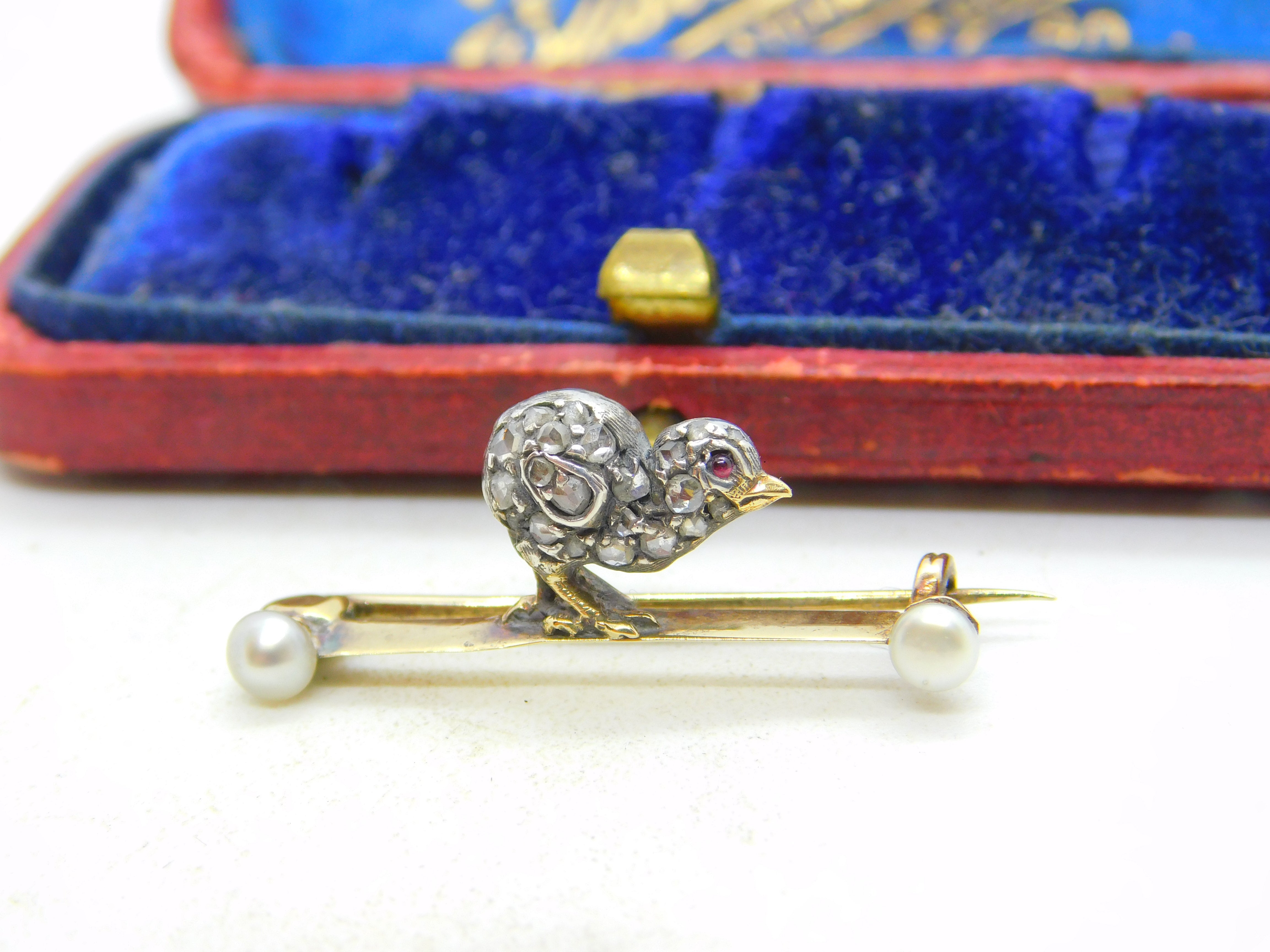 Victorian 18ct Gold, Pearl & Old-Mine Cut Diamond Baby Chick Brooch c1860 Antique