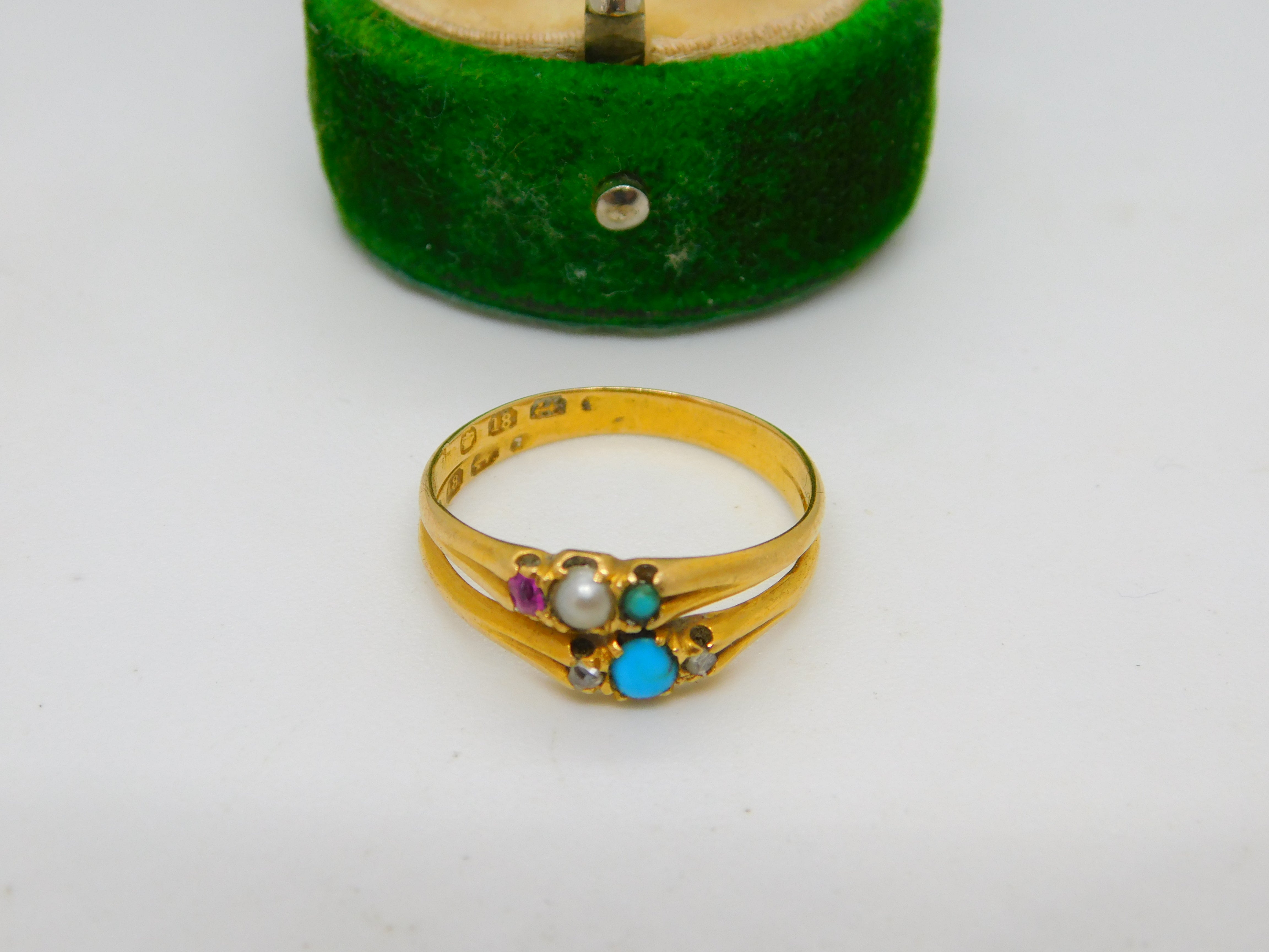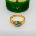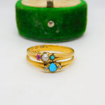 Victorian 18ct Gold, Pearl, Ruby, Diamond & Turquoise Double Band Ring Antique c1860